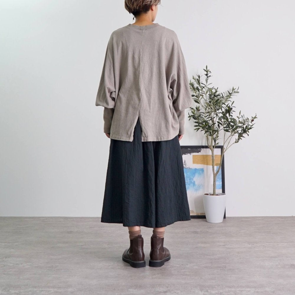 "交織編織面料 "增添了別樣風情。複雜的結構需要高超的製作技藝,雖然設計簡單,但獨特的花紋卻增加了對細節的關注感。它易於與任何服飾搭配,給人一種精緻的印象。◎還有一個吸引人的地方是,每當您移動時,下襬都會輕盈地擺動,營造出女性的優雅氣質!