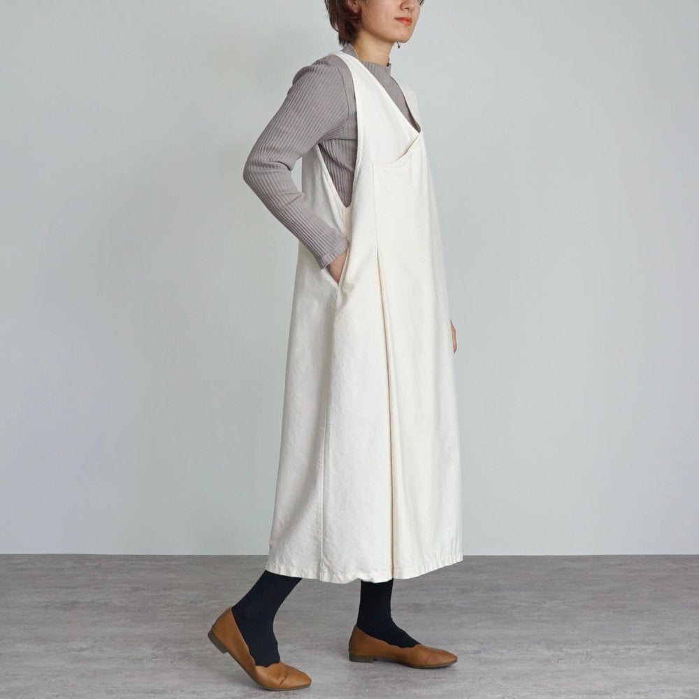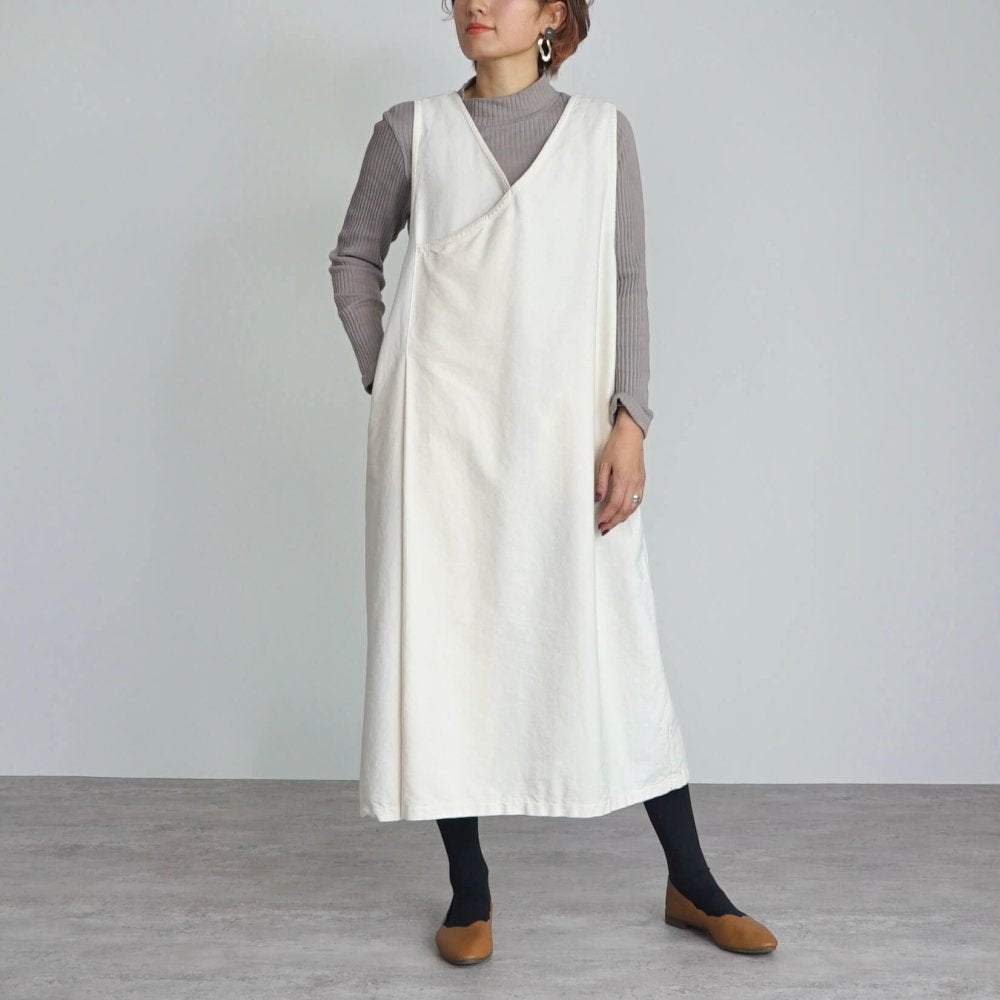 使用三河紡織品的 100%棉平紋織法,耐穿、輕便、易於活動。這是一款跳線裙。長度較長,顯得成熟穩重!