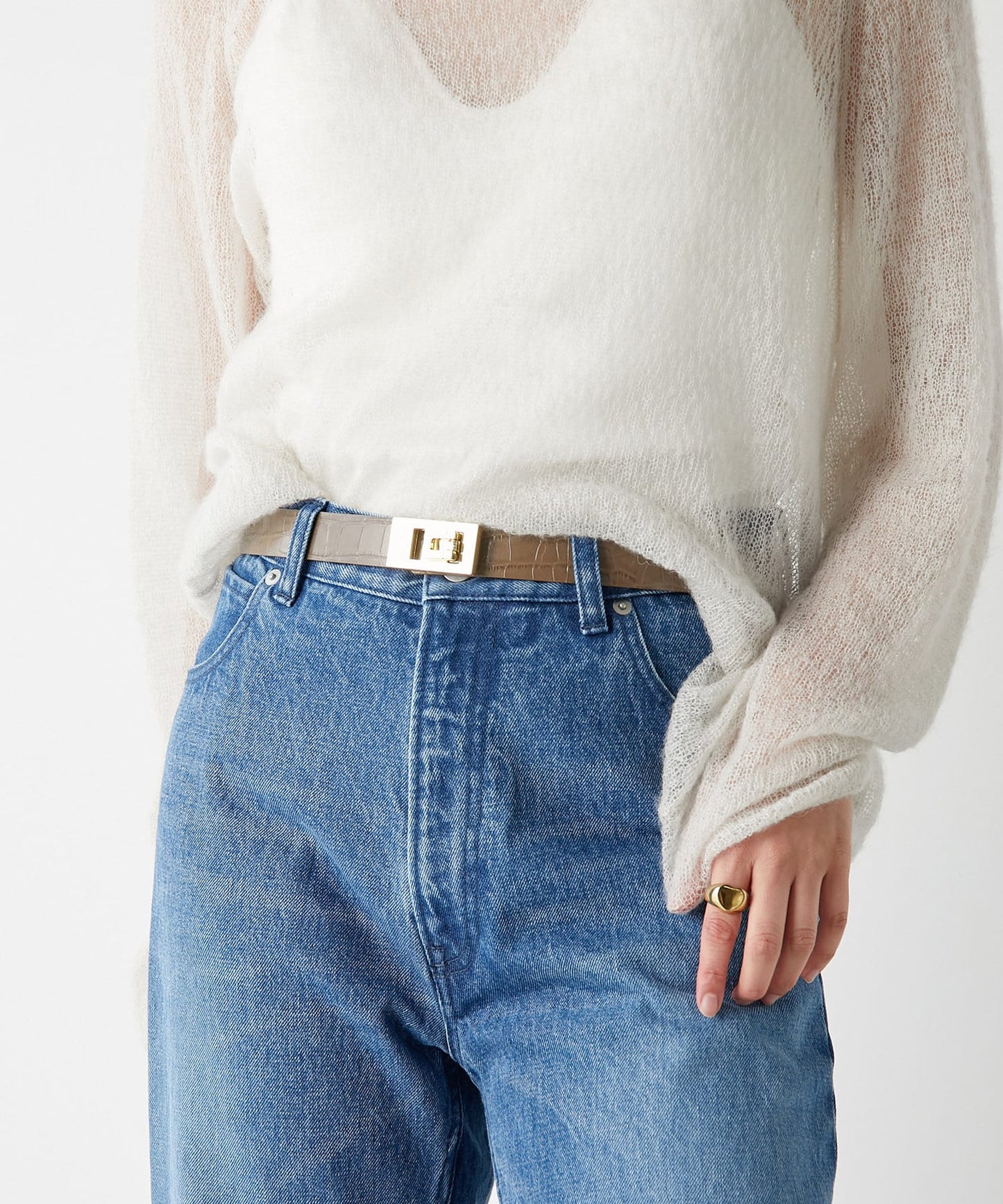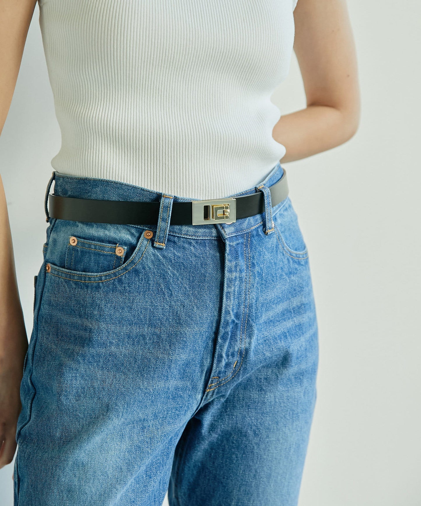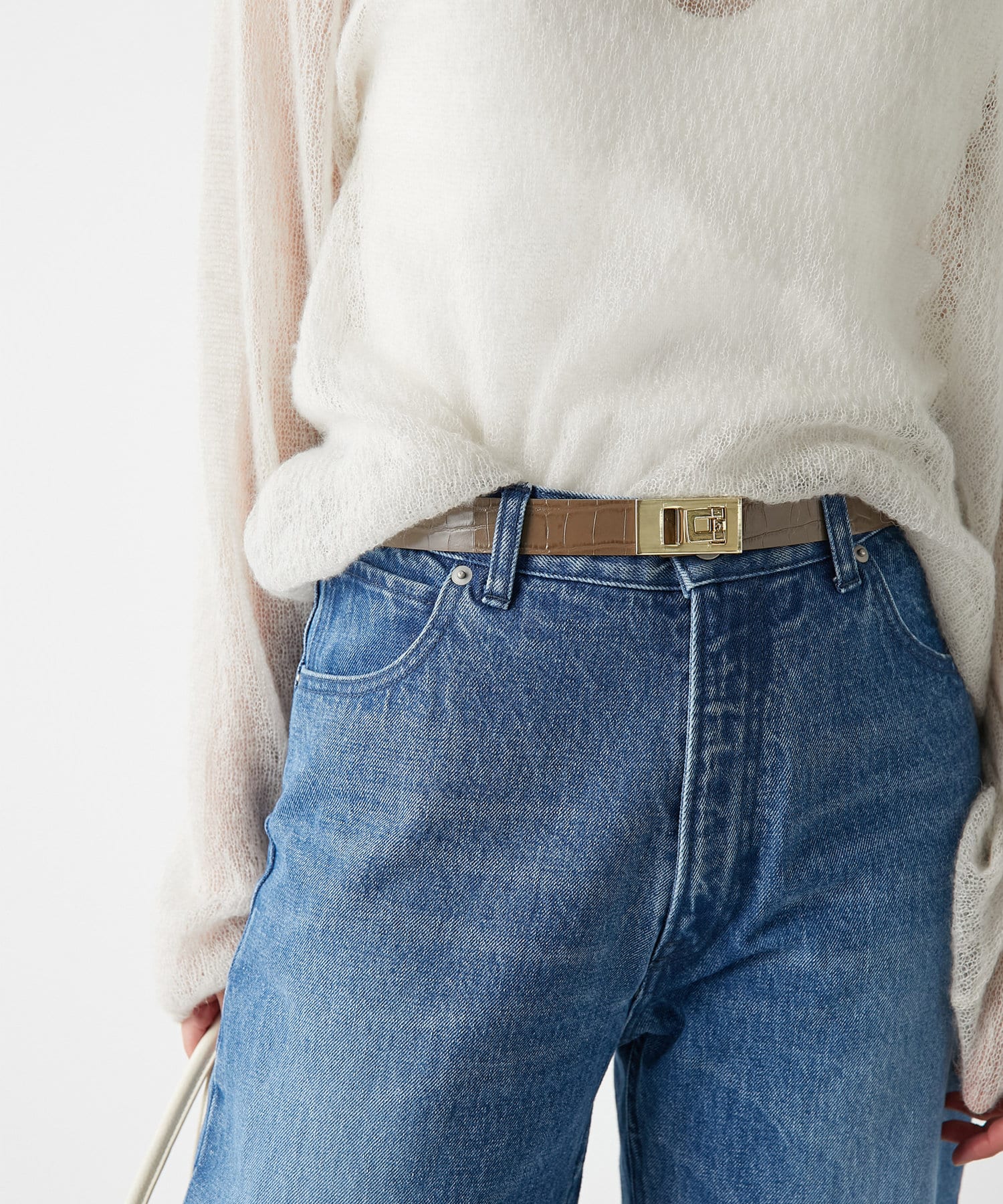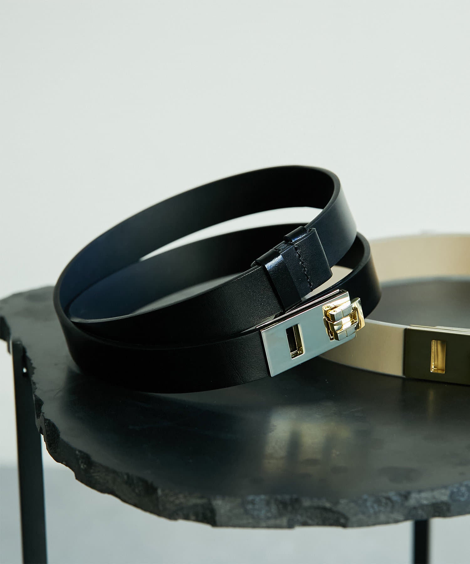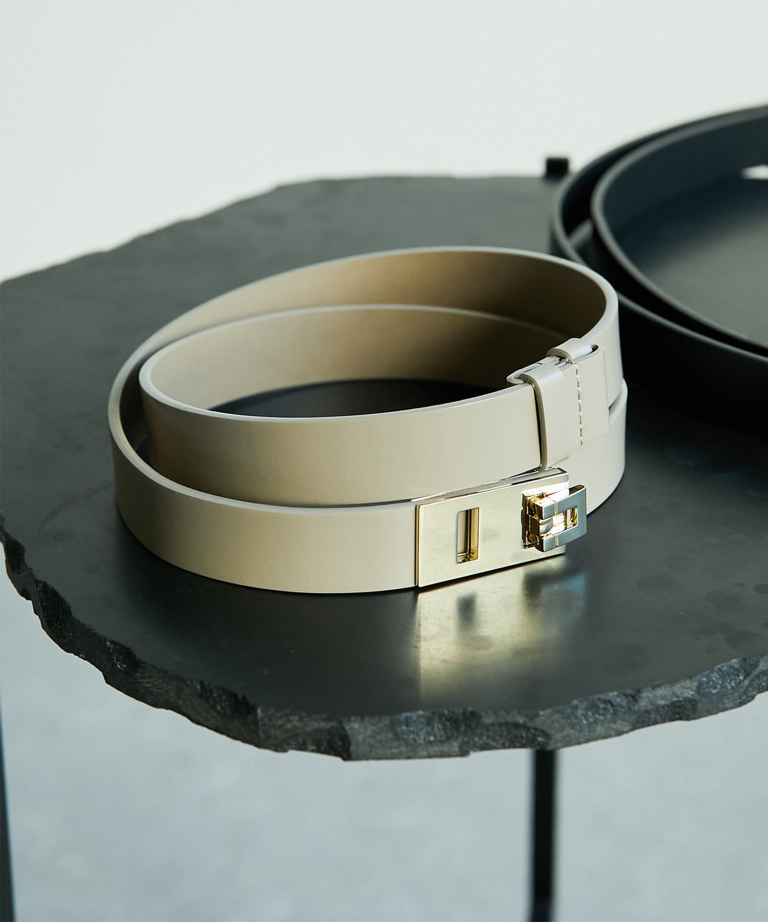 ●簡單的腰帶,可以像配飾一樣佩戴。 ●腰帶上有金屬釦子裝飾。