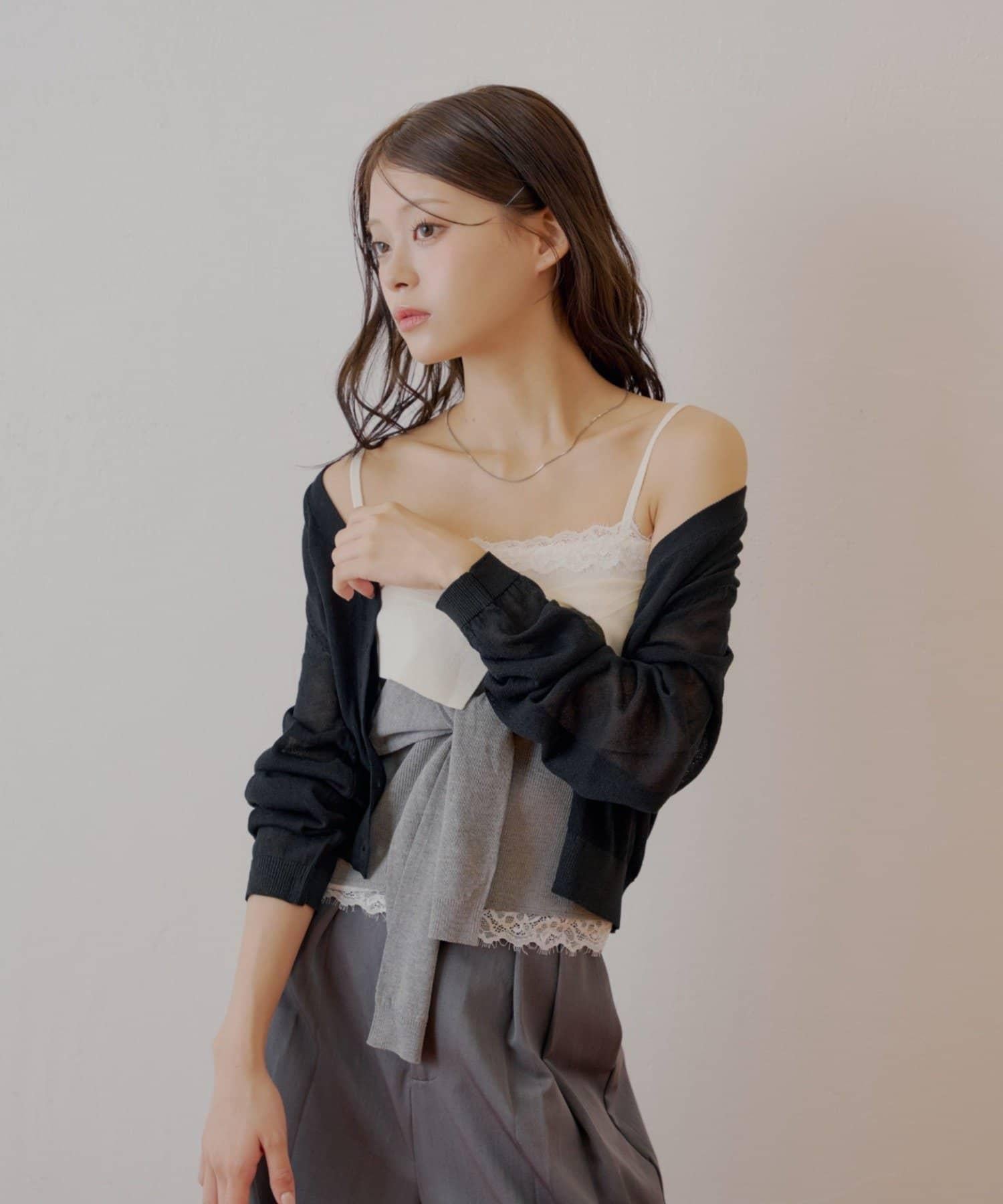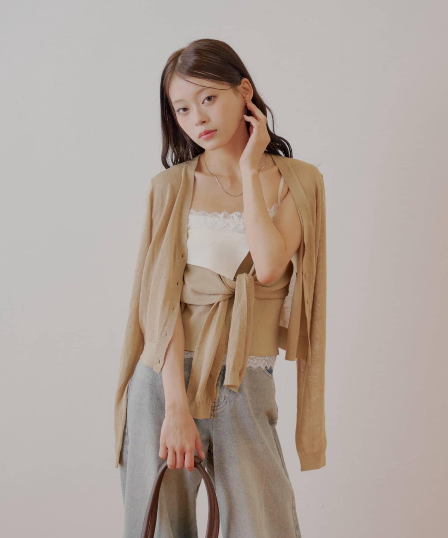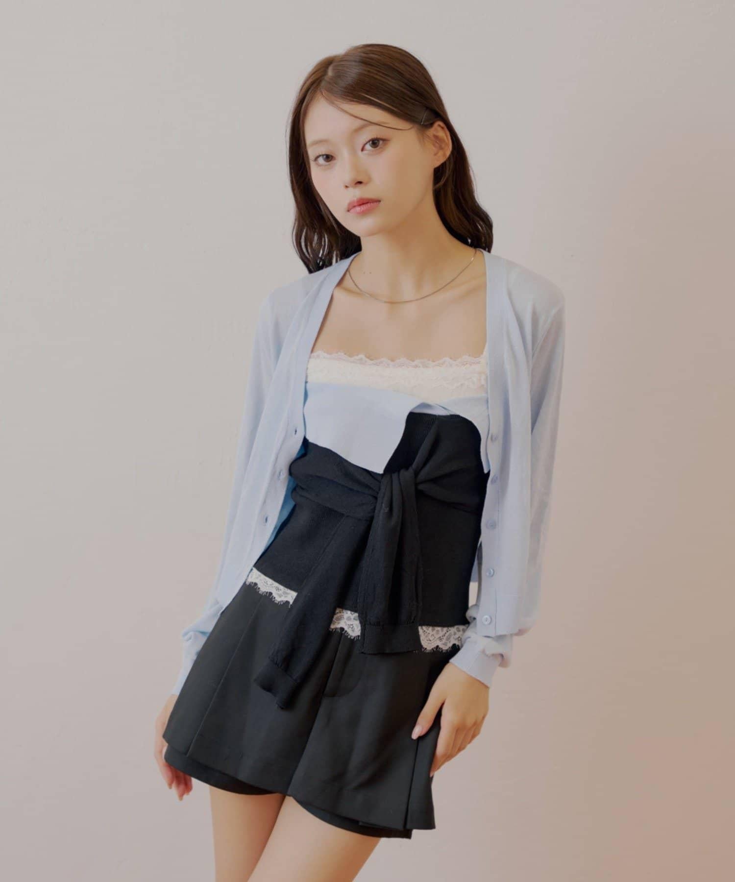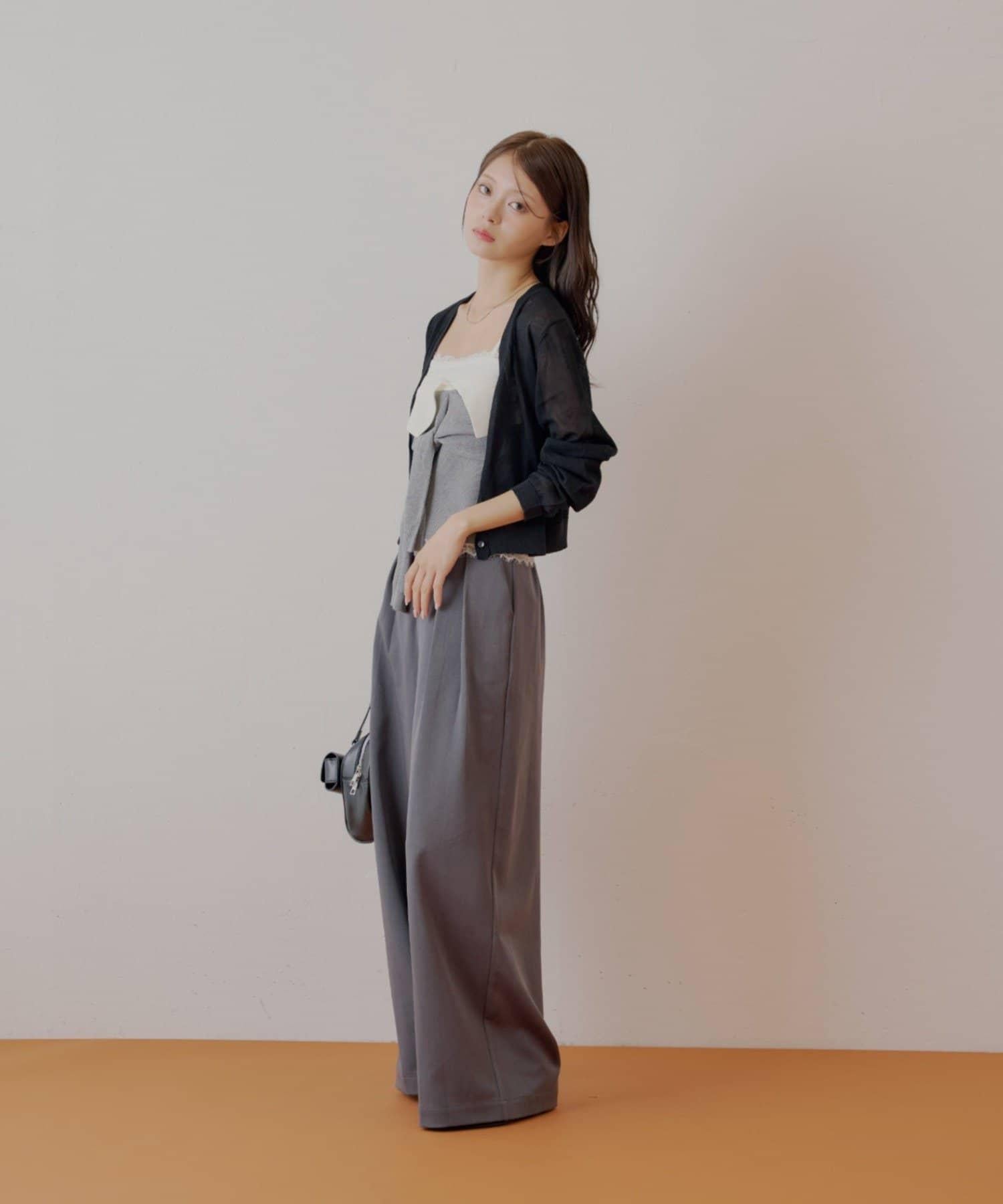 【秋季準備第一彈】透視開衫+扭結襯衫拼接吊帶套裝