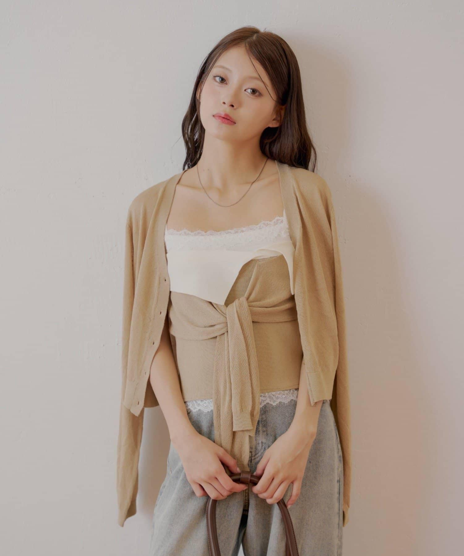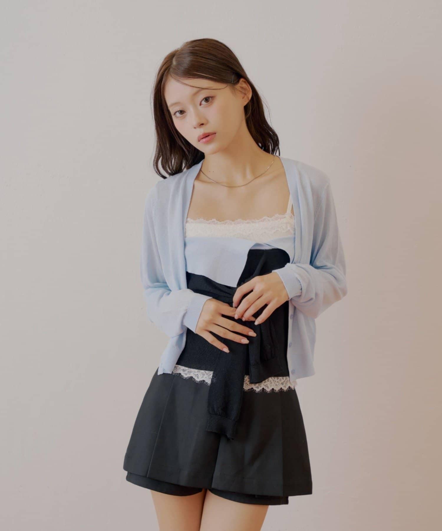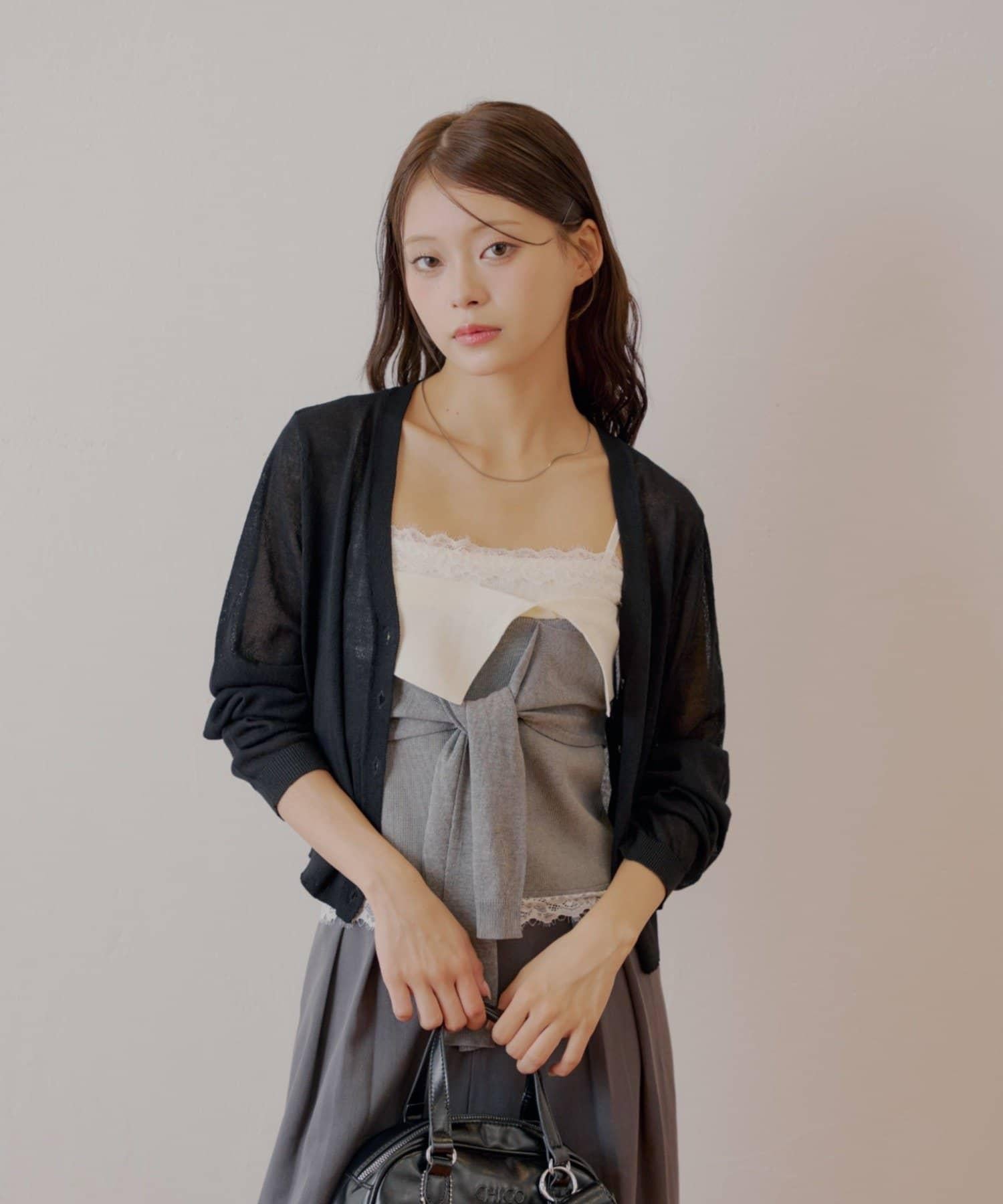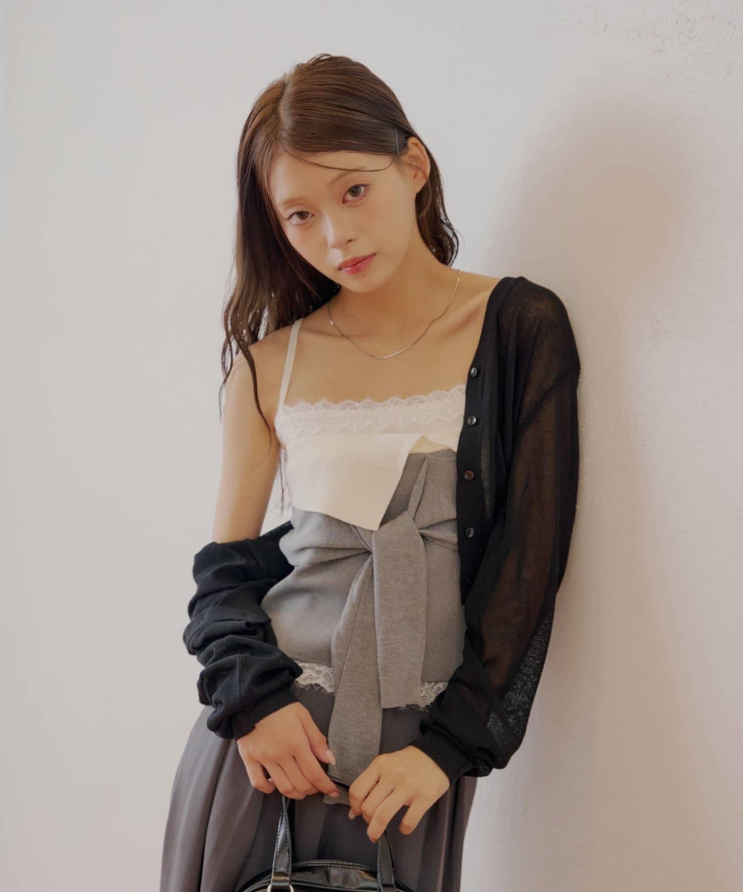 【秋季準備第一彈】透視開衫+扭結襯衫拼接吊帶套裝