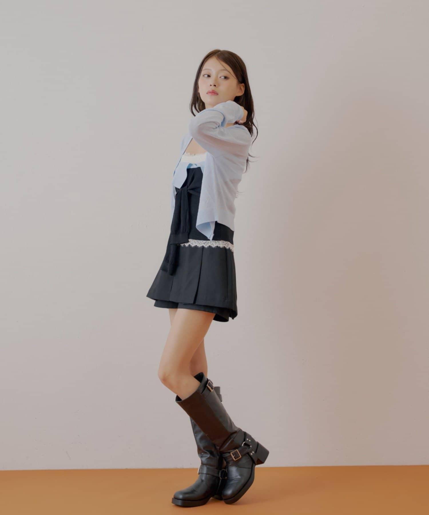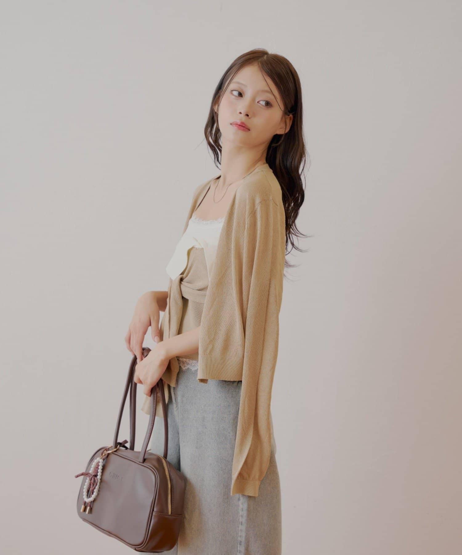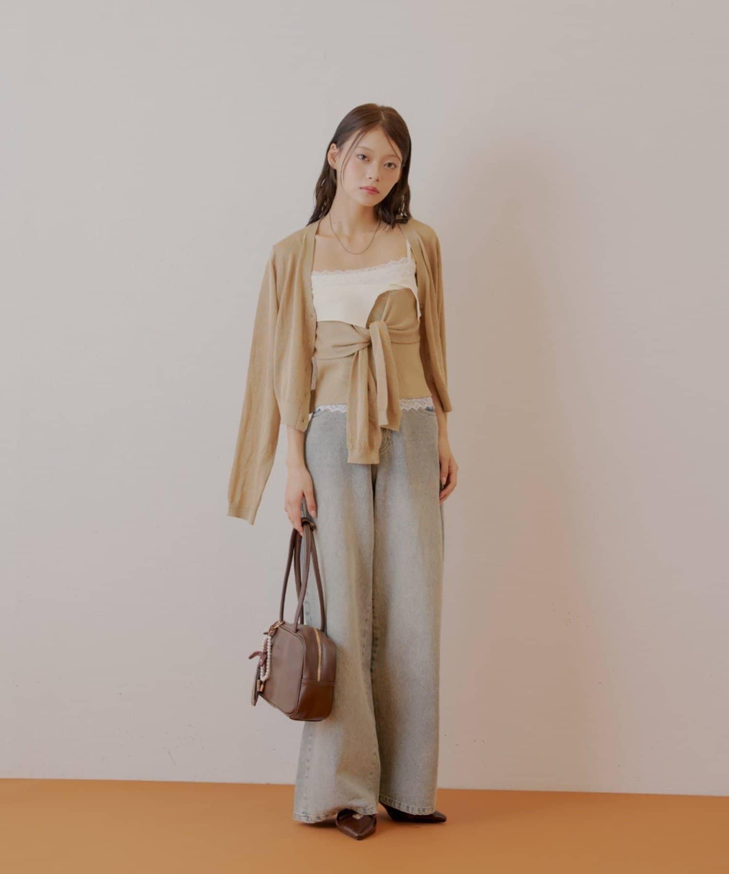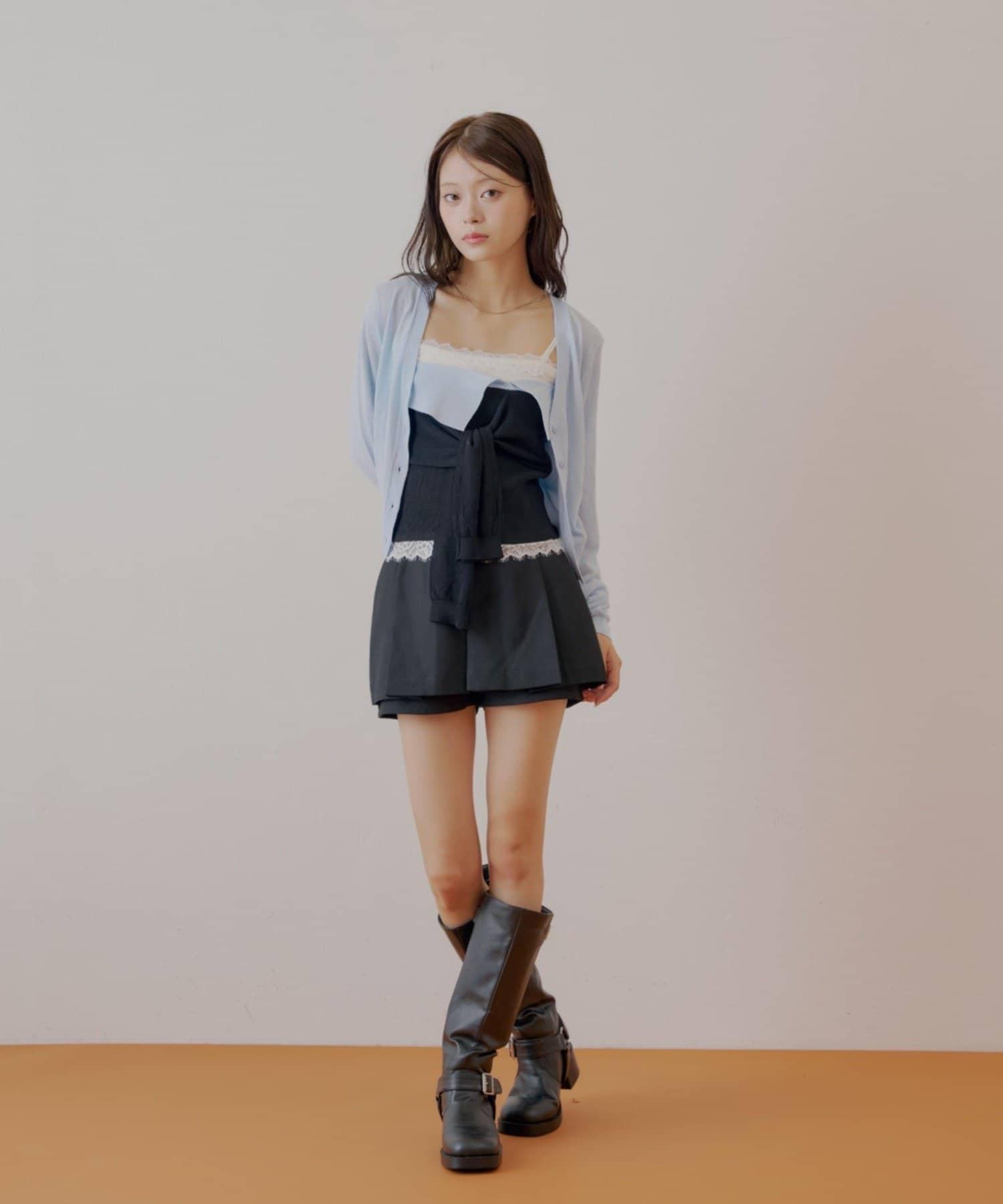 【秋季準備第一彈】透視開衫+扭結襯衫拼接吊帶套裝