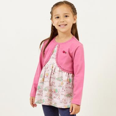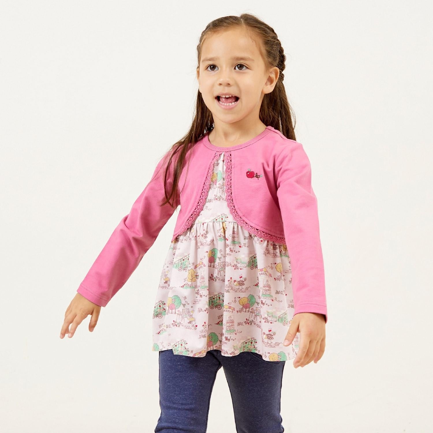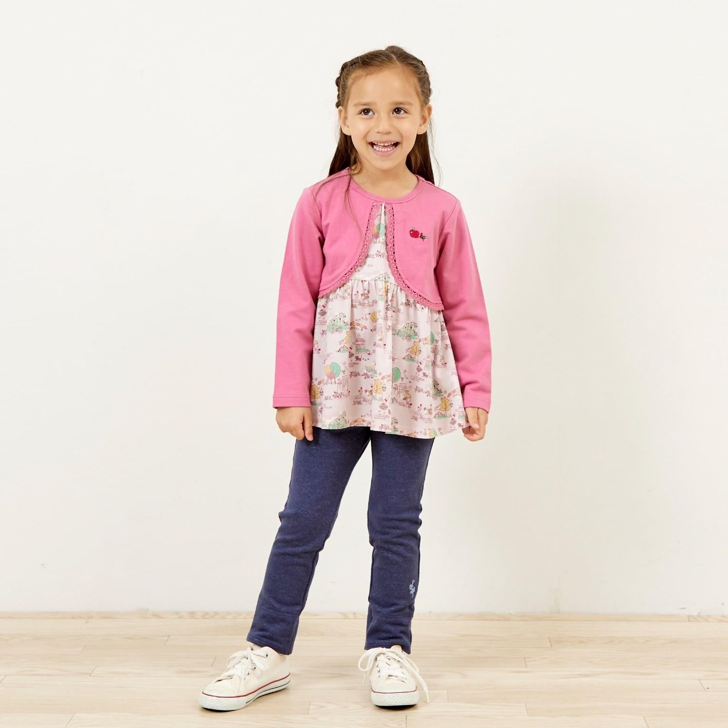由襯衫色外衣和迷你內襯開衫組成的分層設計。80 厘米和 90 厘米的左肩開口方便穿脫。