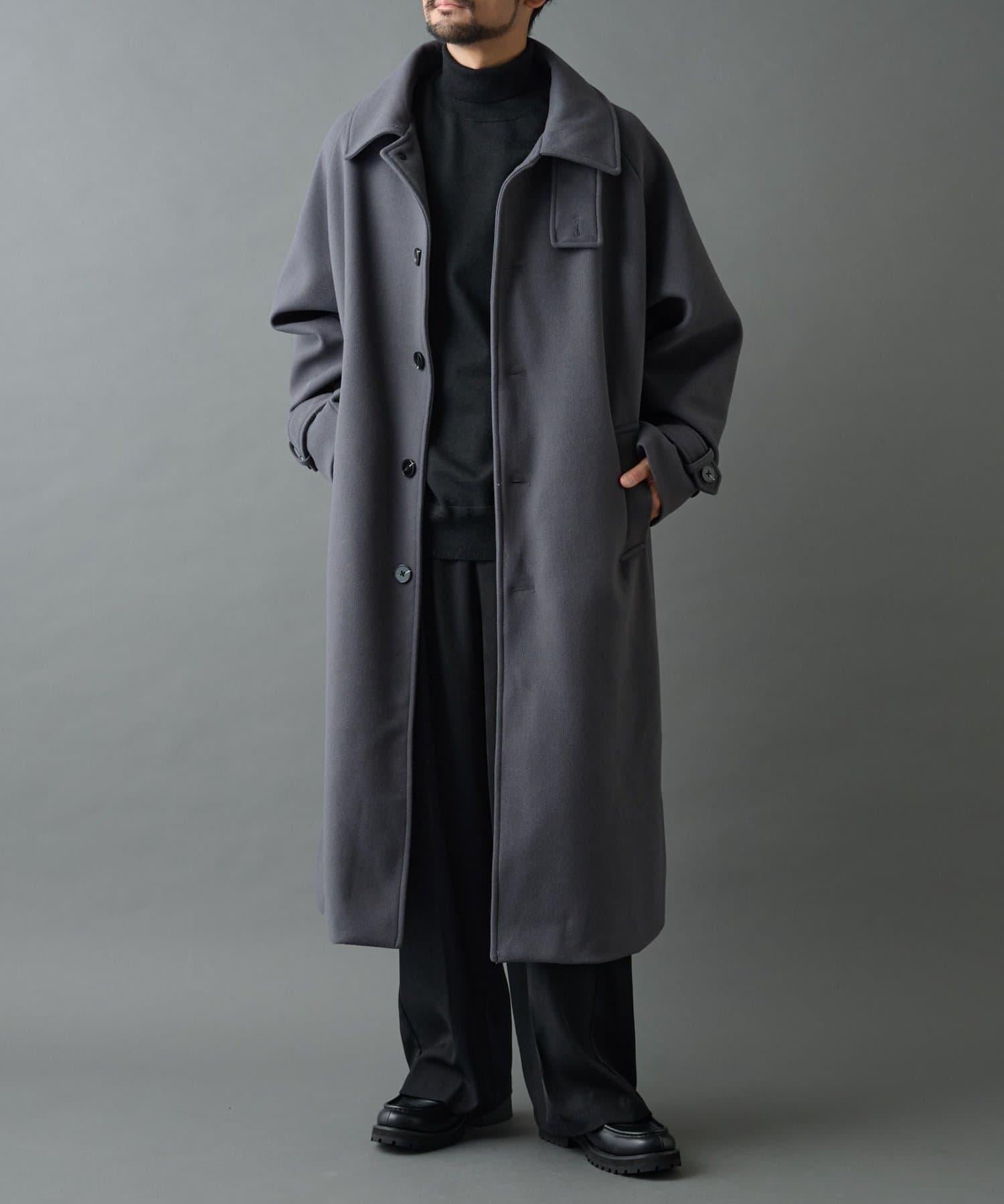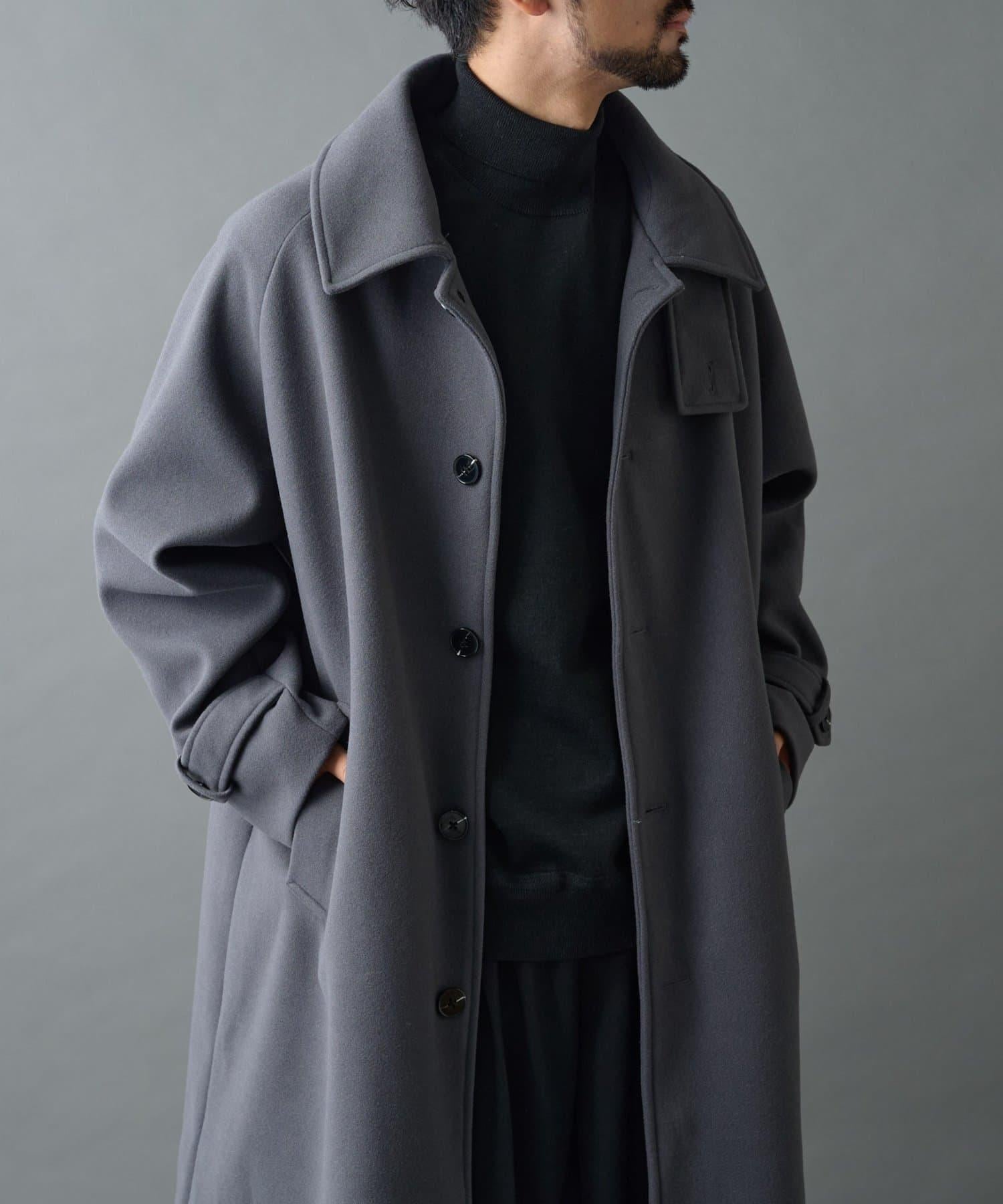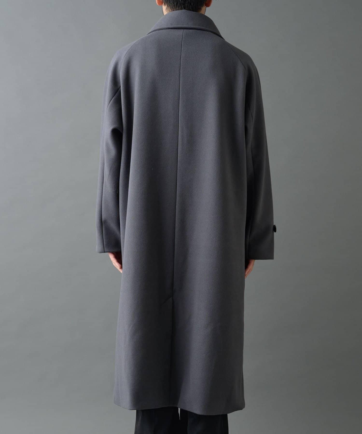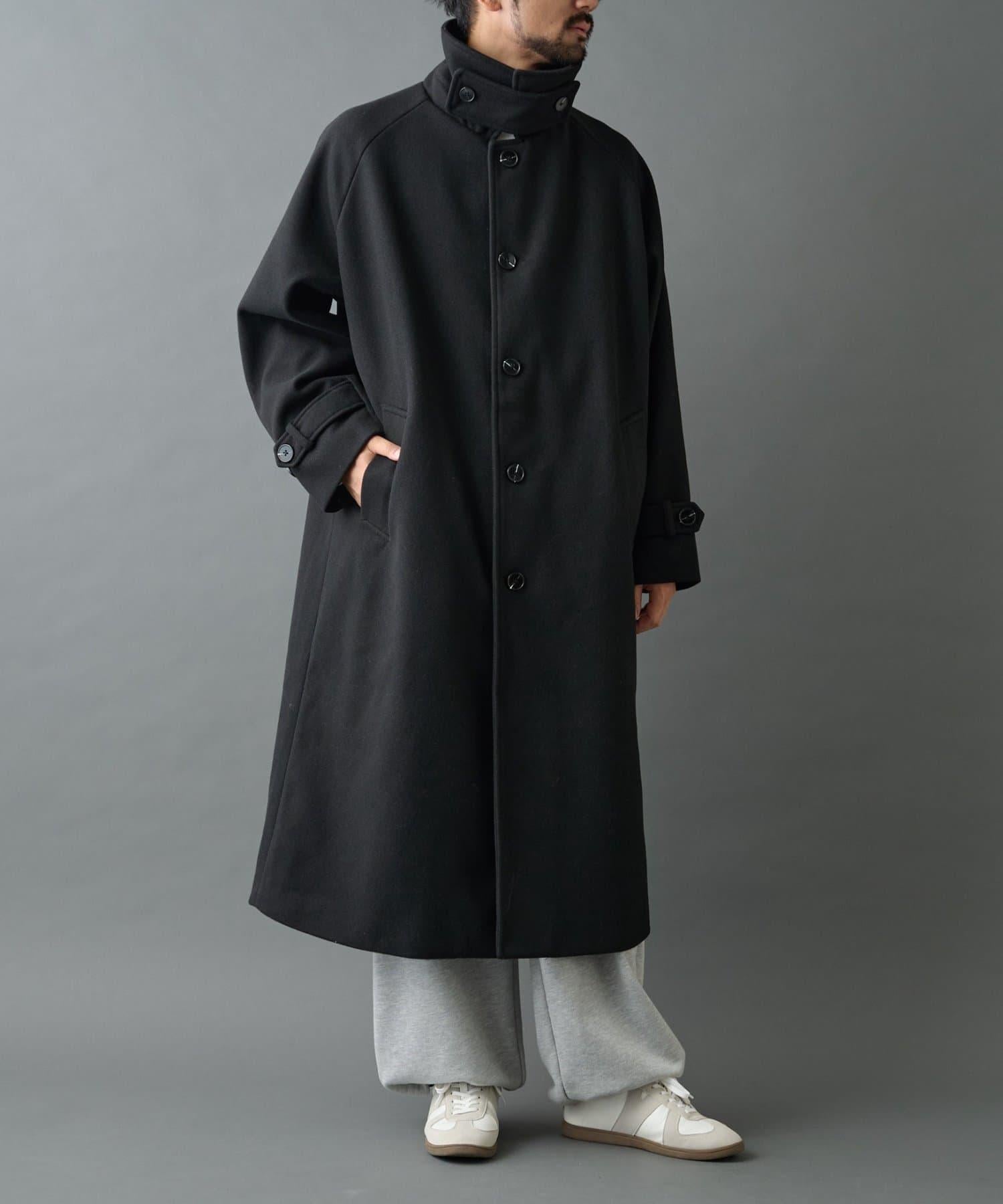 科技羊毛製成的不鏽鋼領長款外套,兼具古典外觀與現代功能。