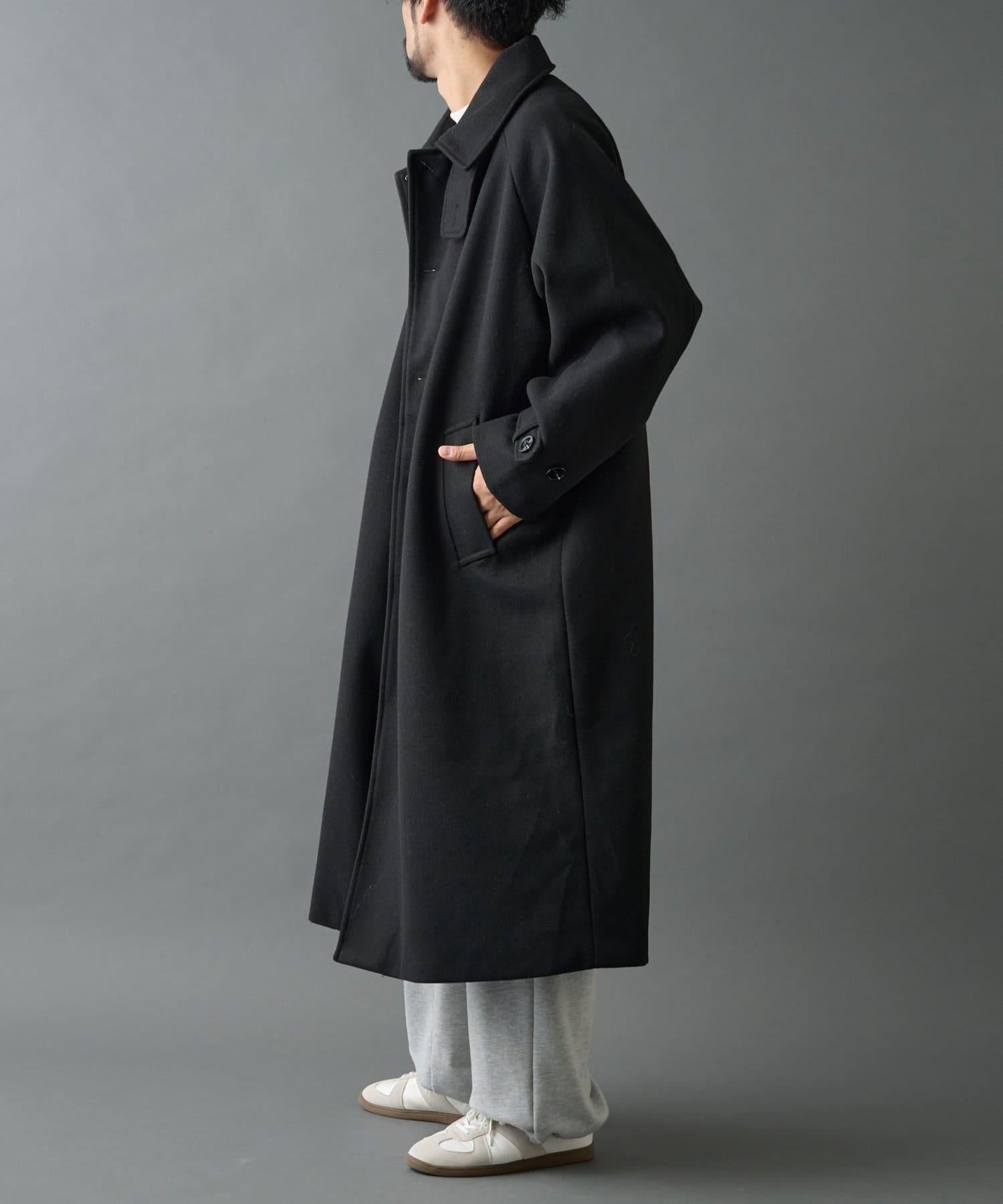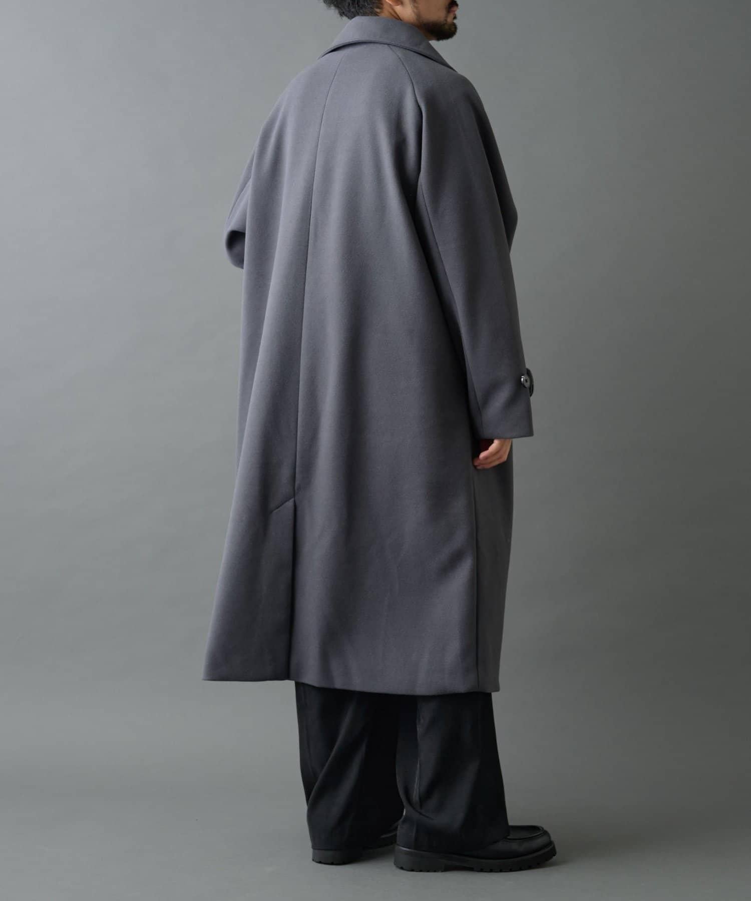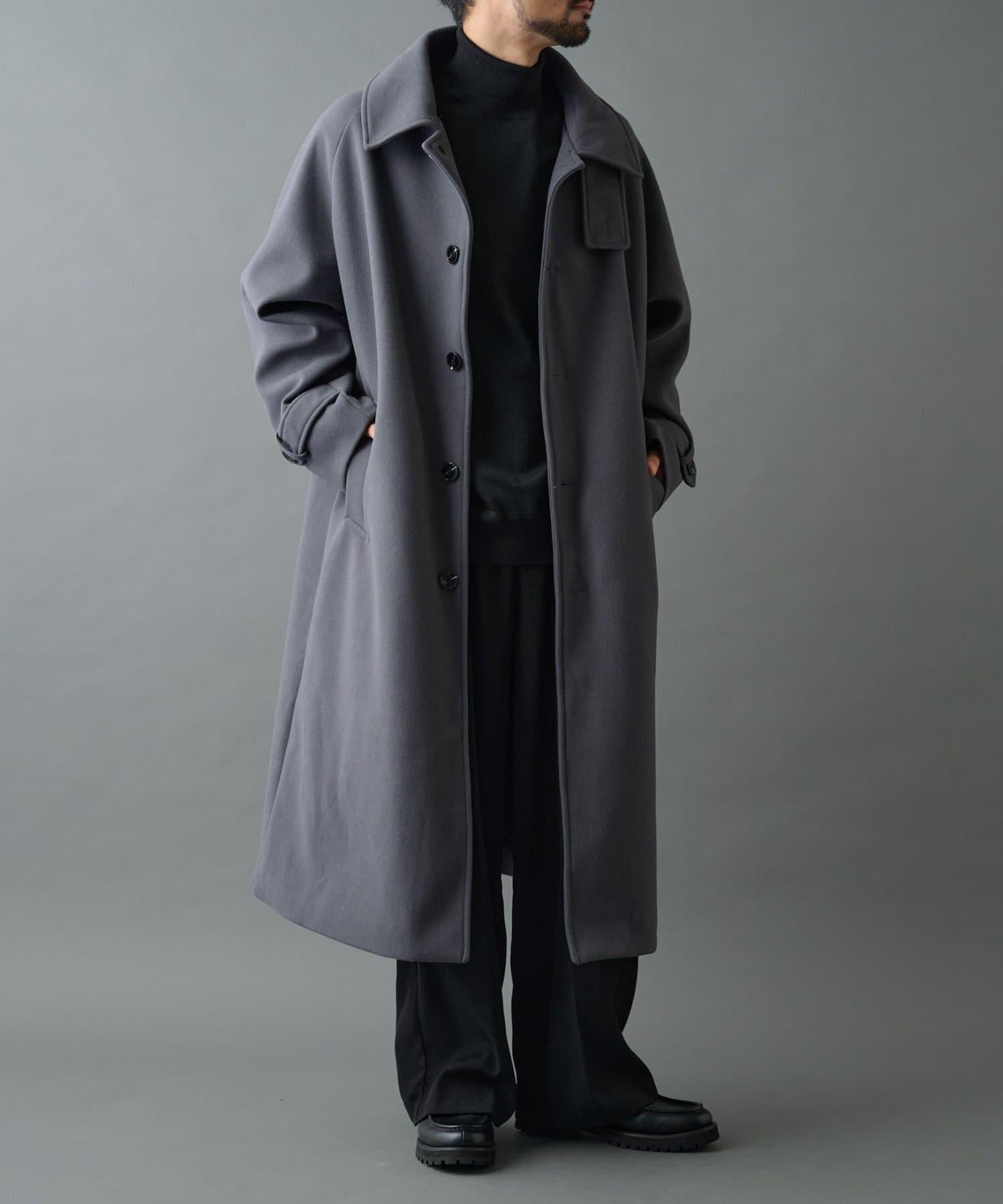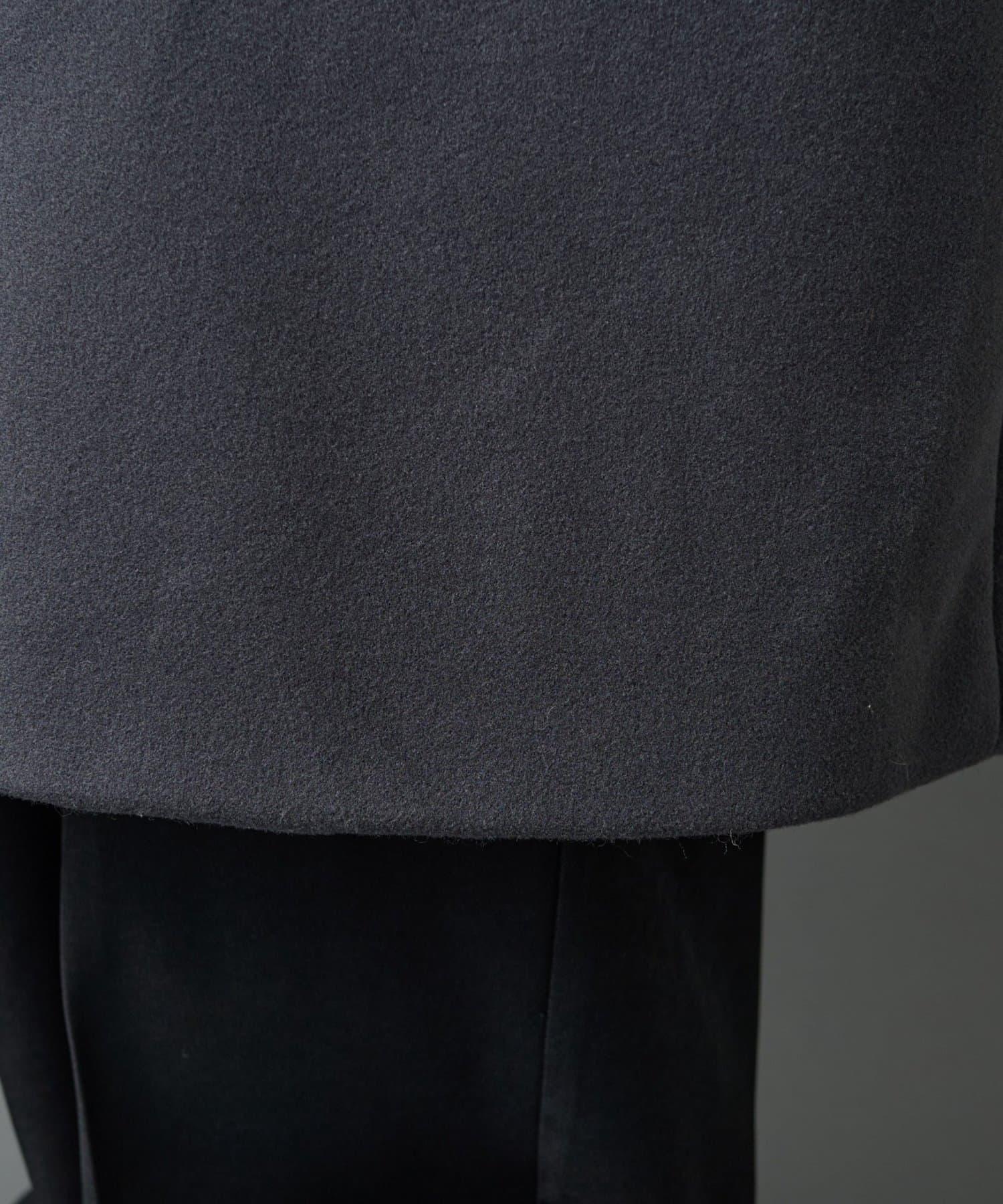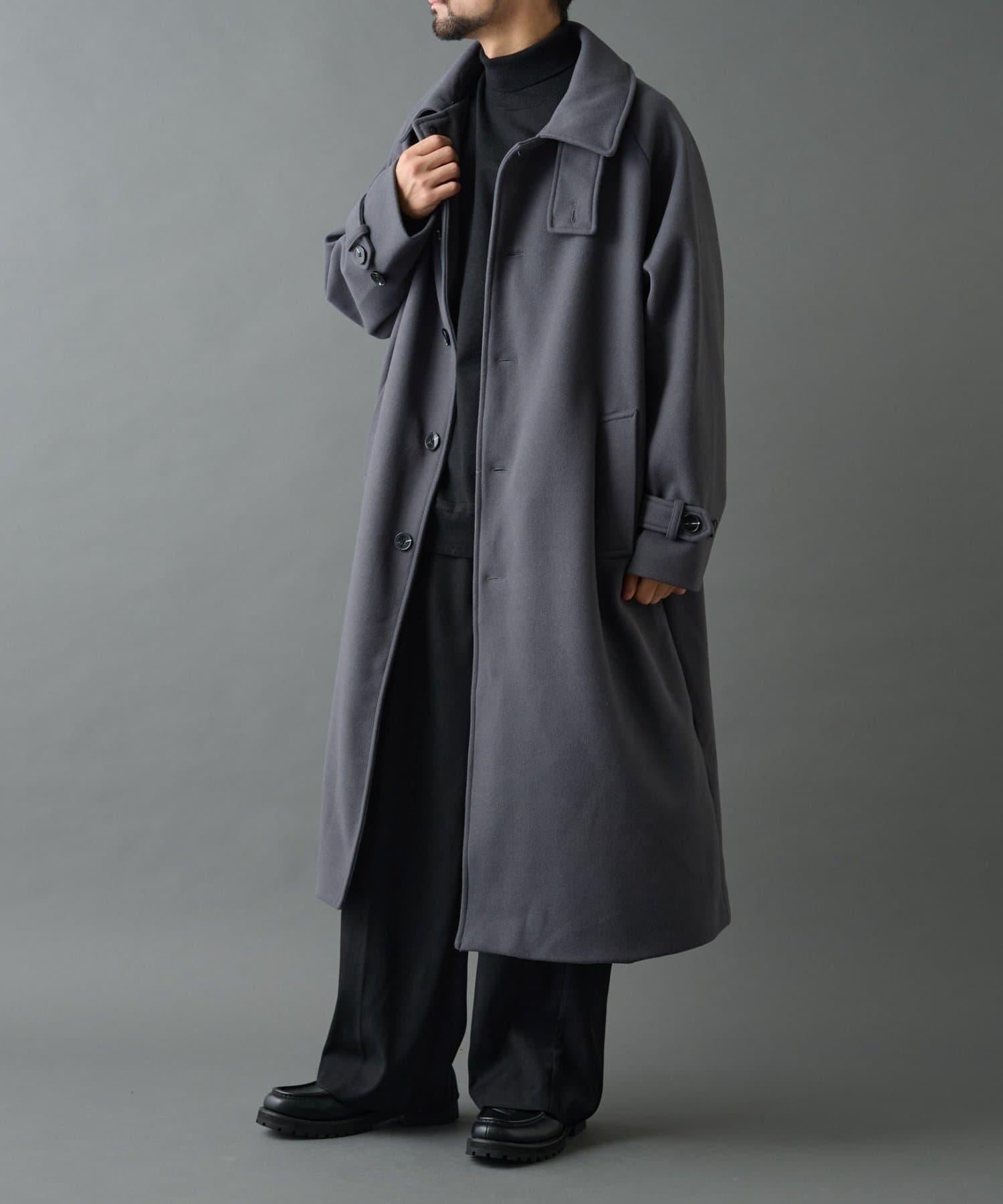 科技羊毛製成的不鏽鋼領長款外套,兼具古典外觀與現代功能。
