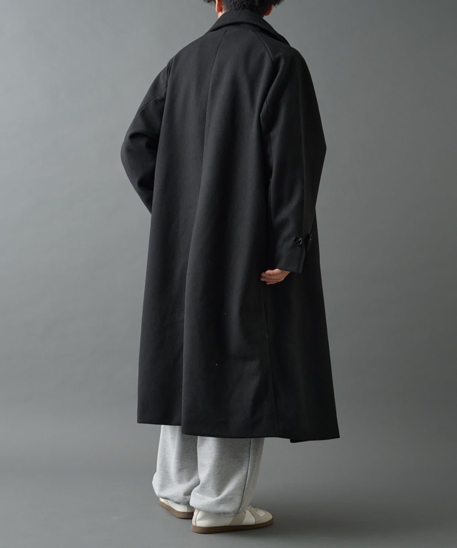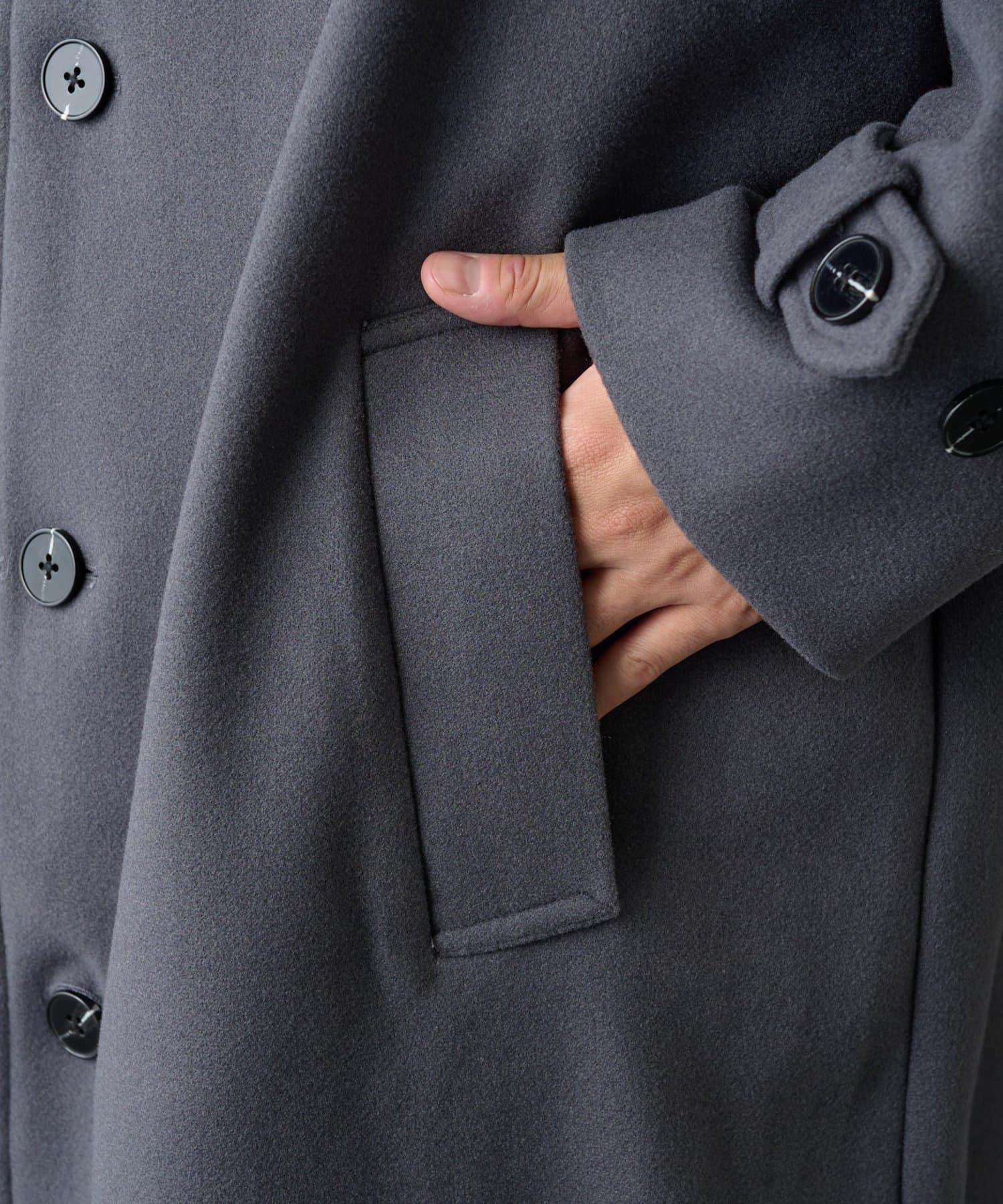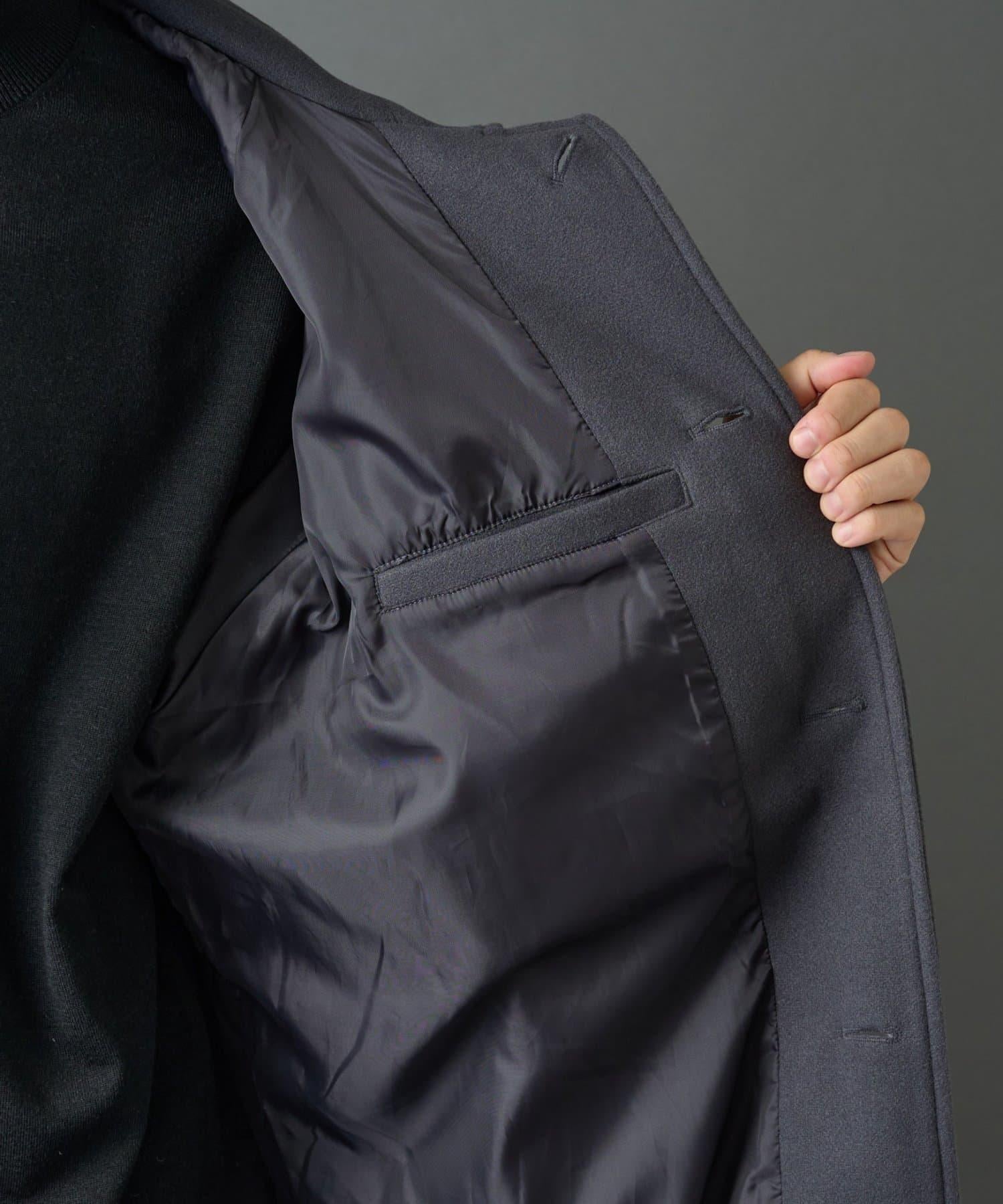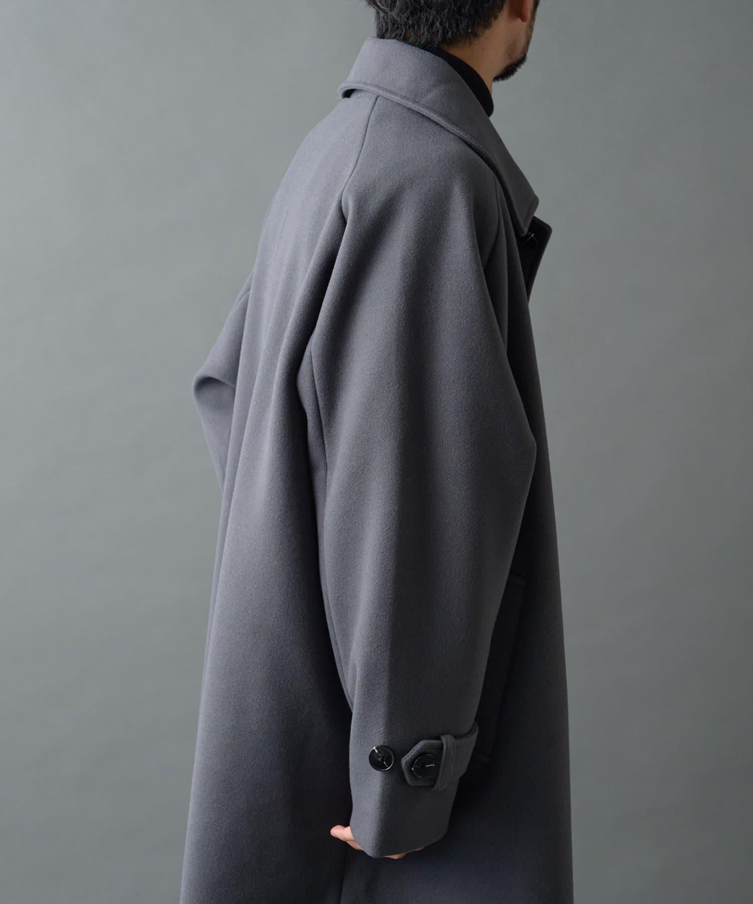 科技羊毛製成的不鏽鋼領長款外套,兼具古典外觀與現代功能。