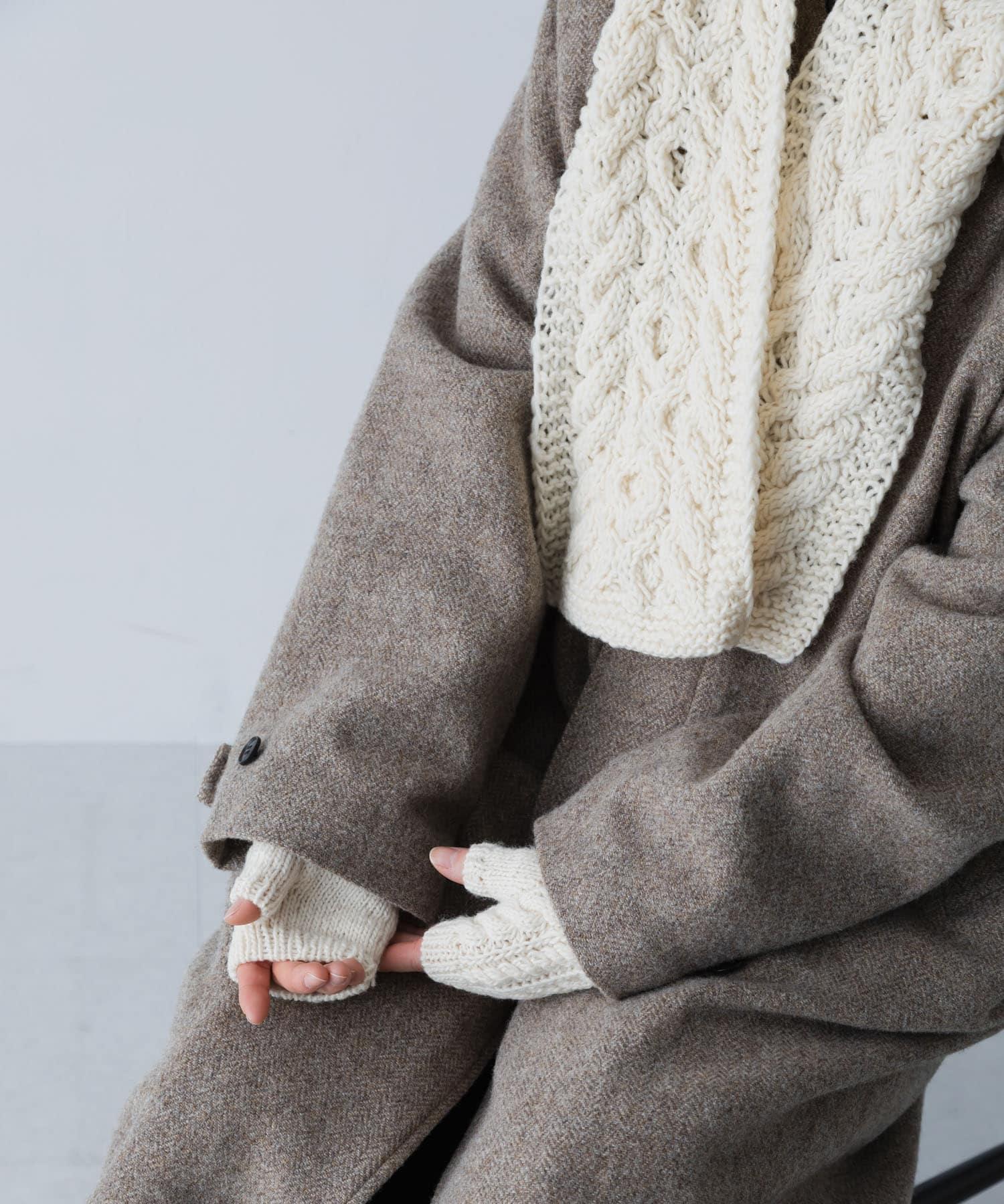由秘魯的的喀喀湖附近的編織者精心製作。採用粗獷的阿蘭圖案,質感令人賞心悅目。指尖是開放式的,方便使用。小巧的尺寸也是一大亮點,既能保溫,又便於在日常生活中使用。還可提供該系列的其他產品。