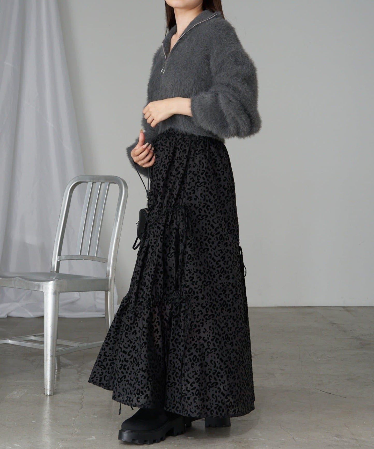 收腰拉鍊針織衫。