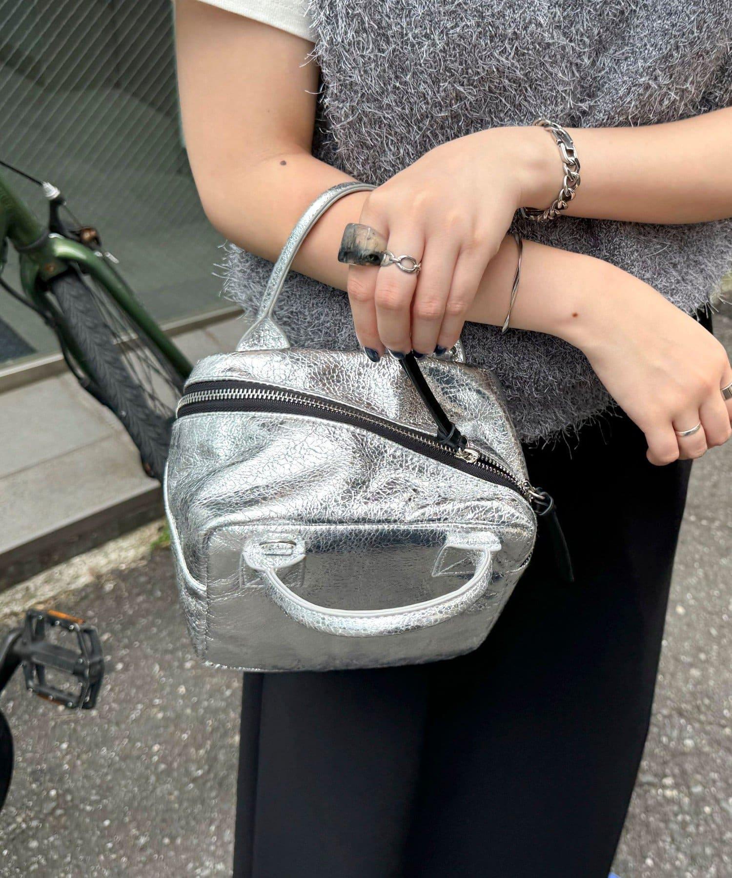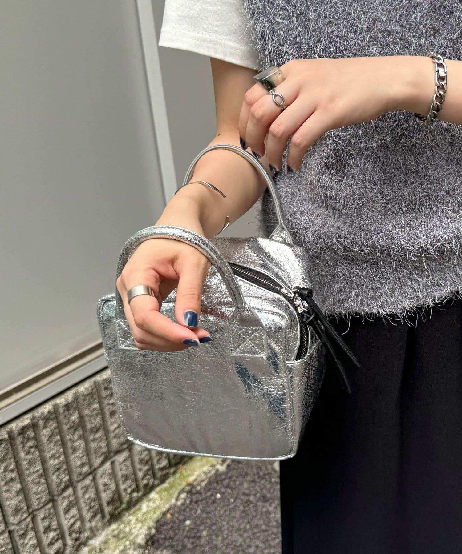 一款雙向手袋,閃耀著奪目的金屬光澤。
