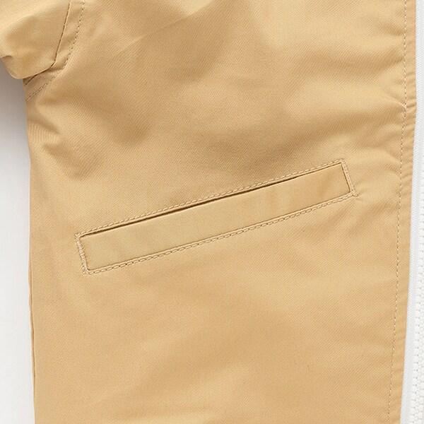 正面的白色扣件以及袖口和下襬的白色線條給人一種運動感。