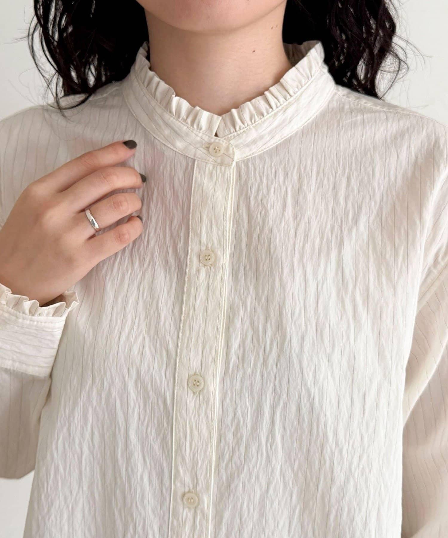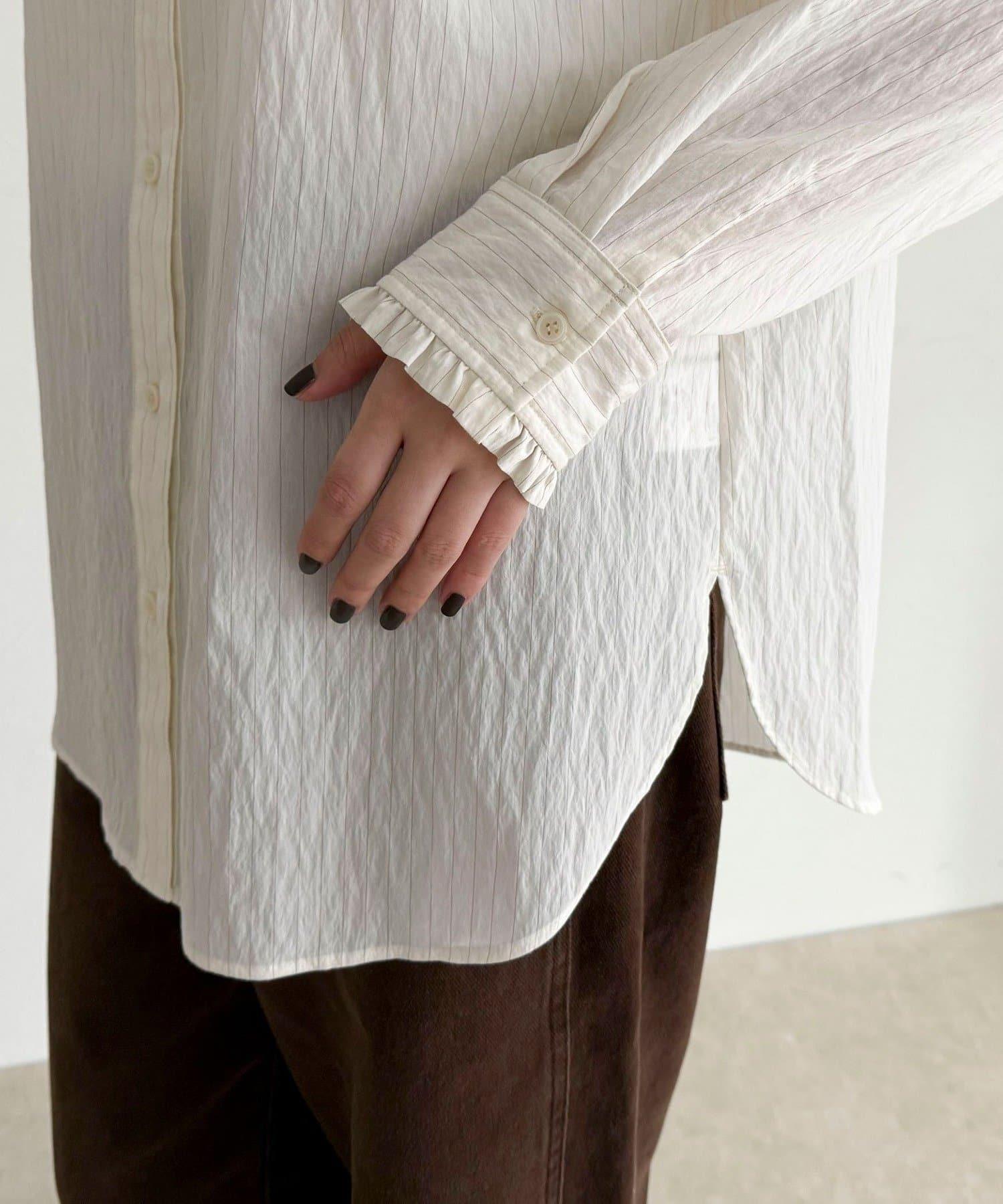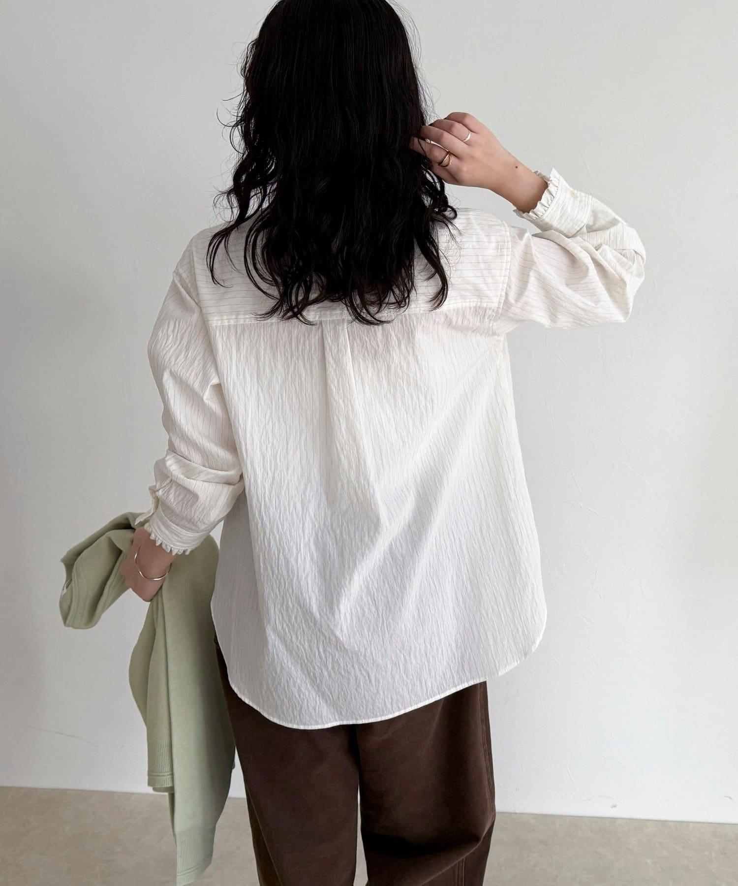 衣領和衣袖的流蘇設計提升了這款襯衫的女性魅力。