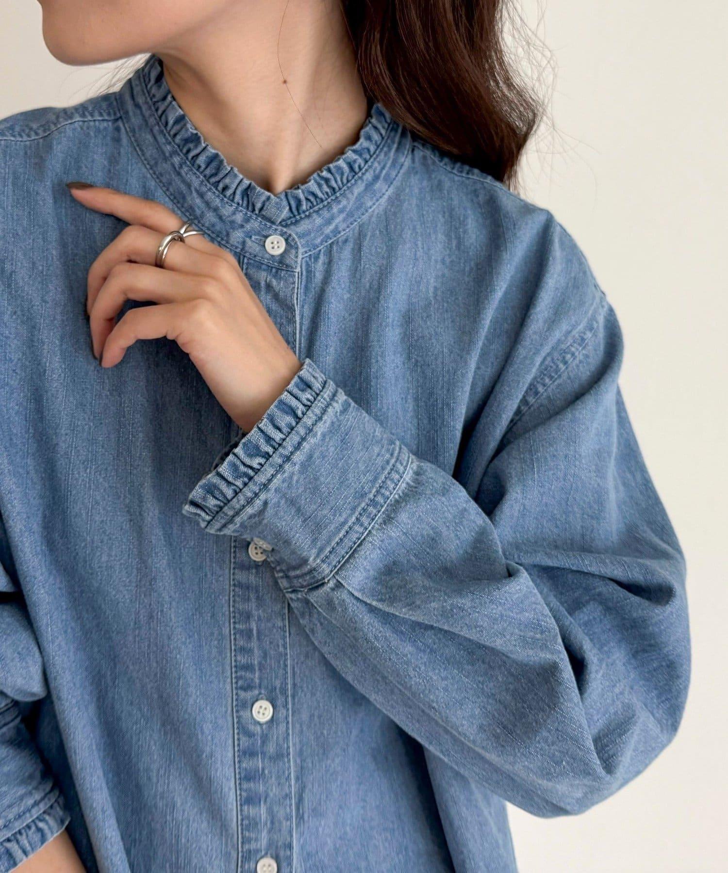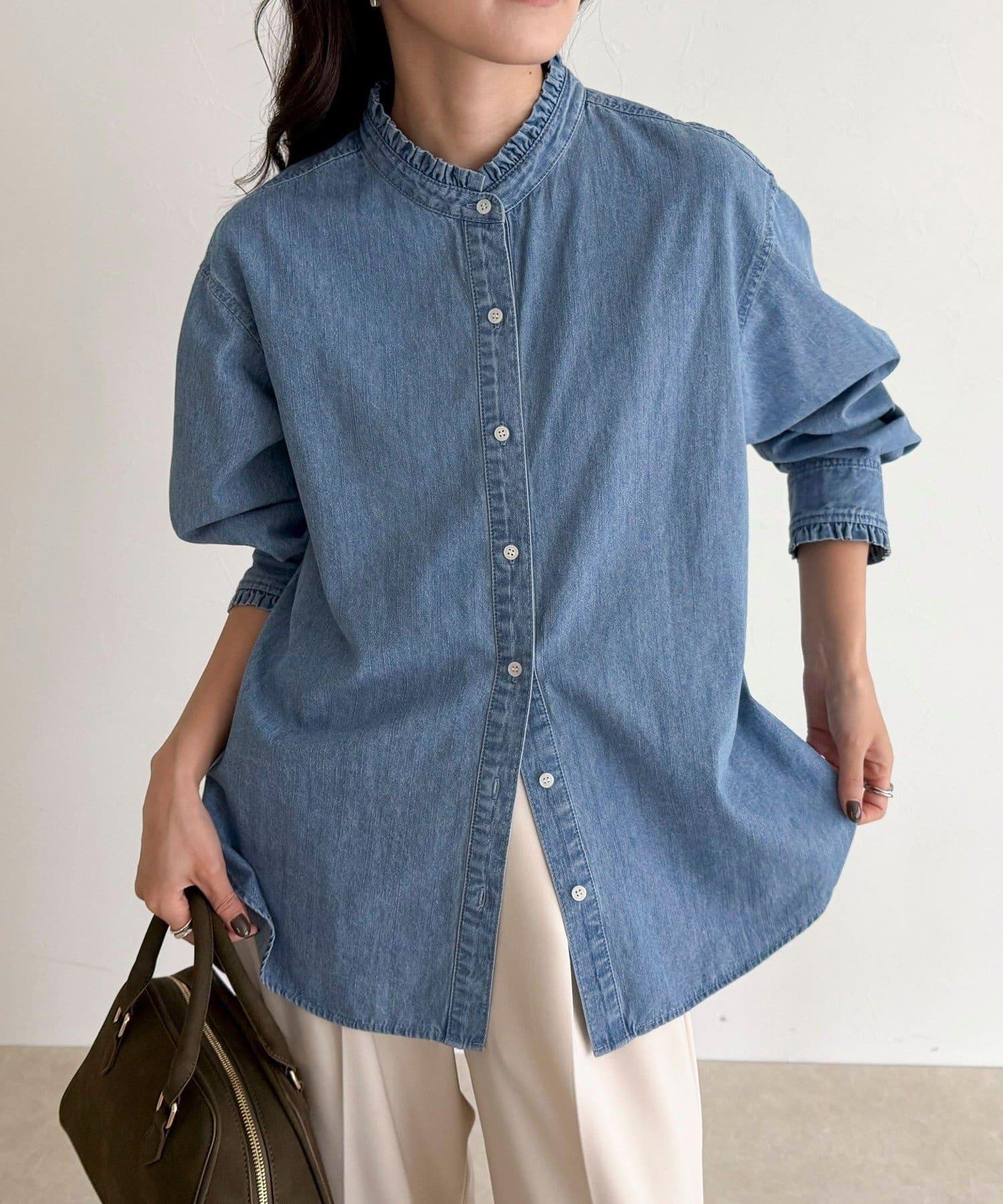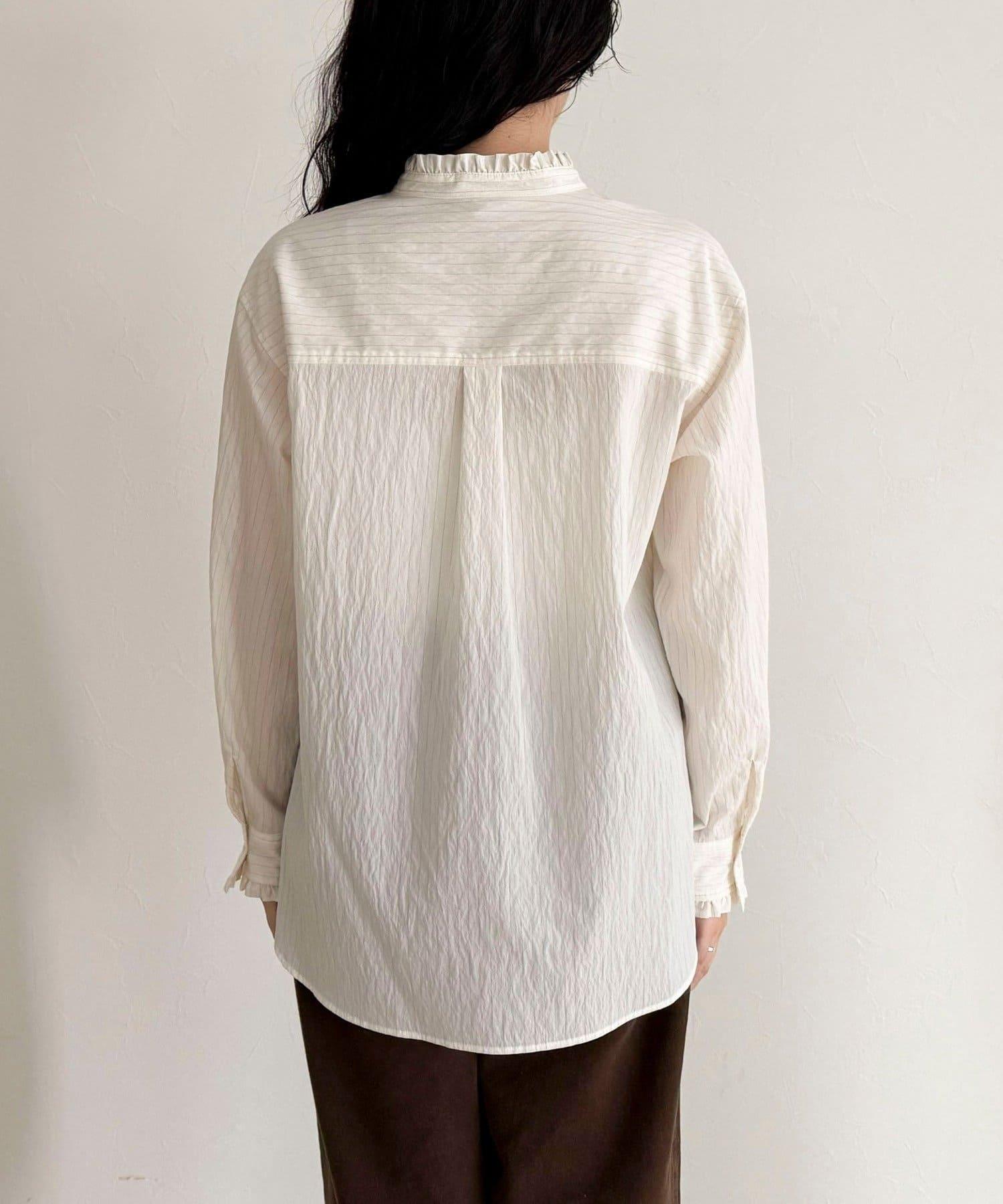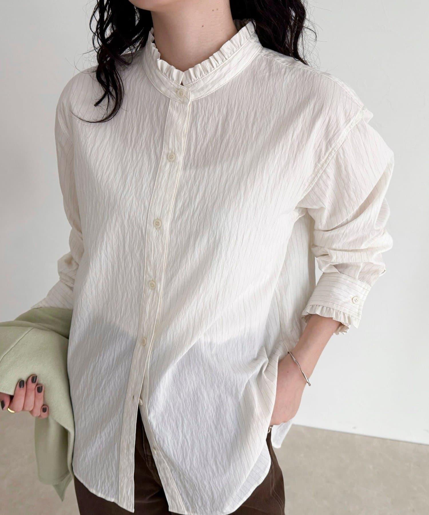 衣領和衣袖的流蘇設計提升了這款襯衫的女性魅力。