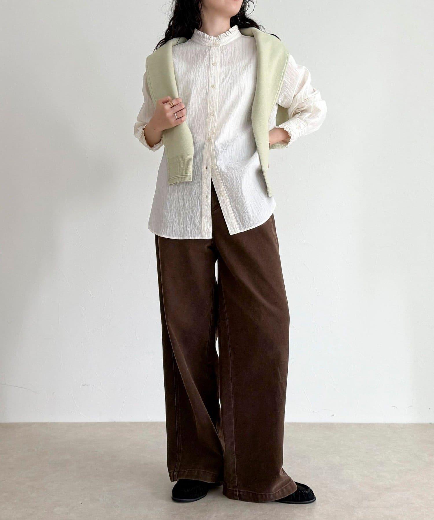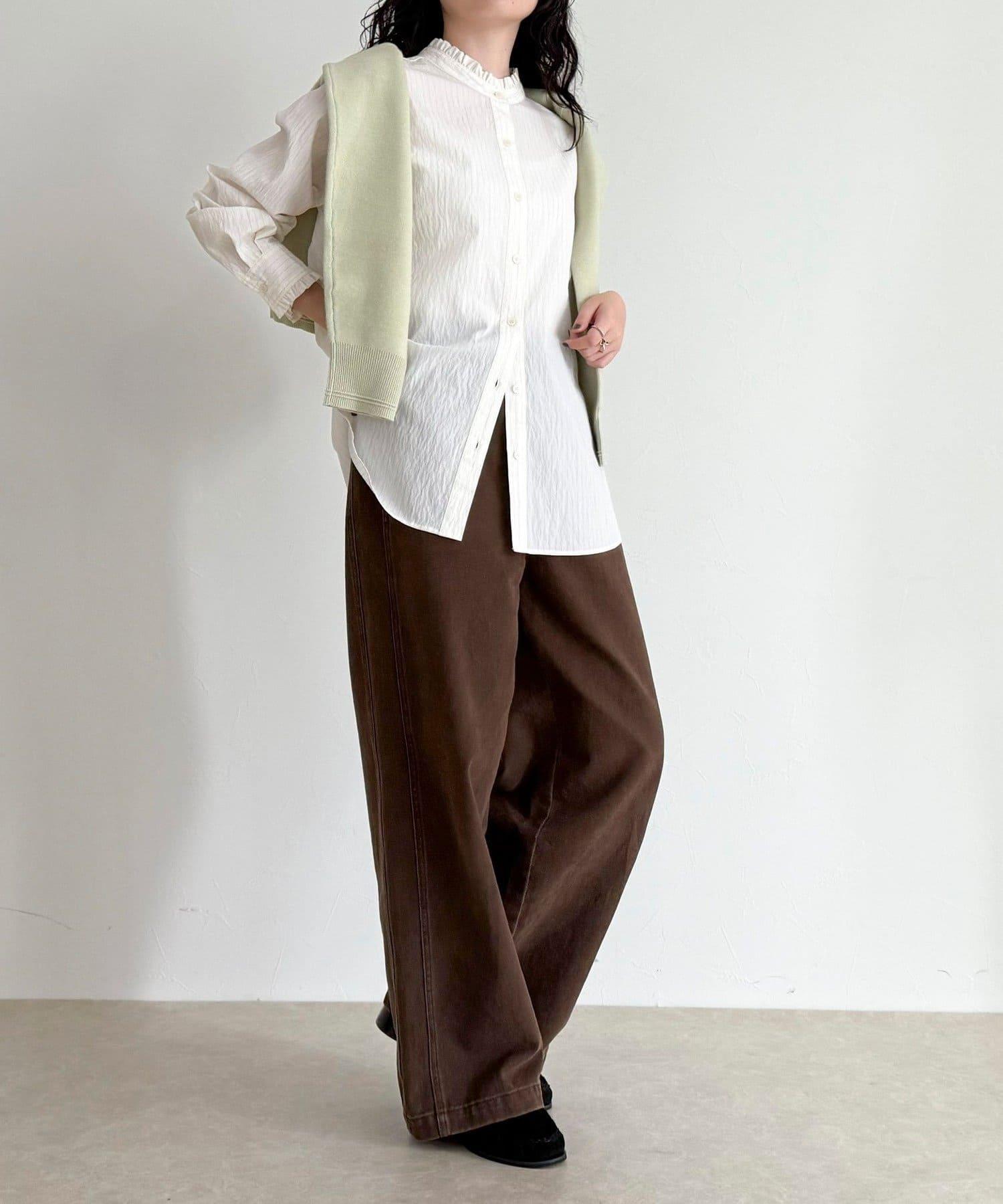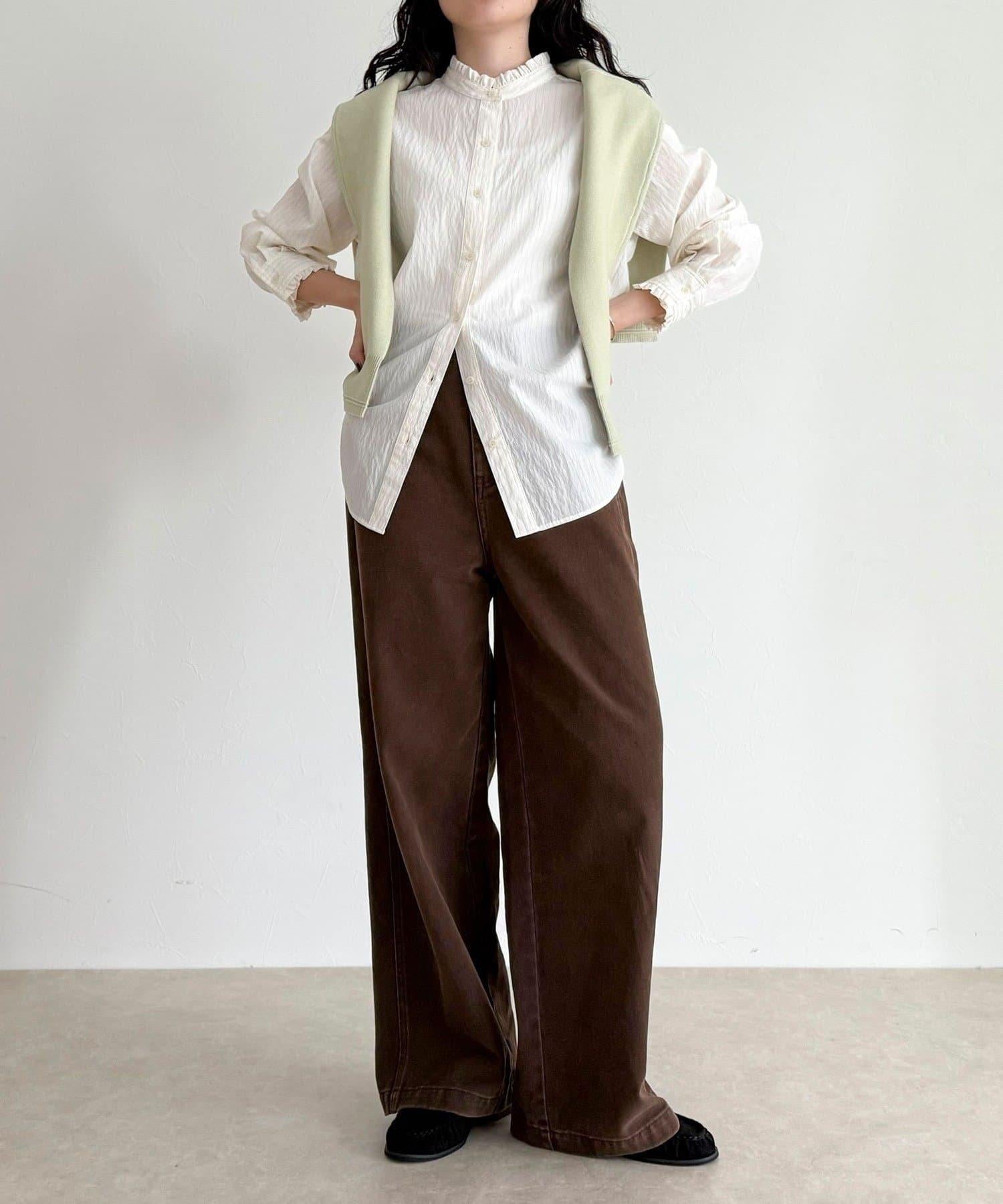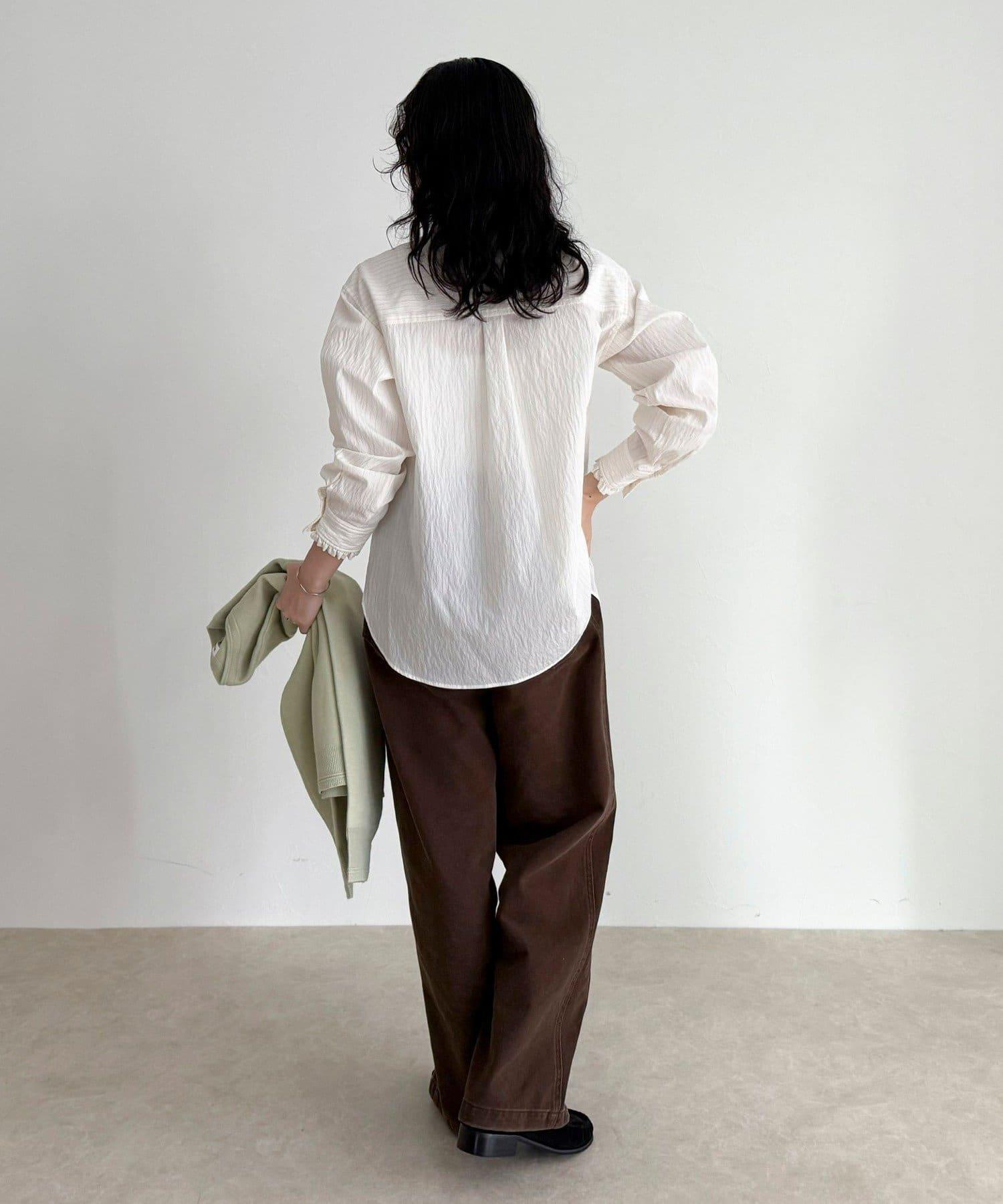 *由於面料的特性,本產品在夾住線頭時容易彈出。穿著時,請注意不要與皮帶、包包或周圍牆壁等粗糙表面摩擦或卡住。