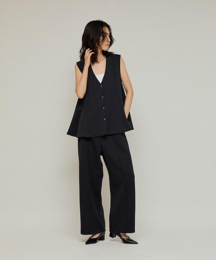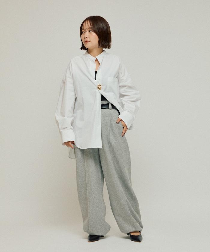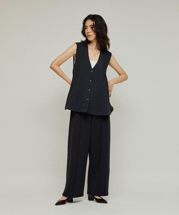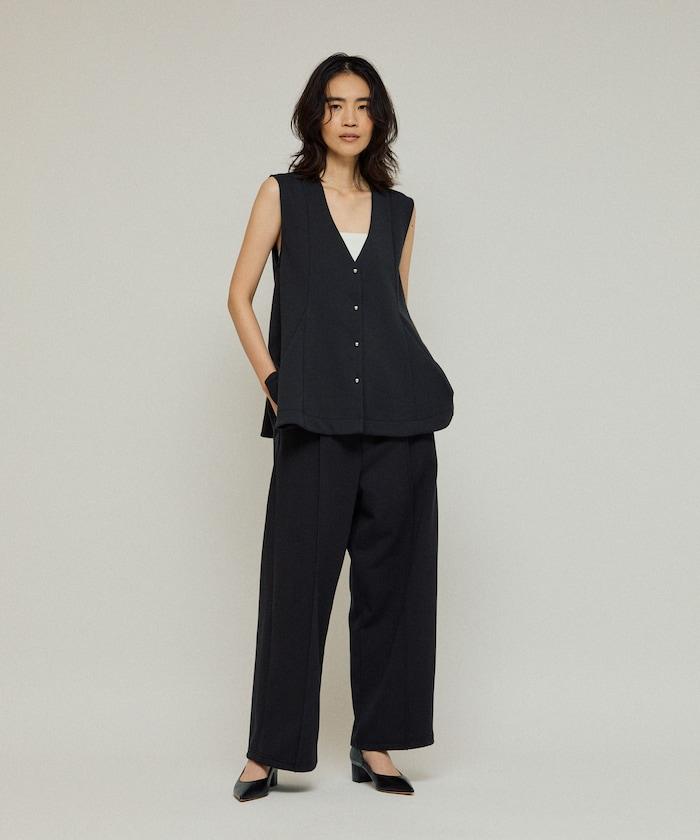 寬大的剪裁因前部中央的針襉而更加突出,同時還具有使雙腿看起來更纖細、更美觀的效果。