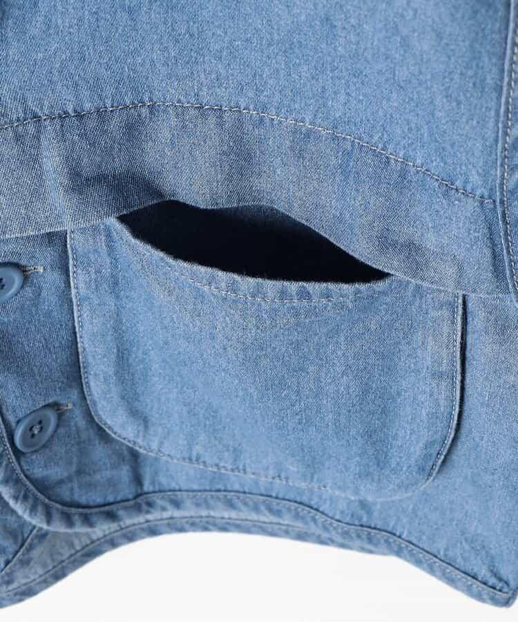 面料由 100% 全棉防裂面料/輕質牛仔布製成。