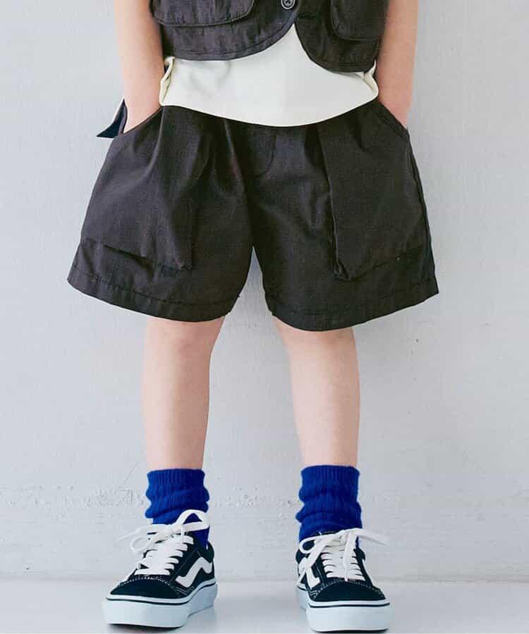 半截褲,採用實用的工裝風格設計,配有大口袋。