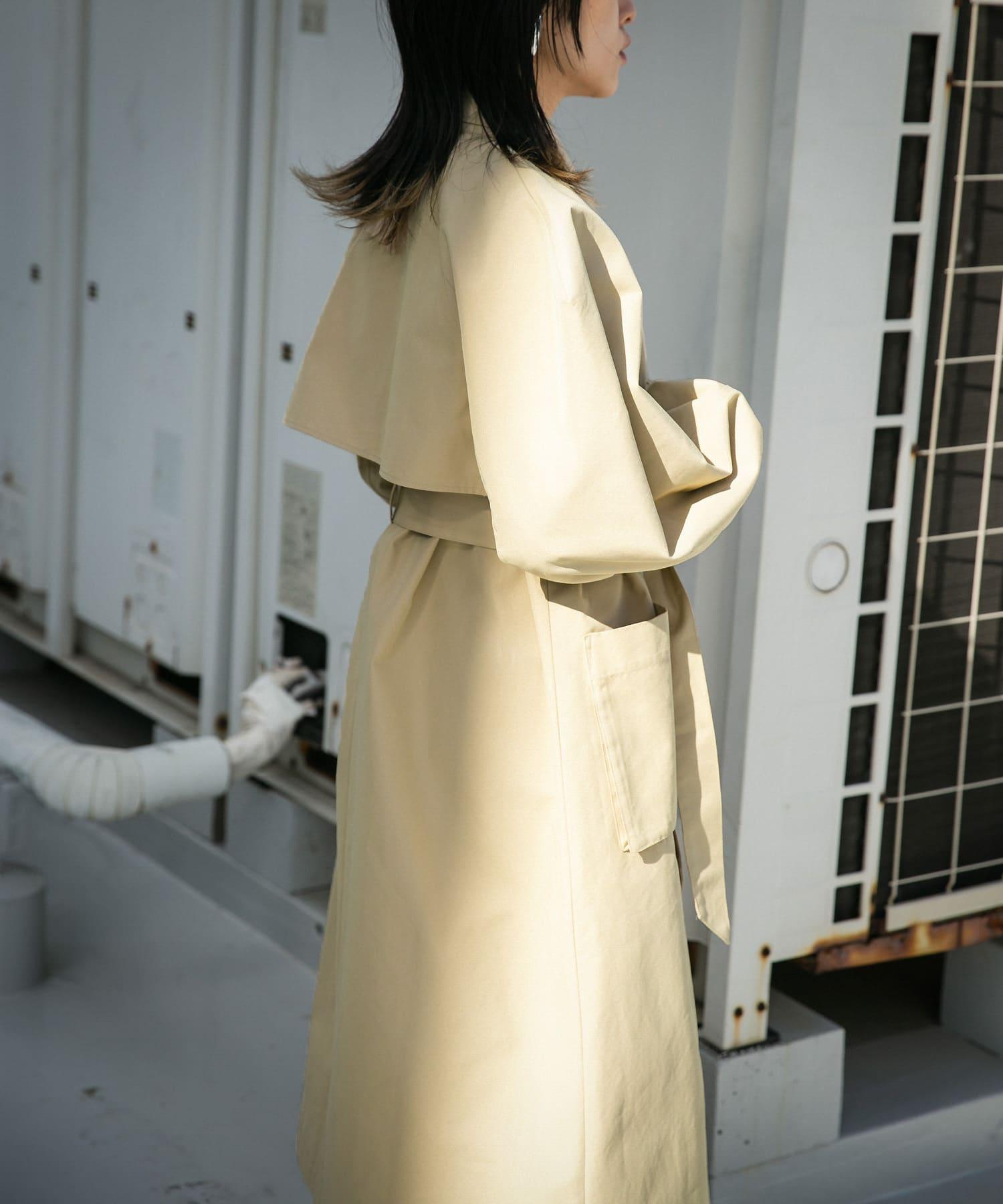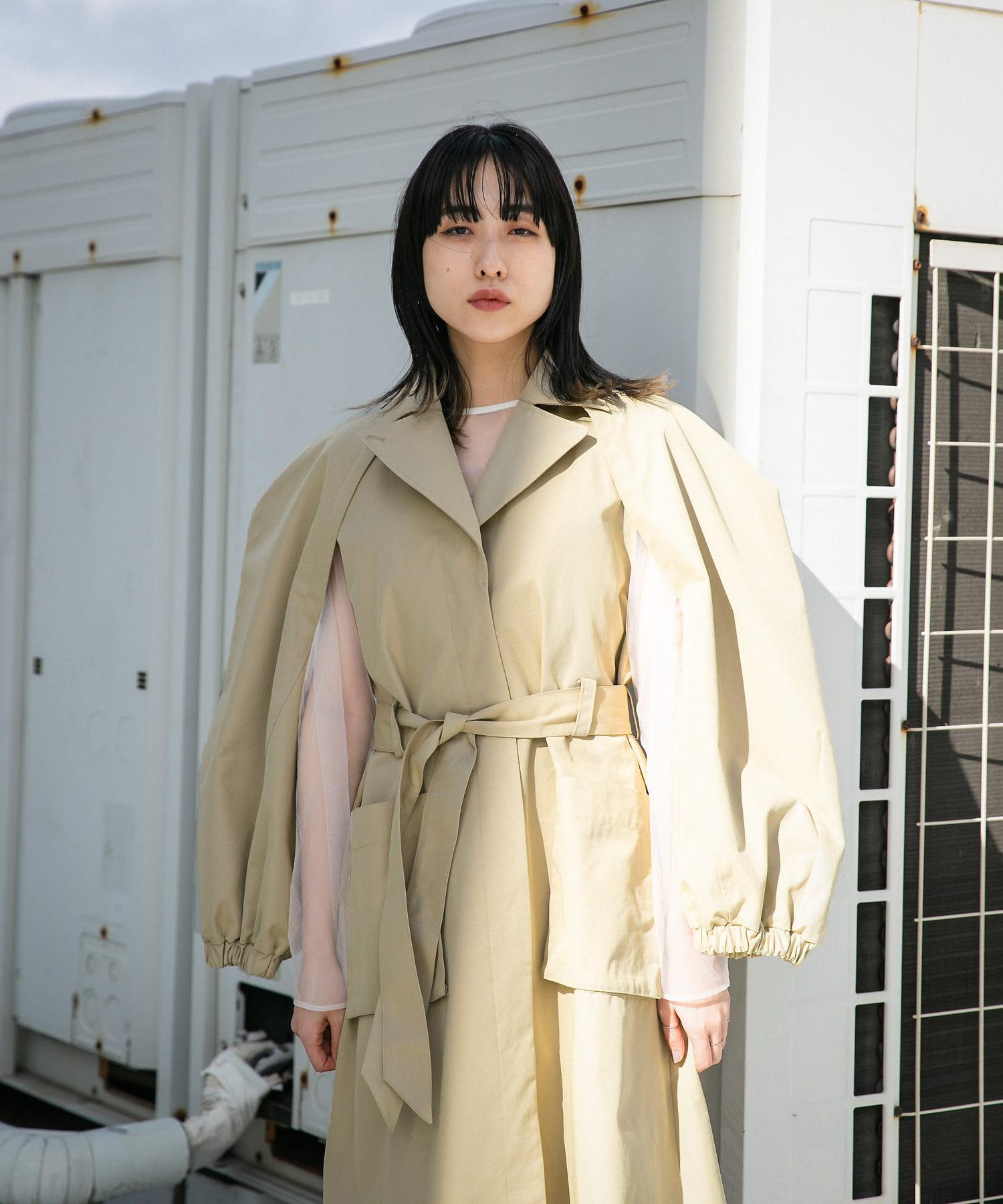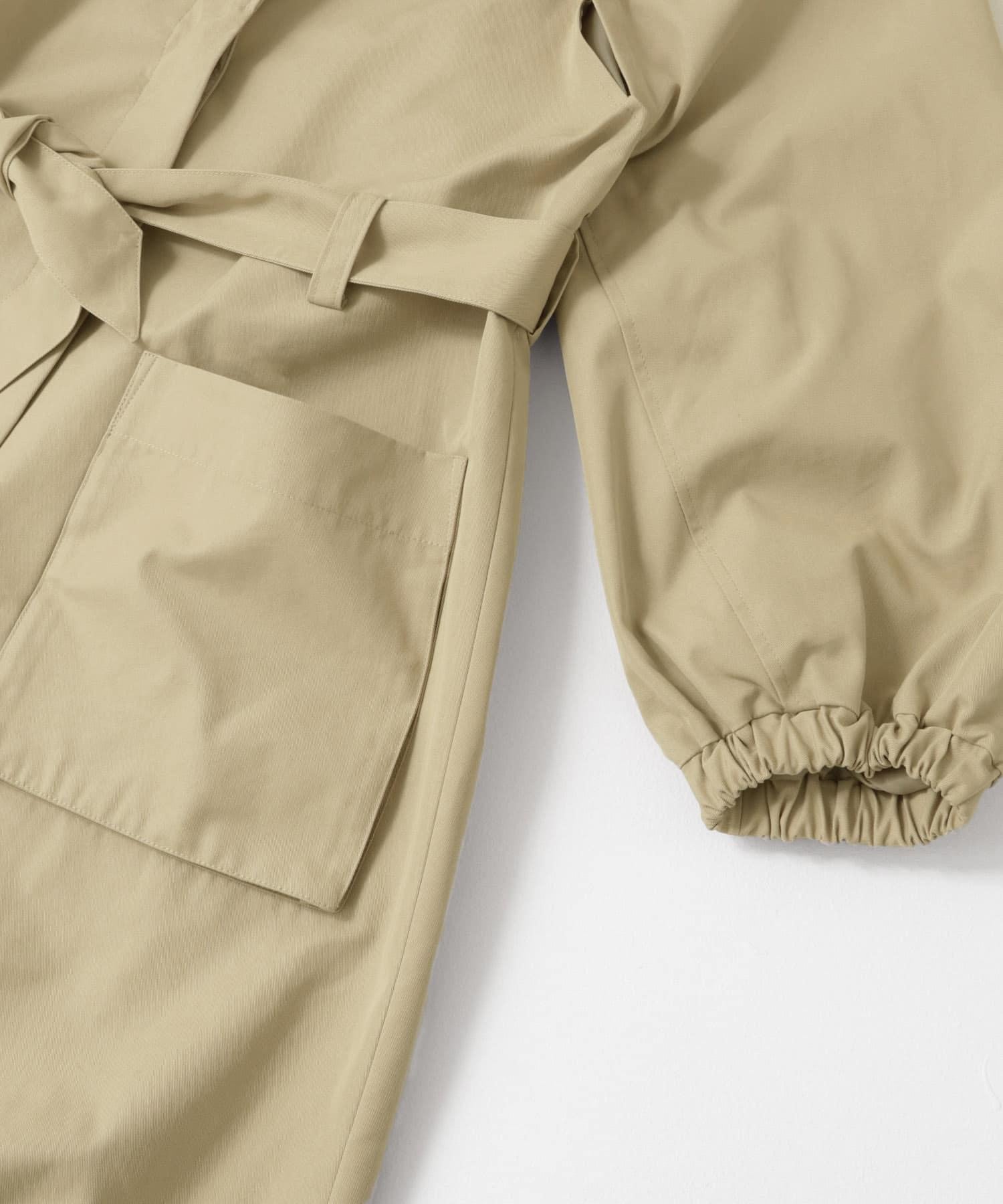 這款春季外套採用斜紋織物製成,看上去就像一件風衣。袖子的設計具有體積感,給人一種摩登的印象。袖口可以解開,露出手臂。袖口採用鬆緊設計,可以輕鬆捲起袖子,是一款實用的單品。