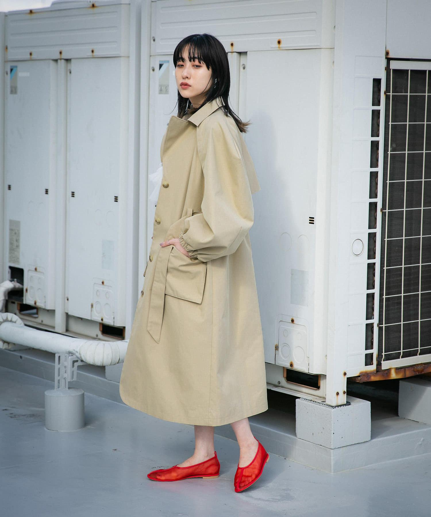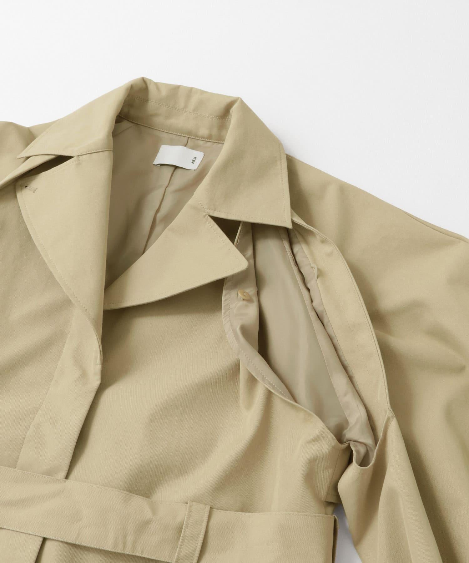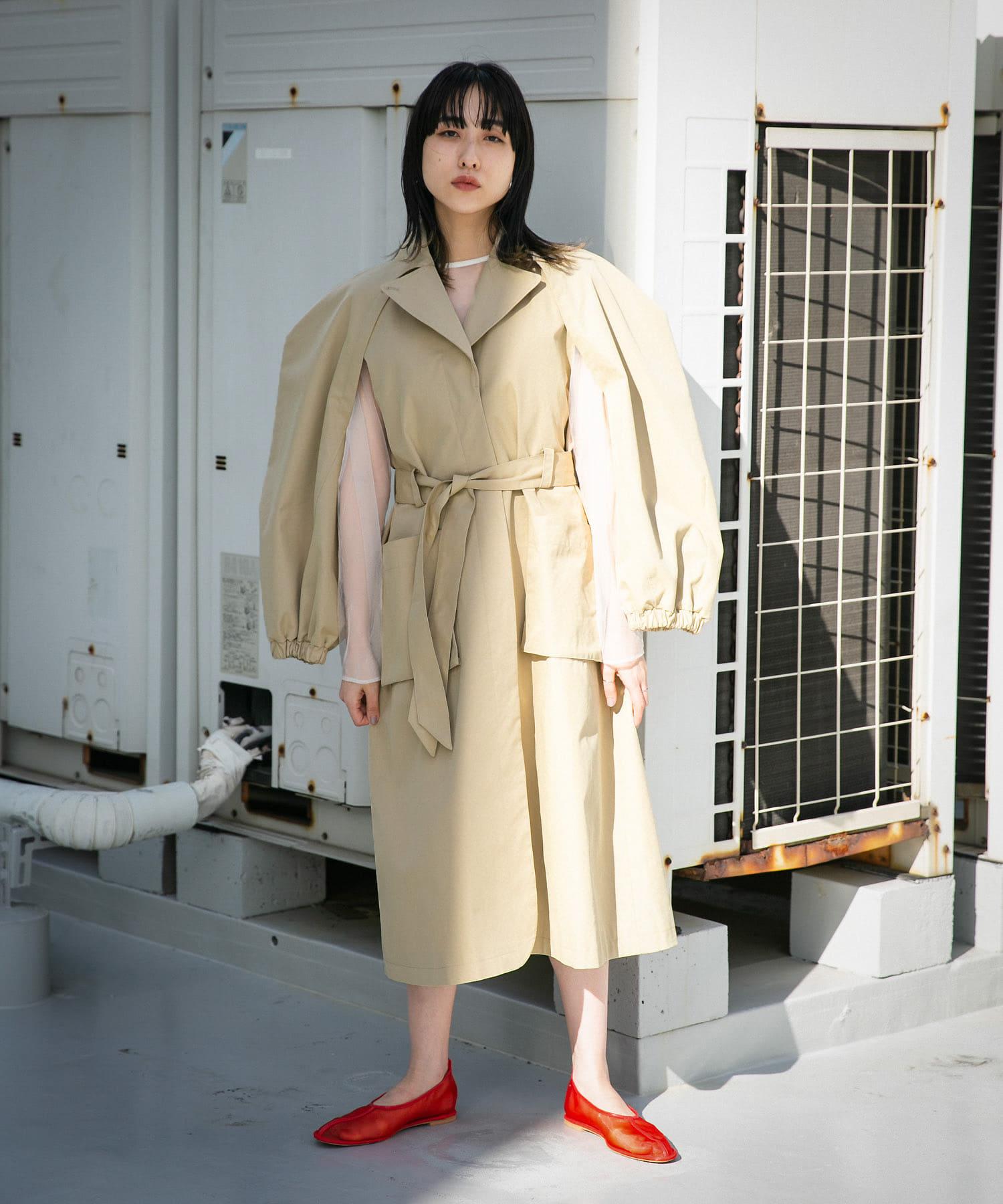 這款春季外套採用斜紋織物製成,看上去就像一件風衣。袖子的設計具有體積感,給人一種摩登的印象。袖口可以解開,露出手臂。袖口採用鬆緊設計,可以輕鬆捲起袖子,是一款實用的單品。
