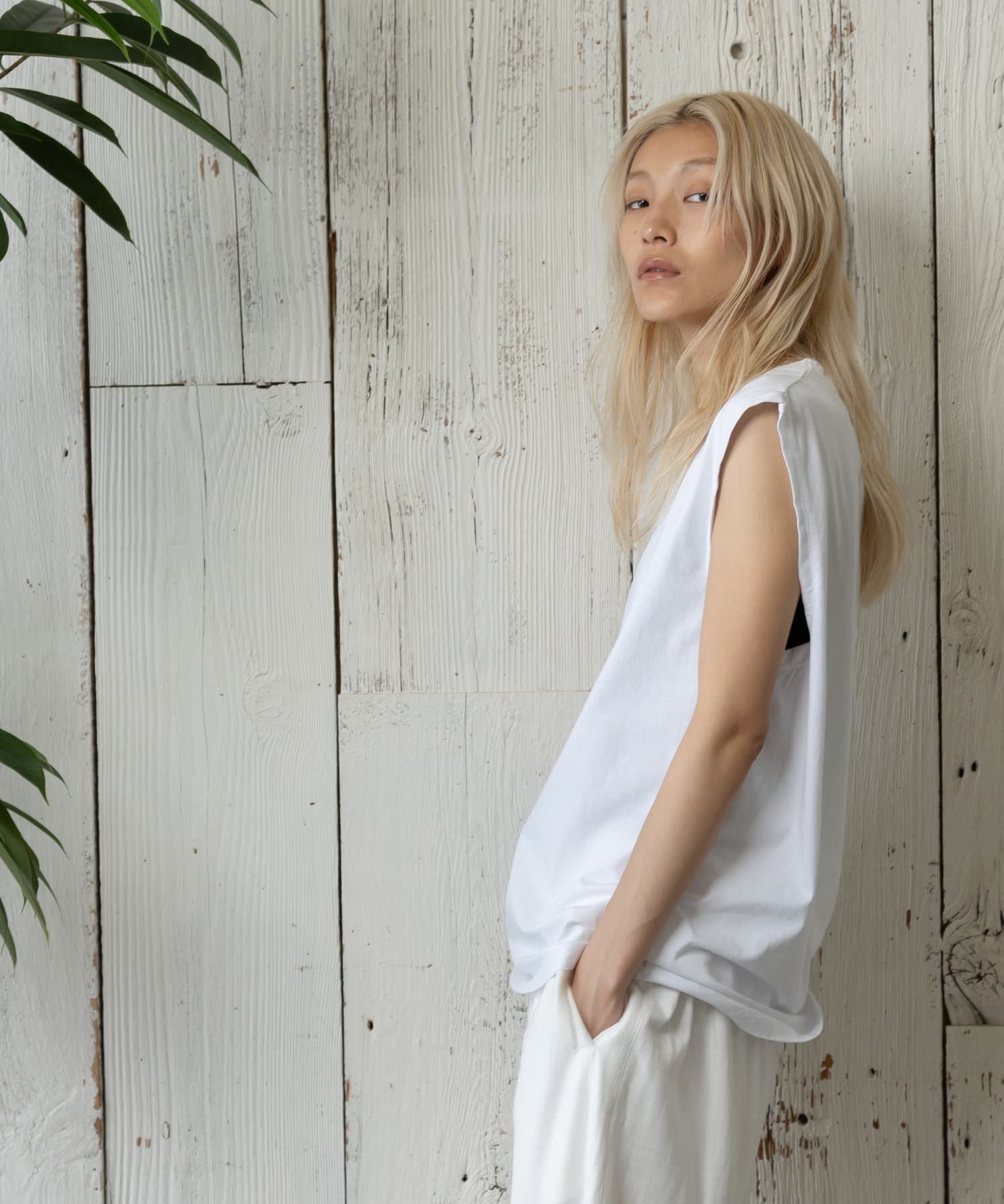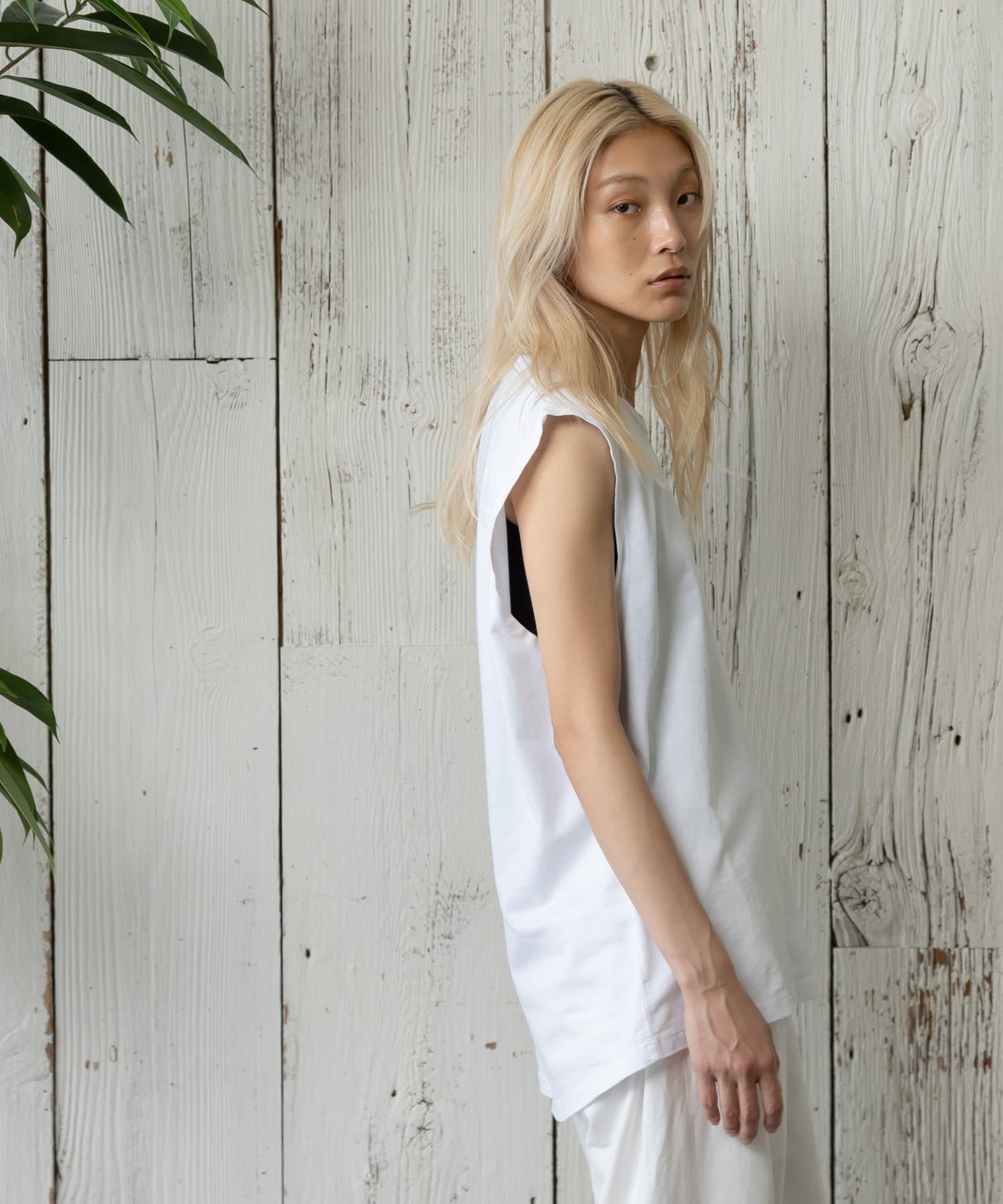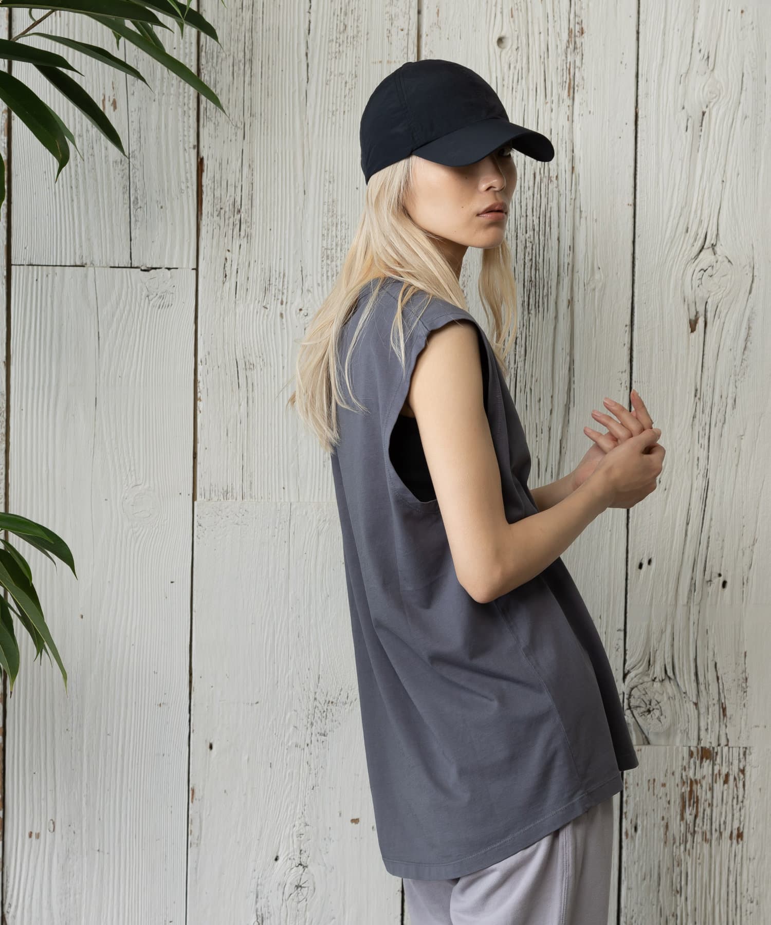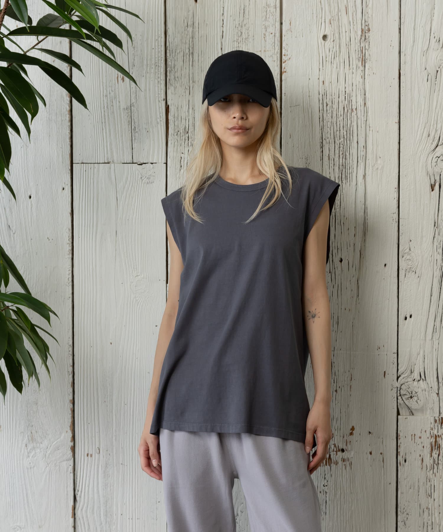 這款無袖服裝由 100% 純棉製成,表面潔淨,絨毛很少。