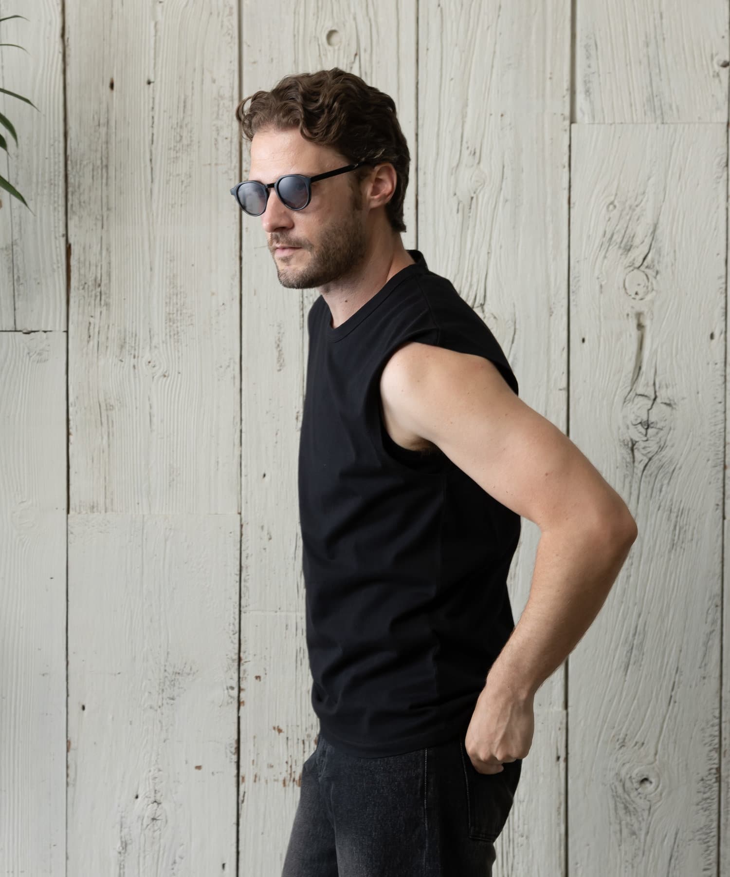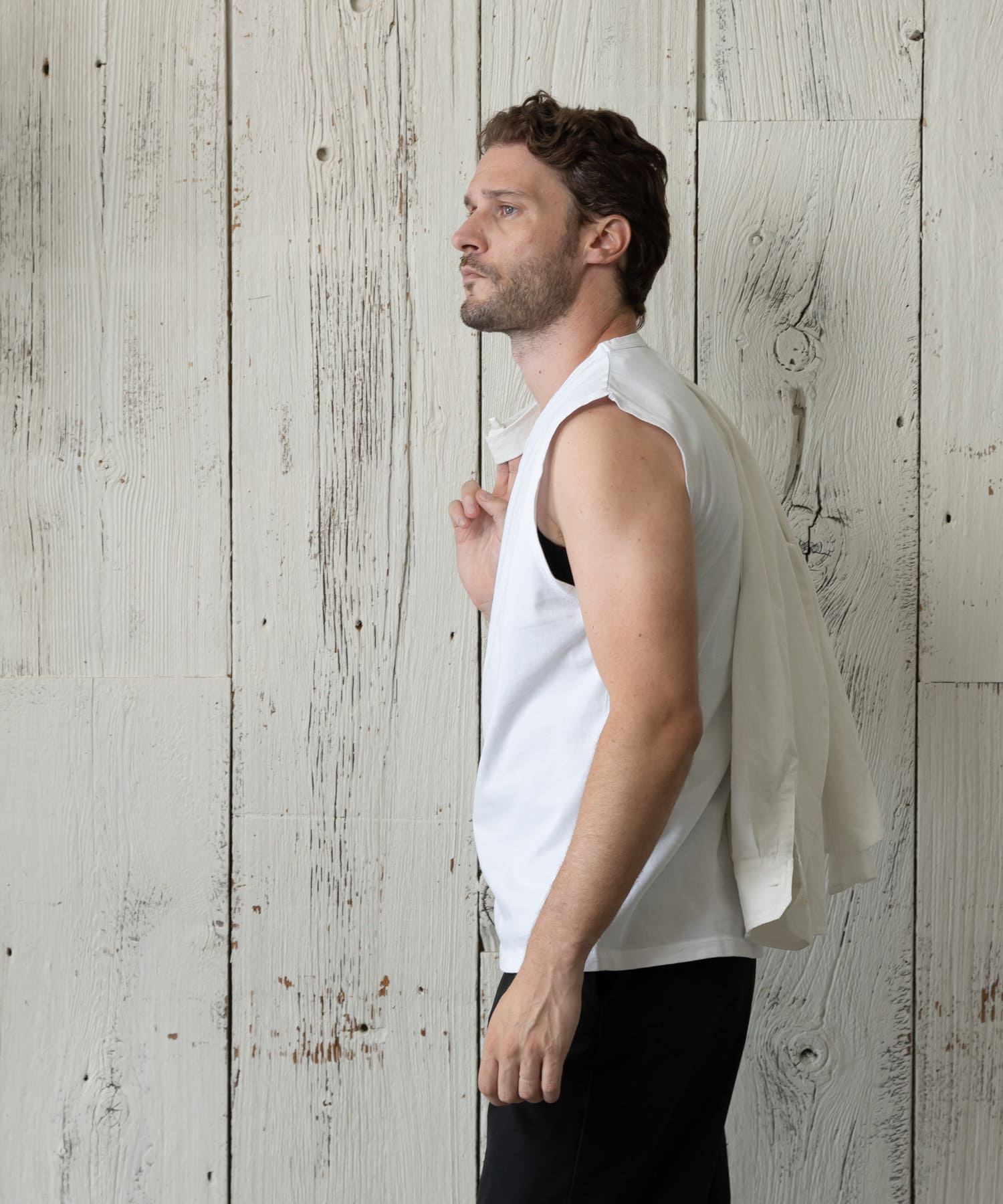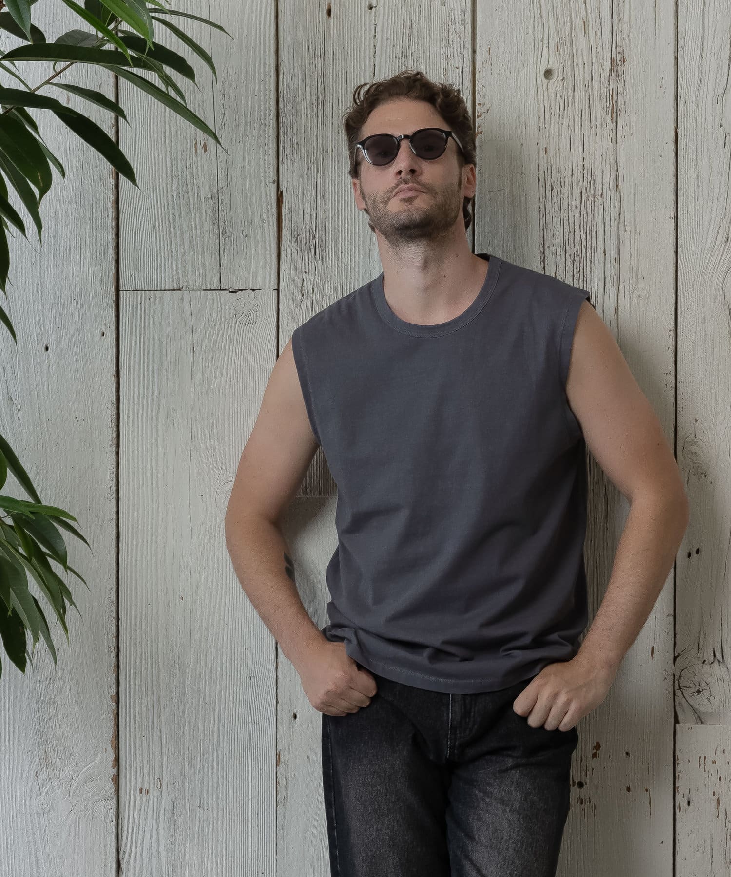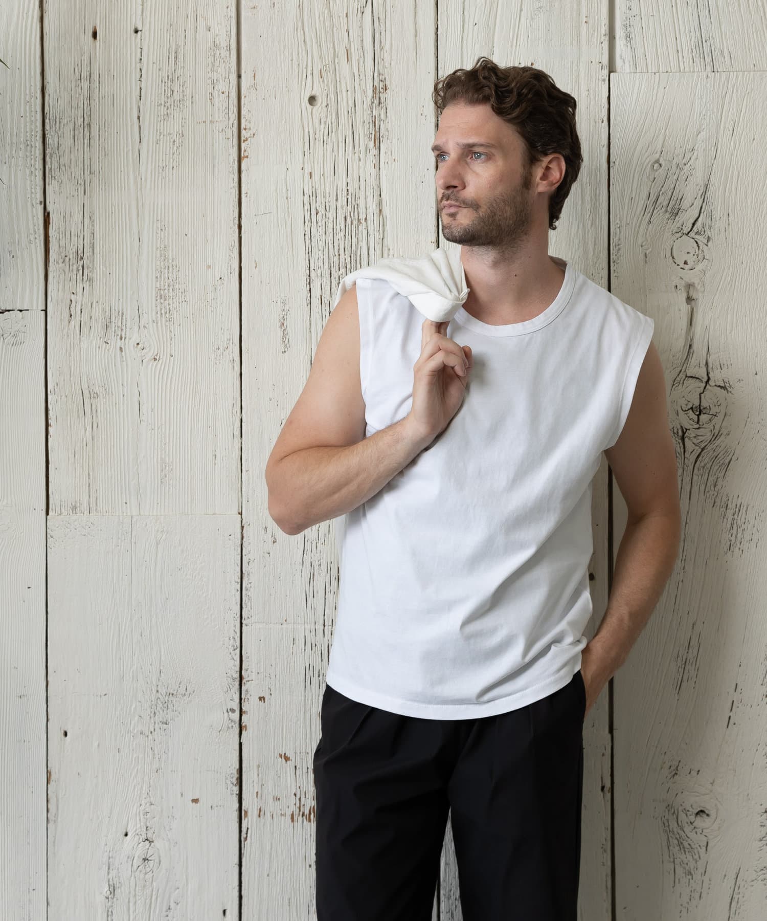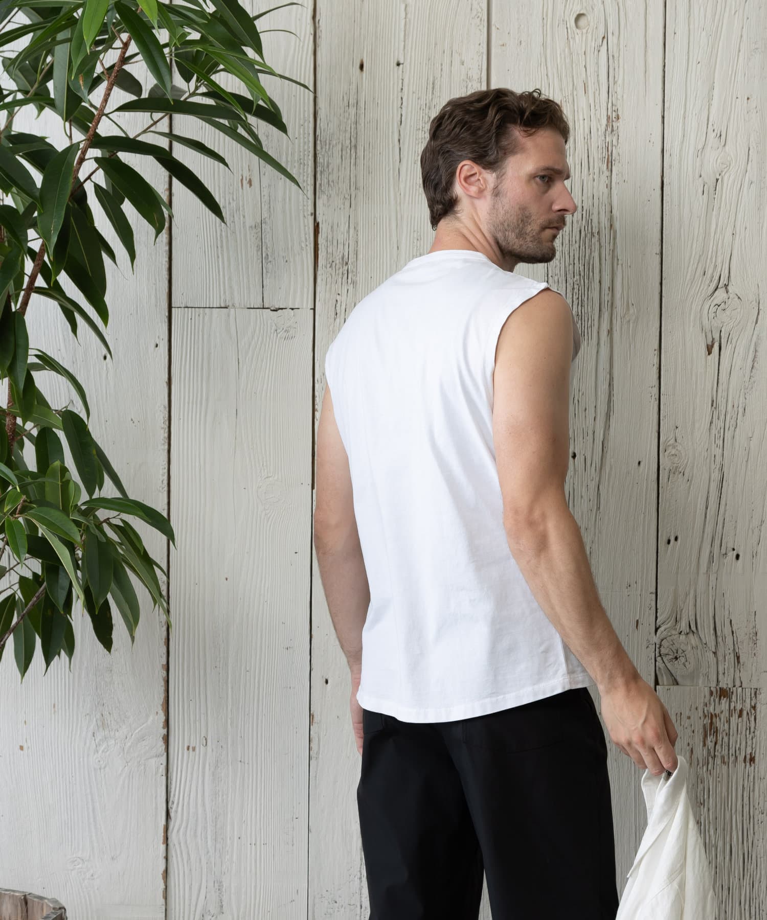 這款無袖服裝由 100% 純棉製成,表面潔淨,絨毛很少。