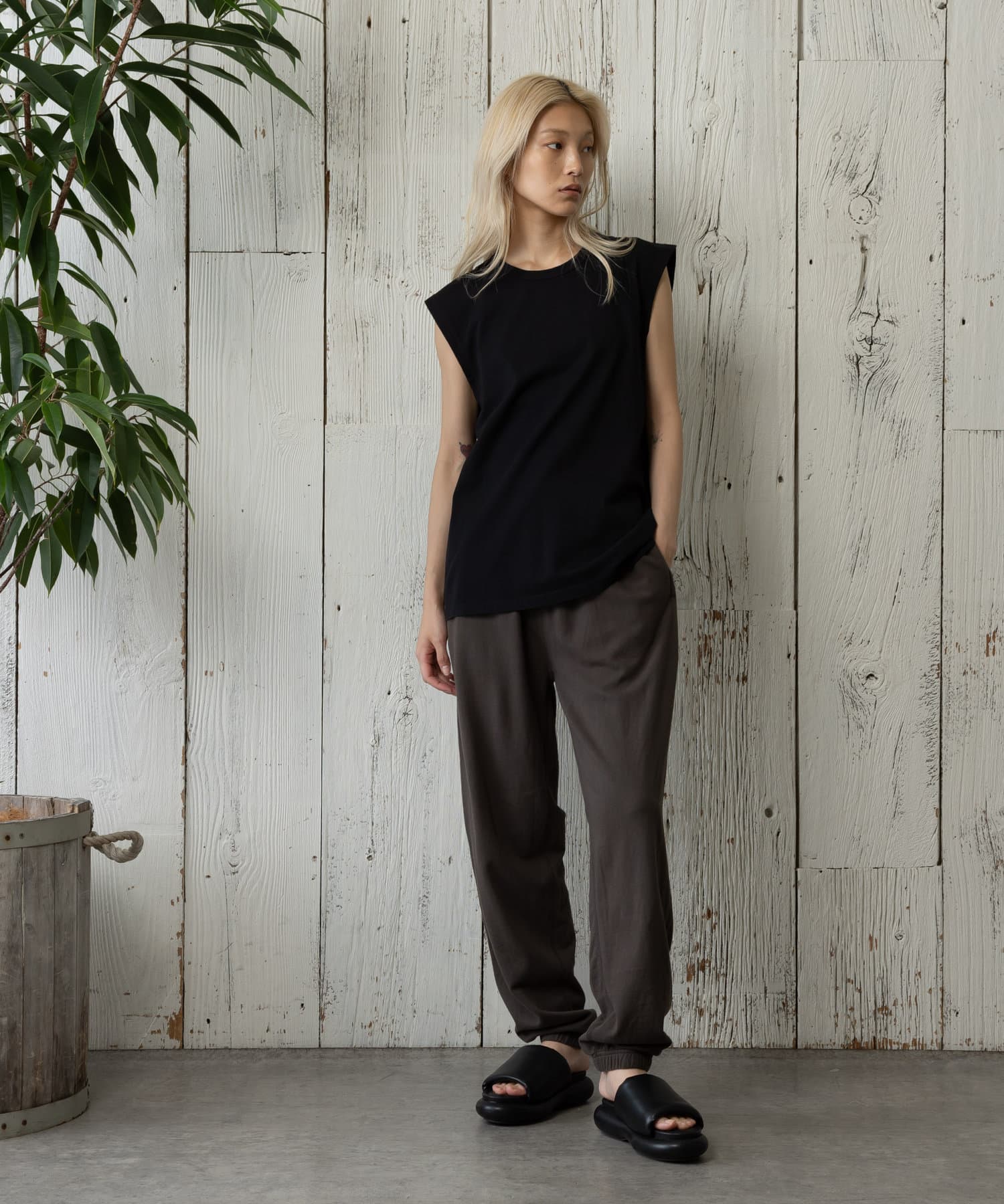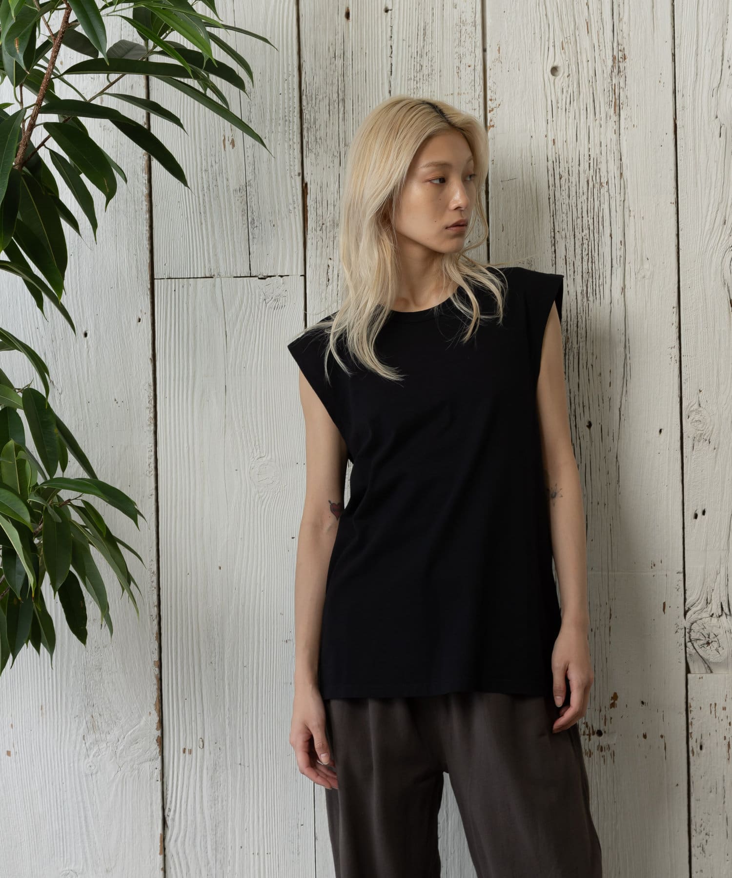 袖口略微隱藏在肩部,寬鬆的版型可作為單件穿著。