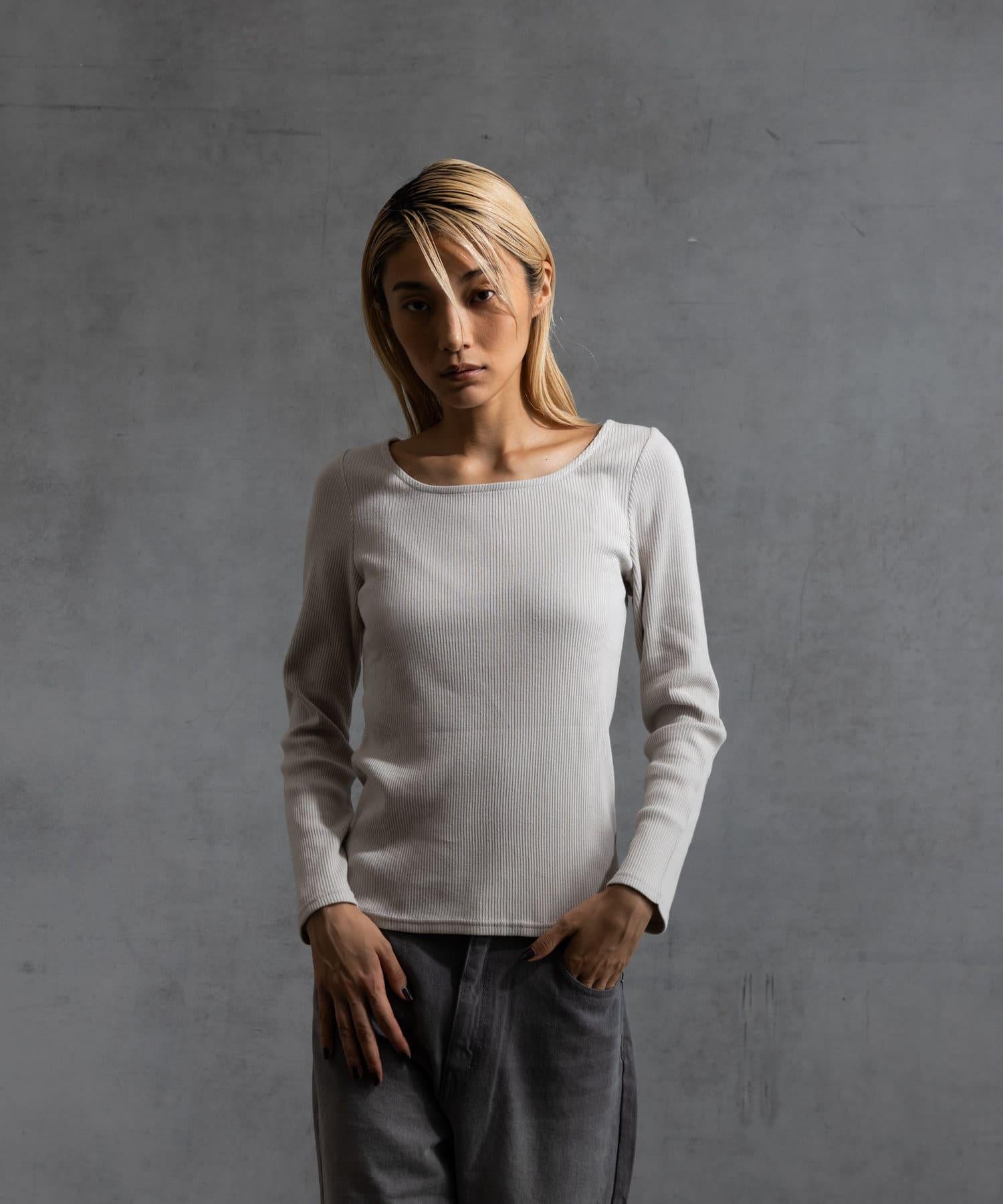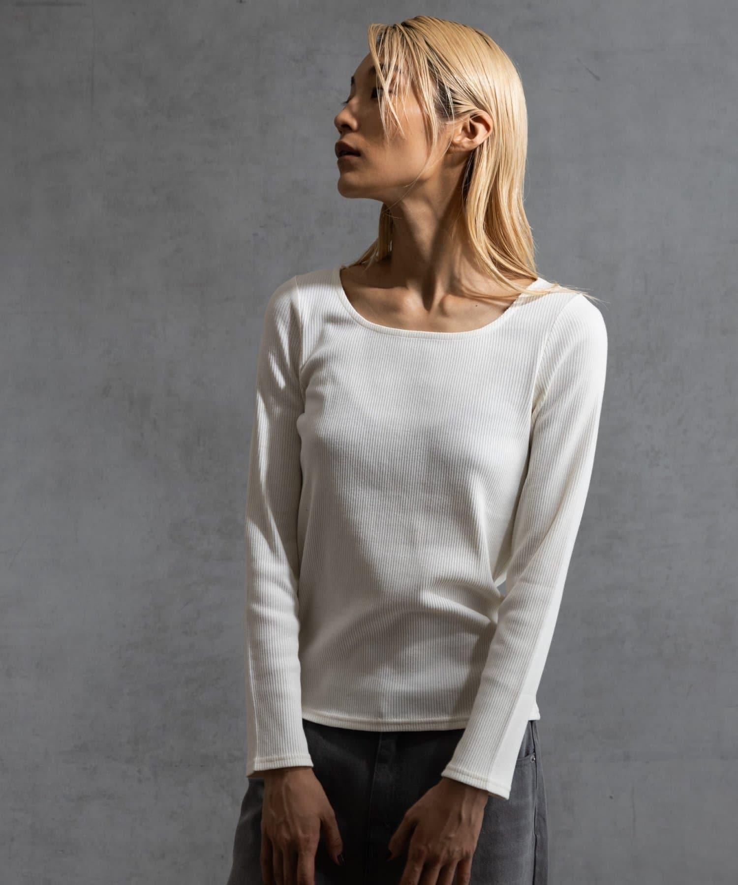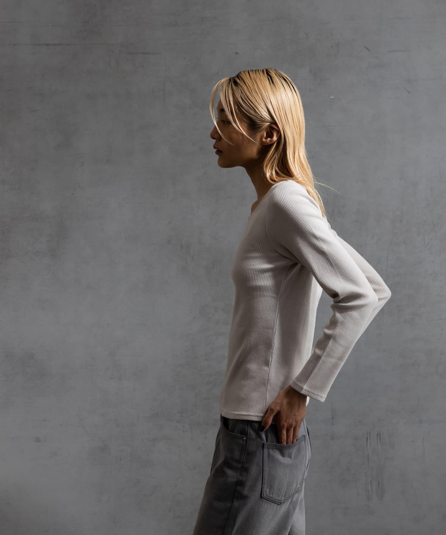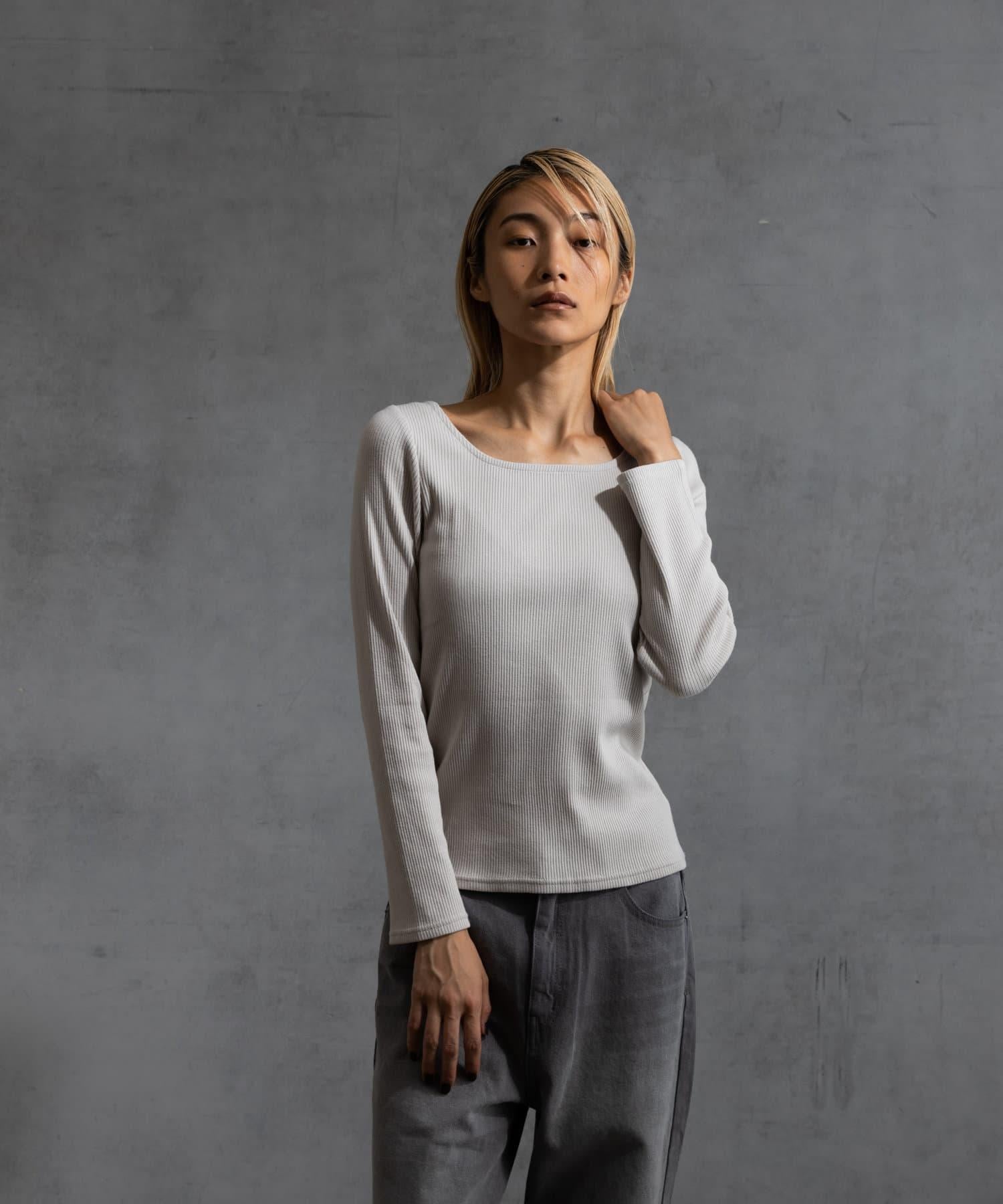 這款方領 T 採用柔軟的紗線編織而成,呈現出微妙的光澤,非常優雅。