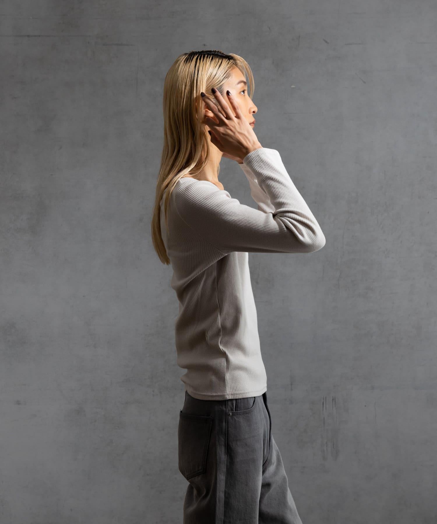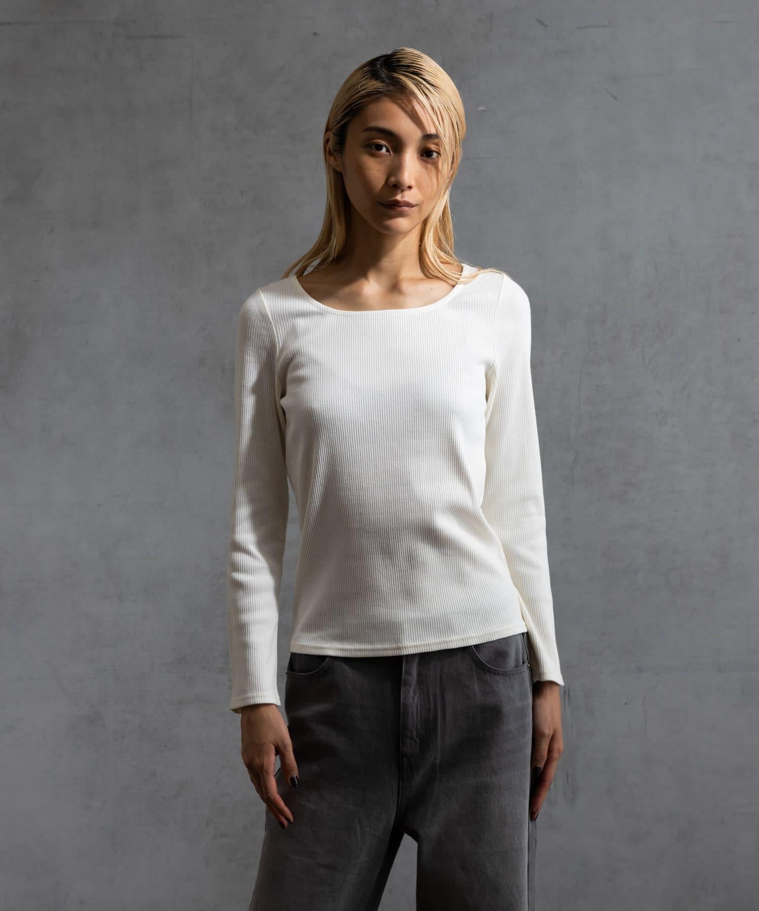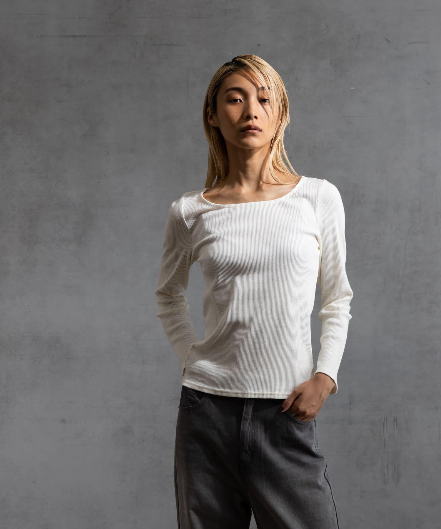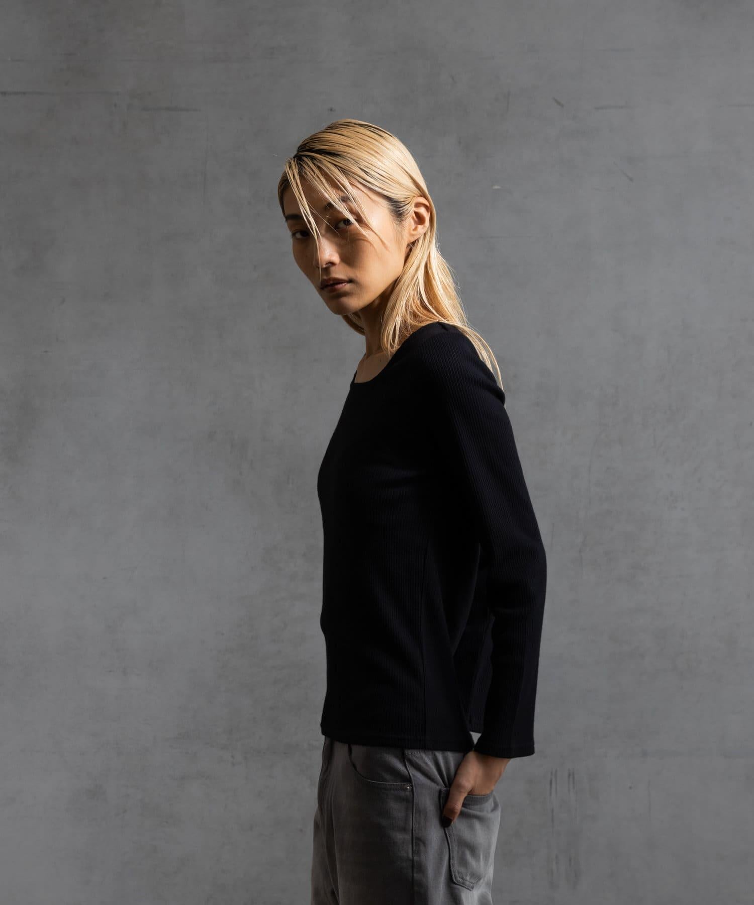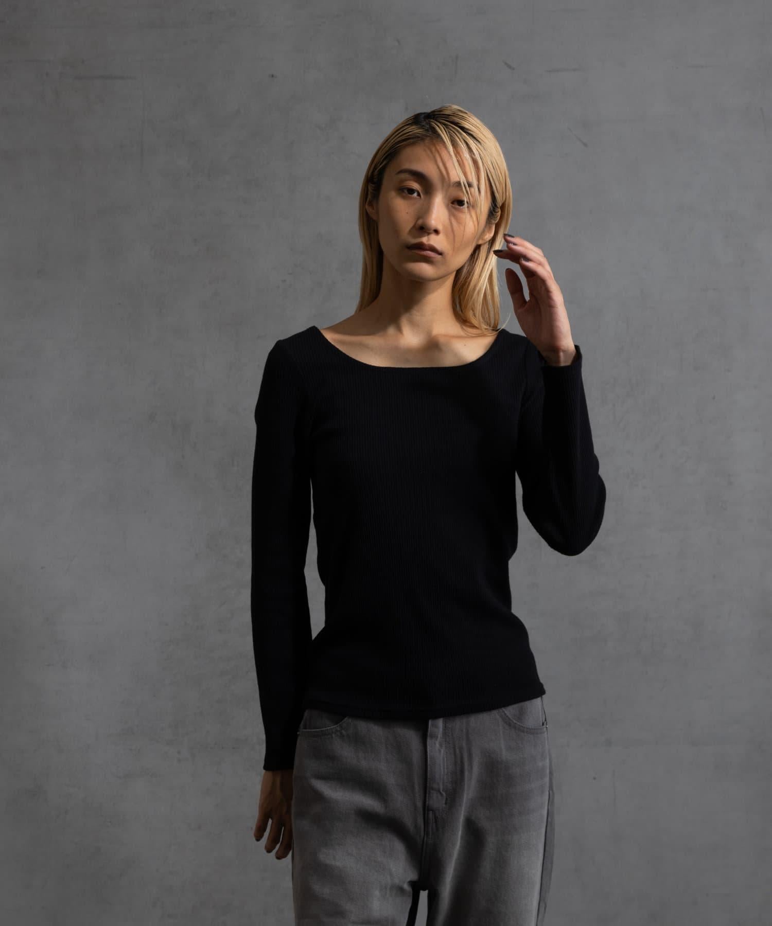 這款方領 T 採用柔軟的紗線編織而成,呈現出微妙的光澤,非常優雅。