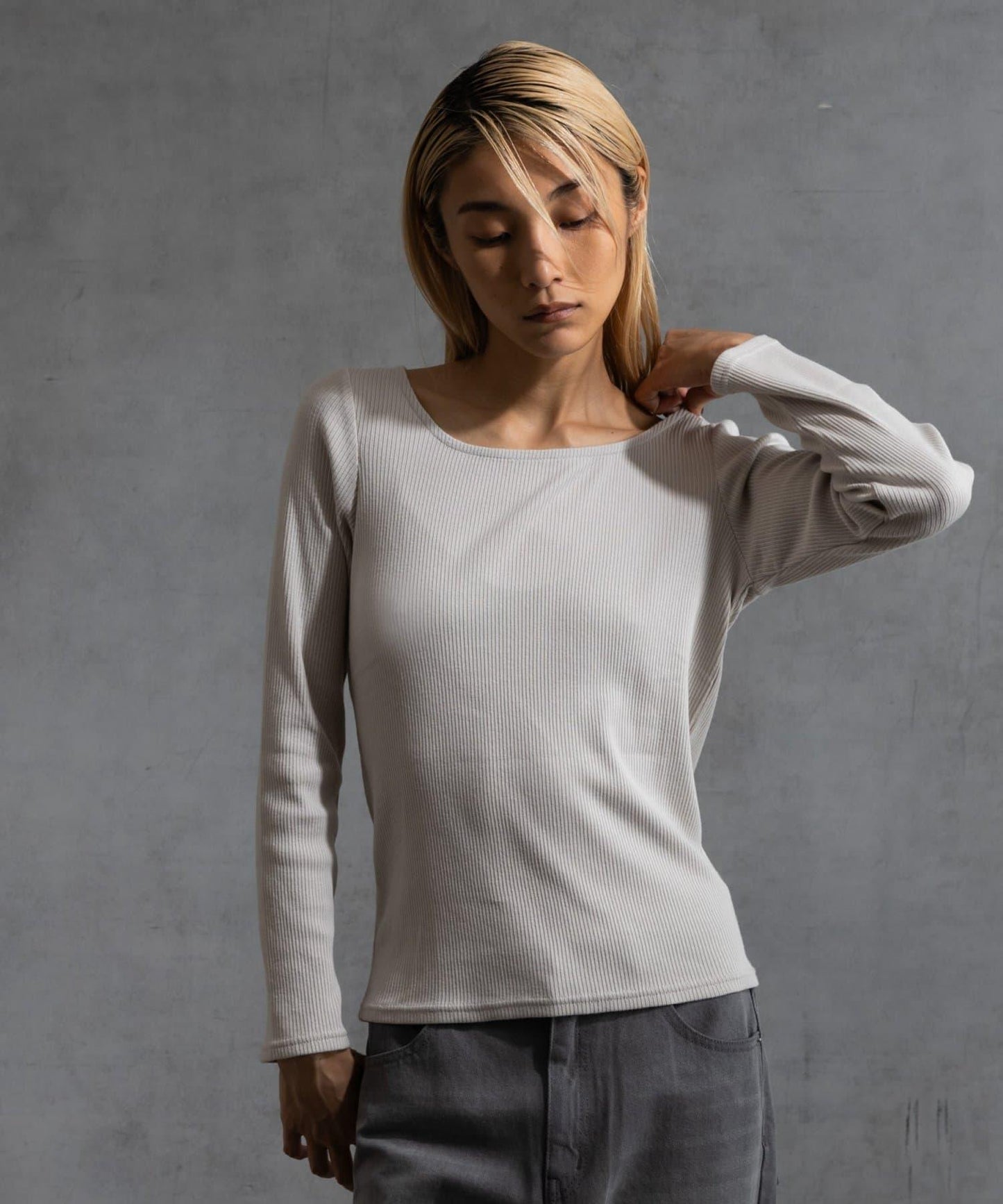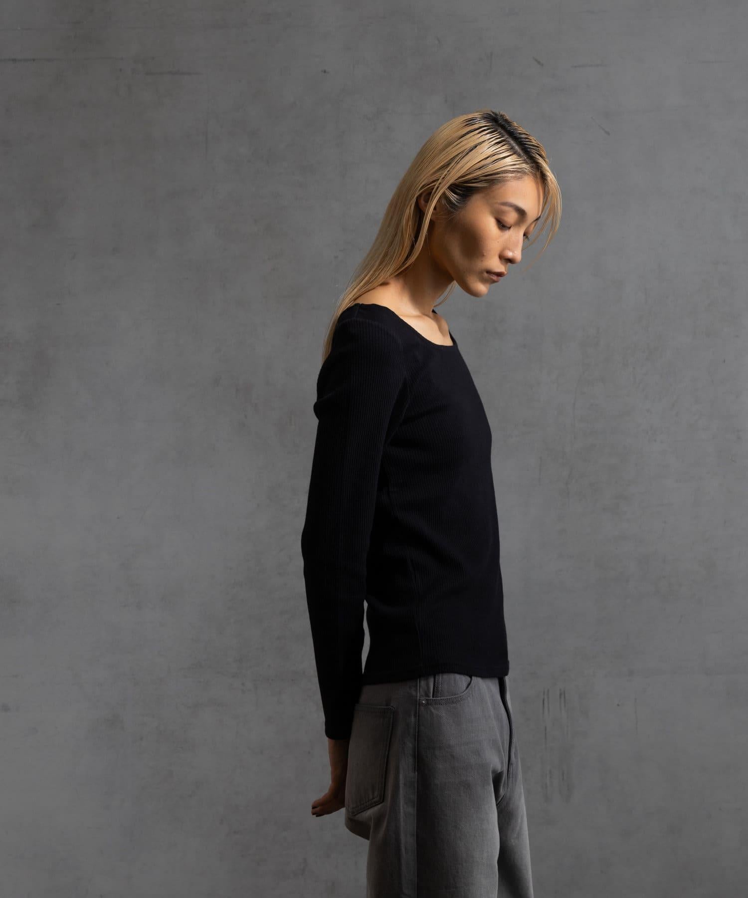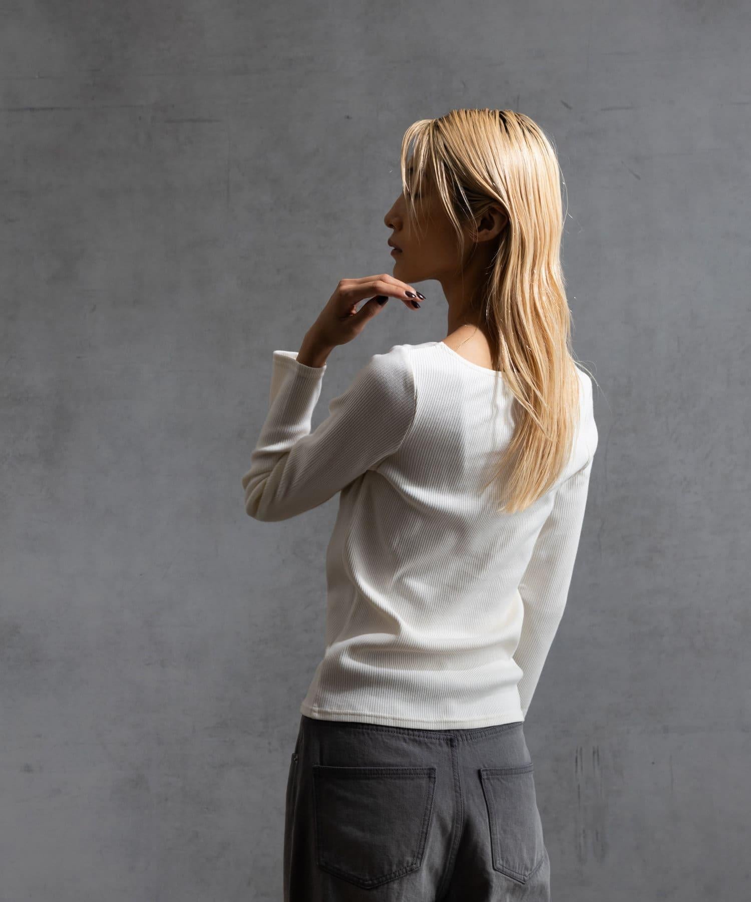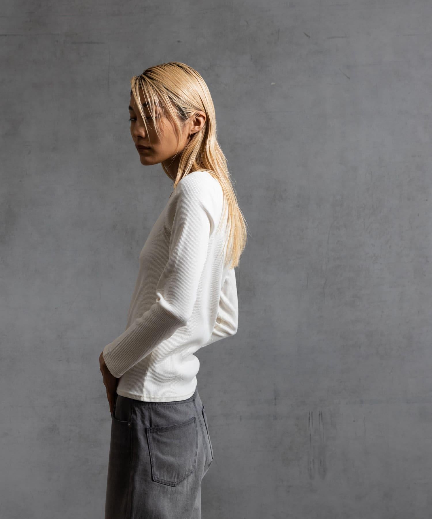 這款方領 T 採用柔軟的紗線編織而成,呈現出微妙的光澤,非常優雅。
