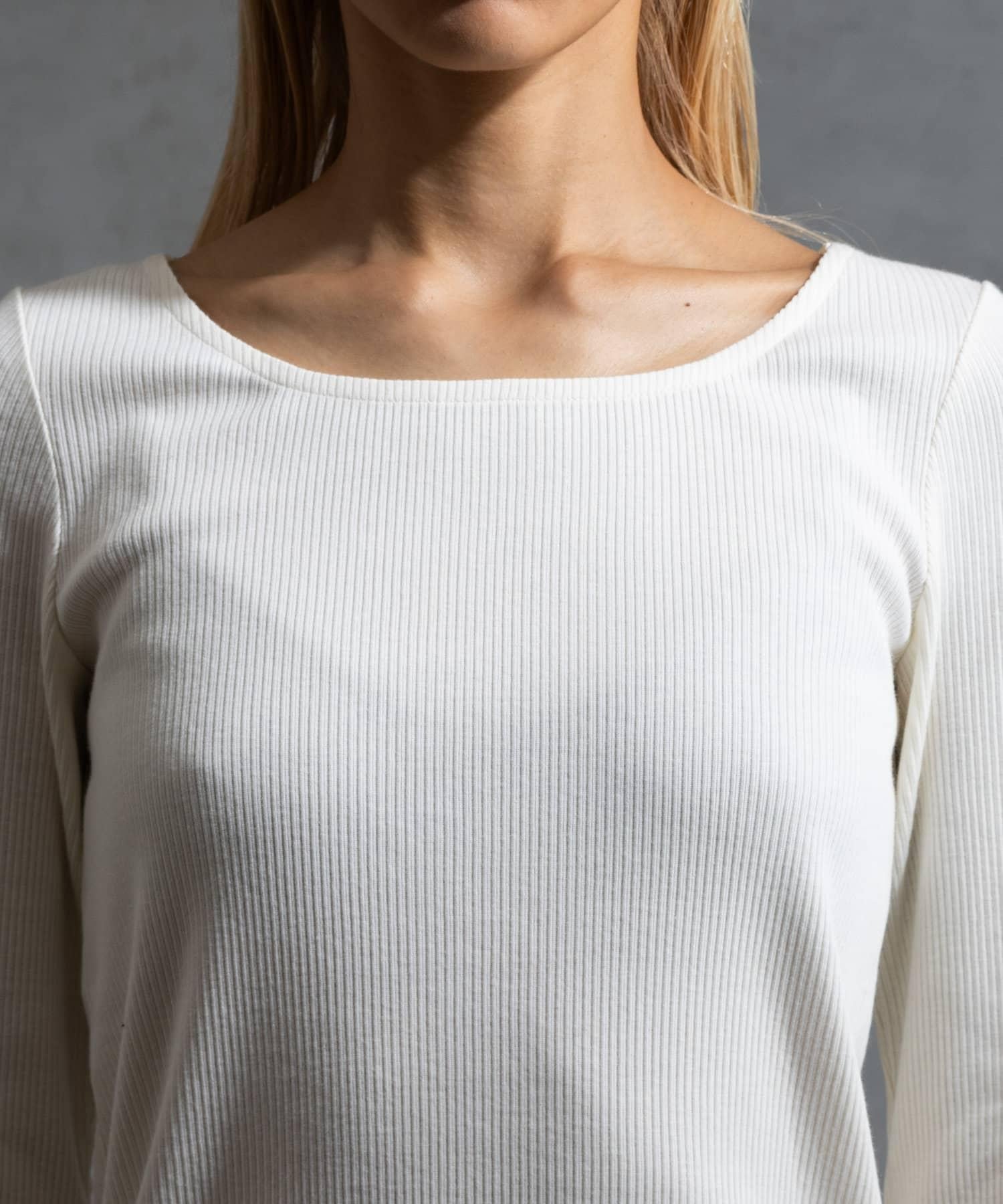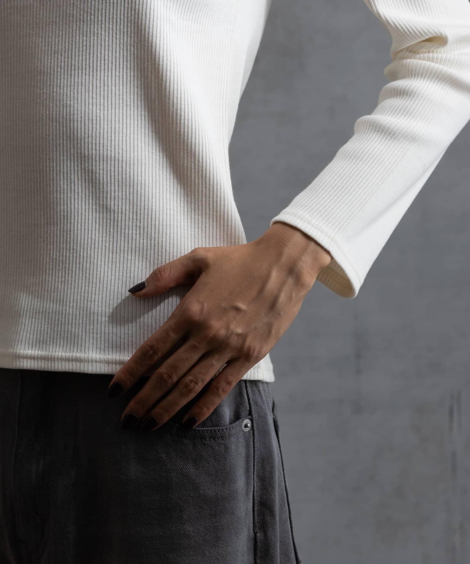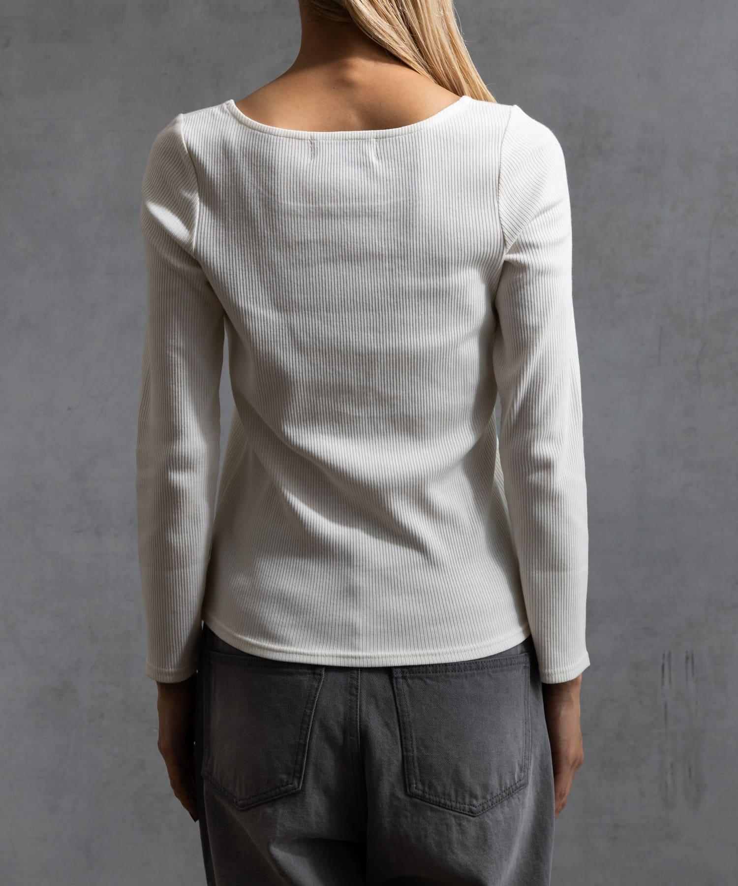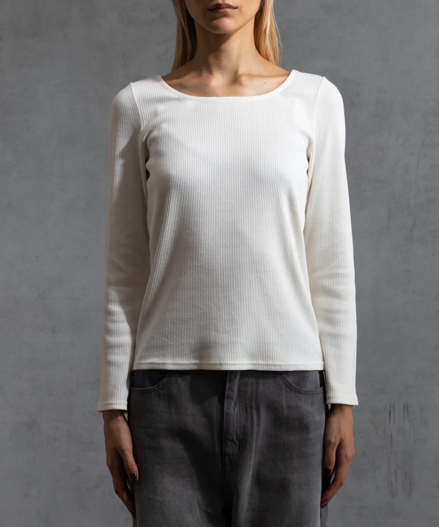 這款方領 T 採用柔軟的紗線編織而成,呈現出微妙的光澤,非常優雅。