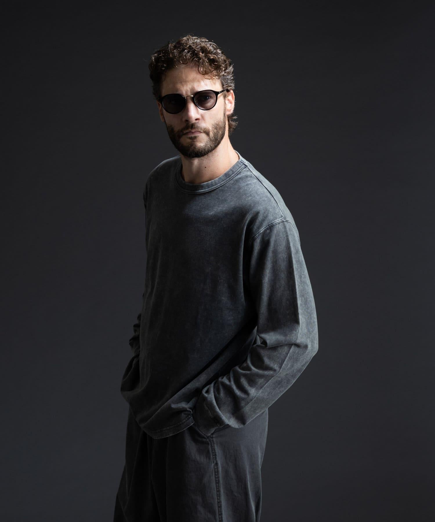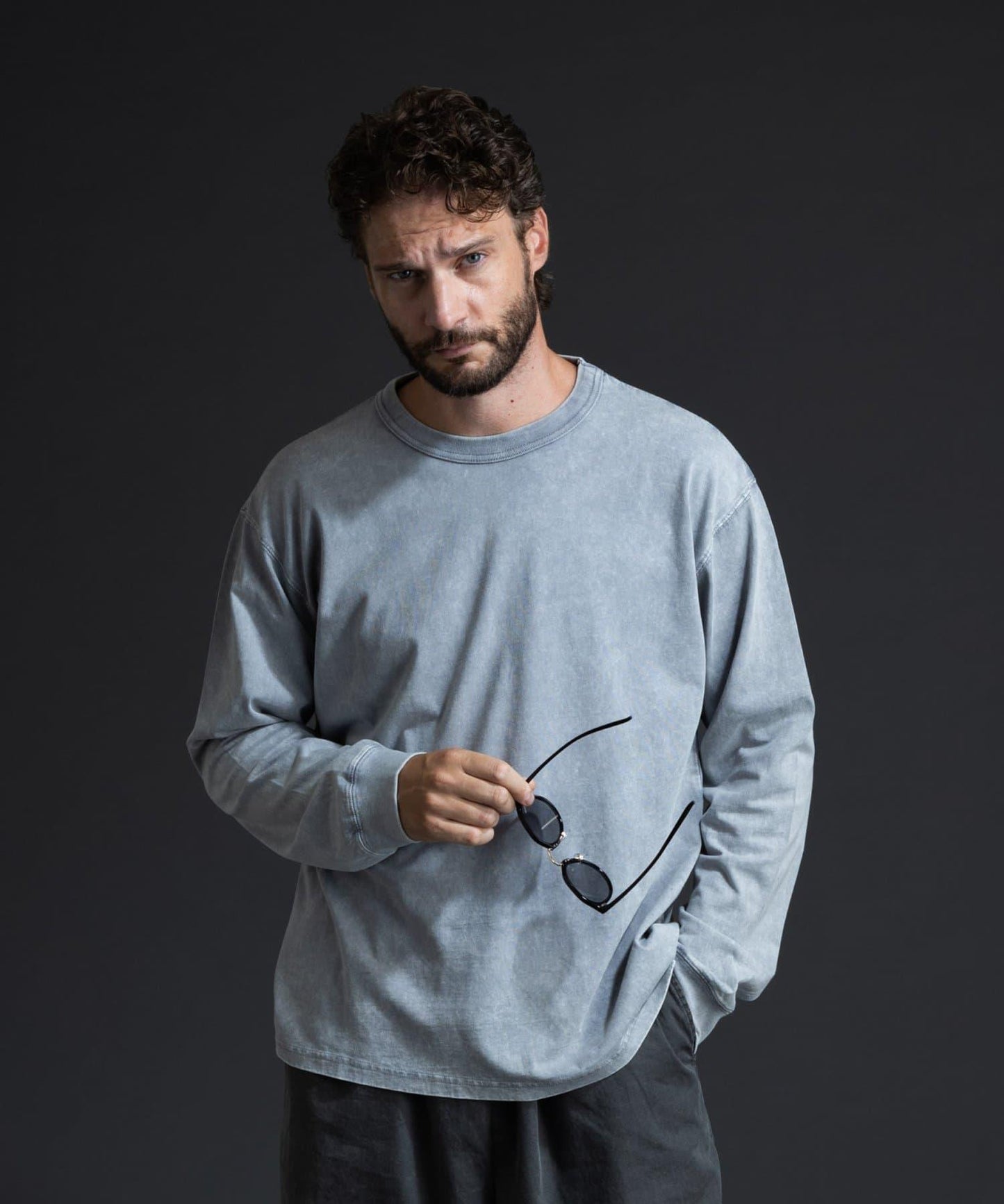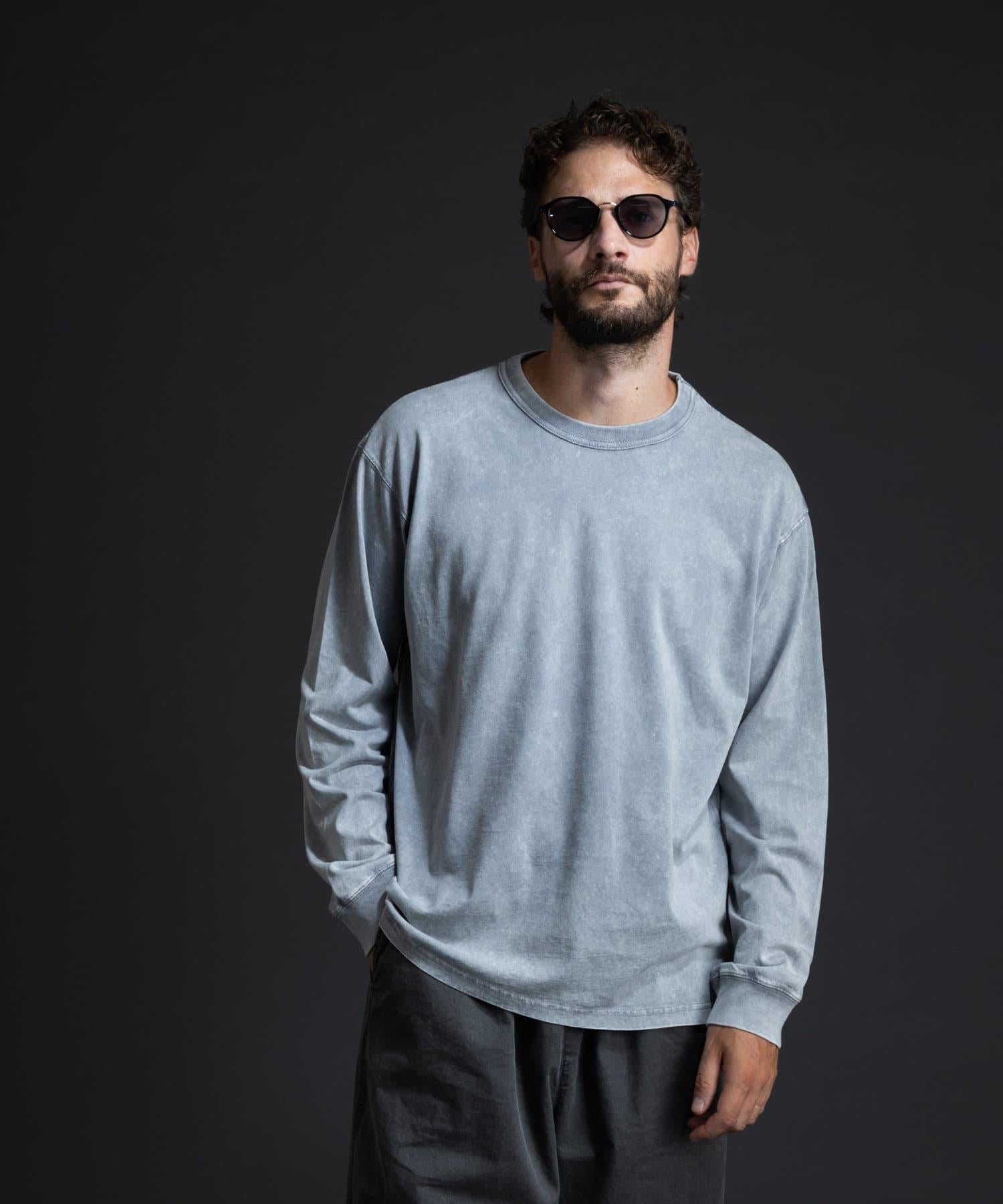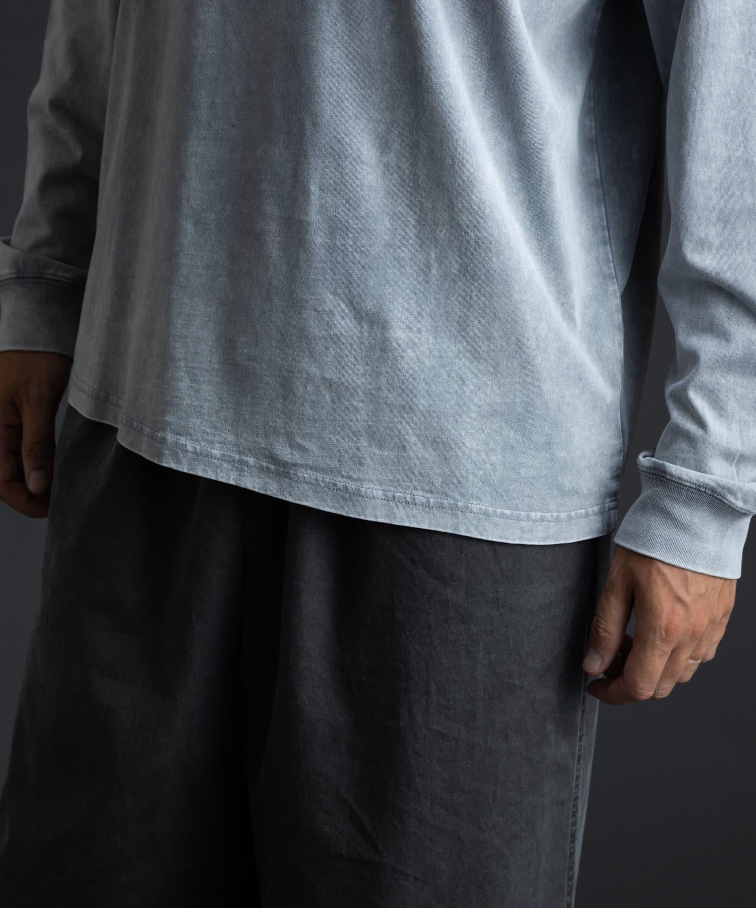 經過硫化染色和粉末處理後,T恤呈現出精緻的褪色和鄉村風格。
