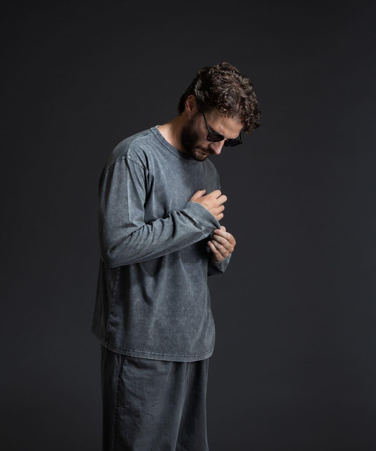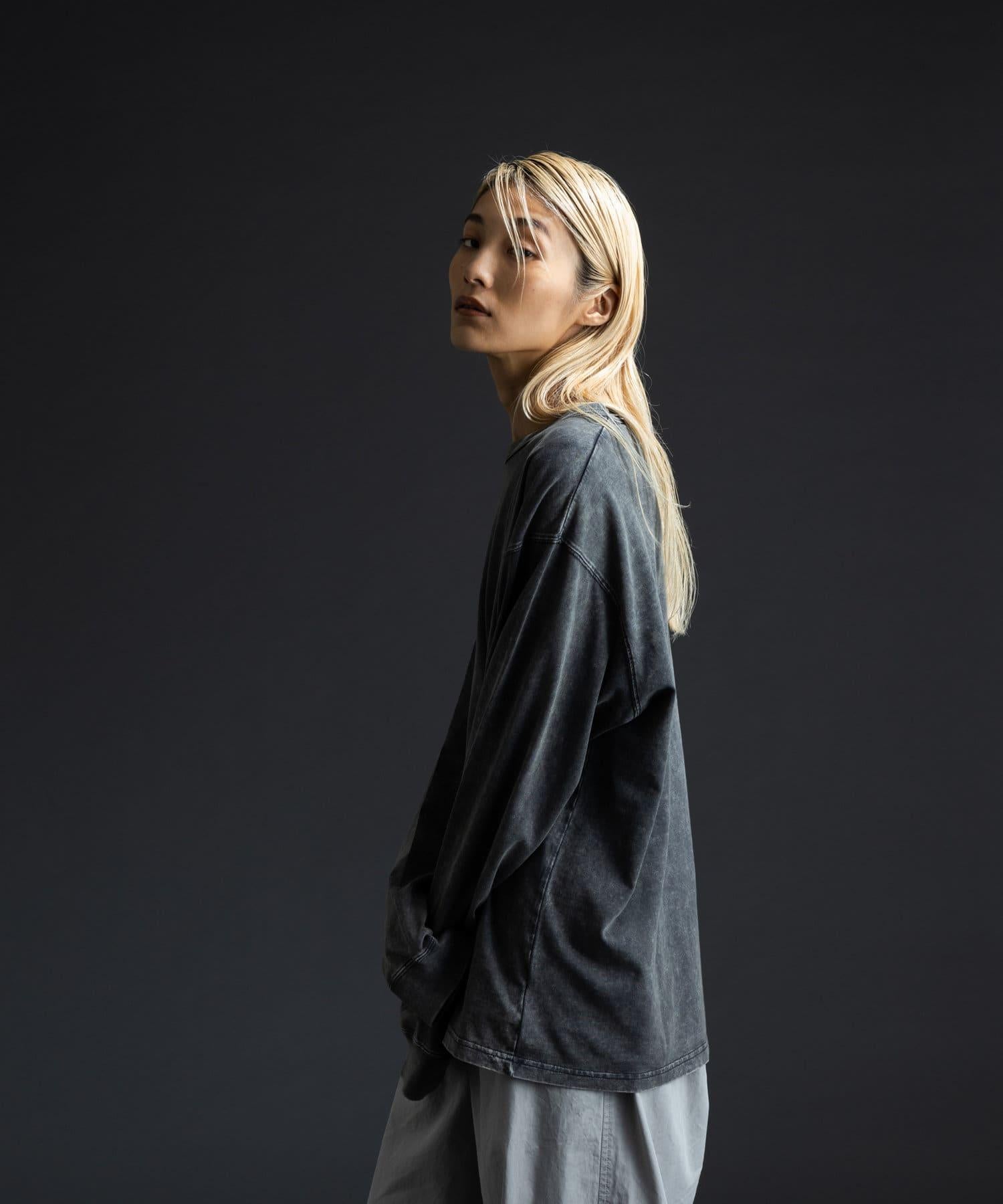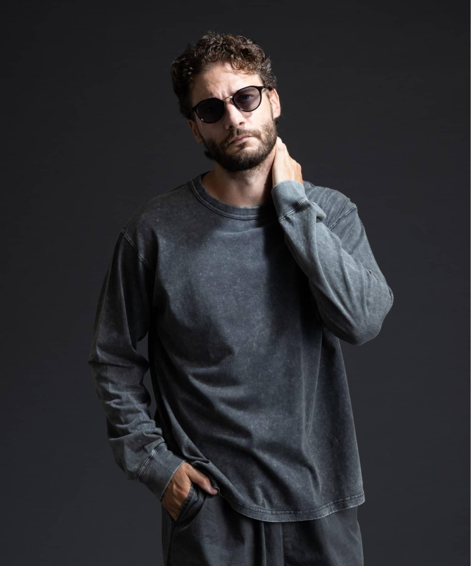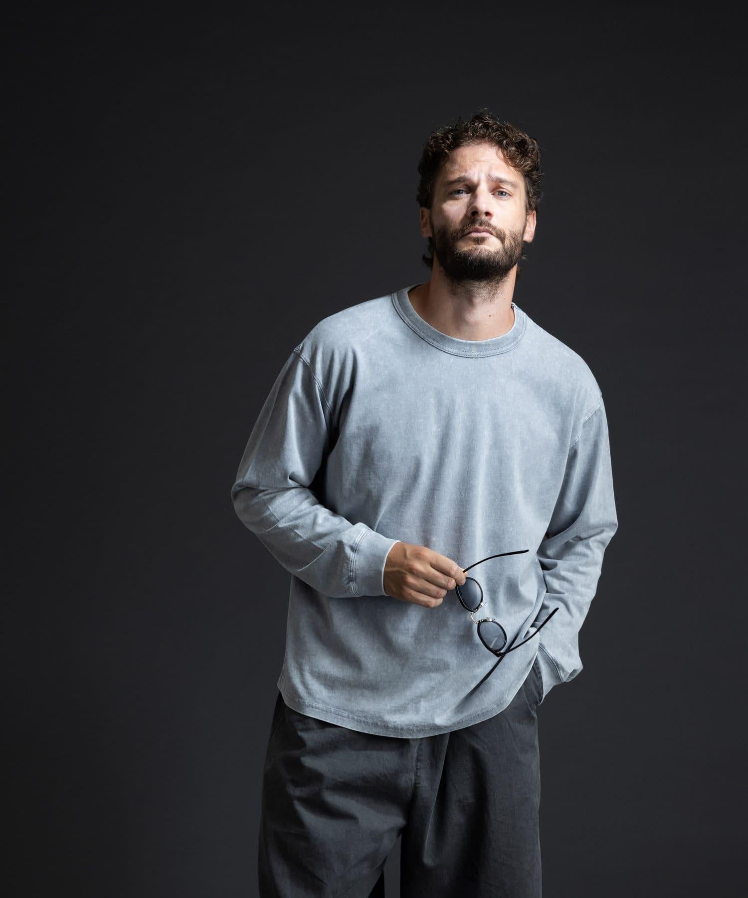 經過硫化染色和粉末處理後,T恤呈現出精緻的褪色和鄉村風格。