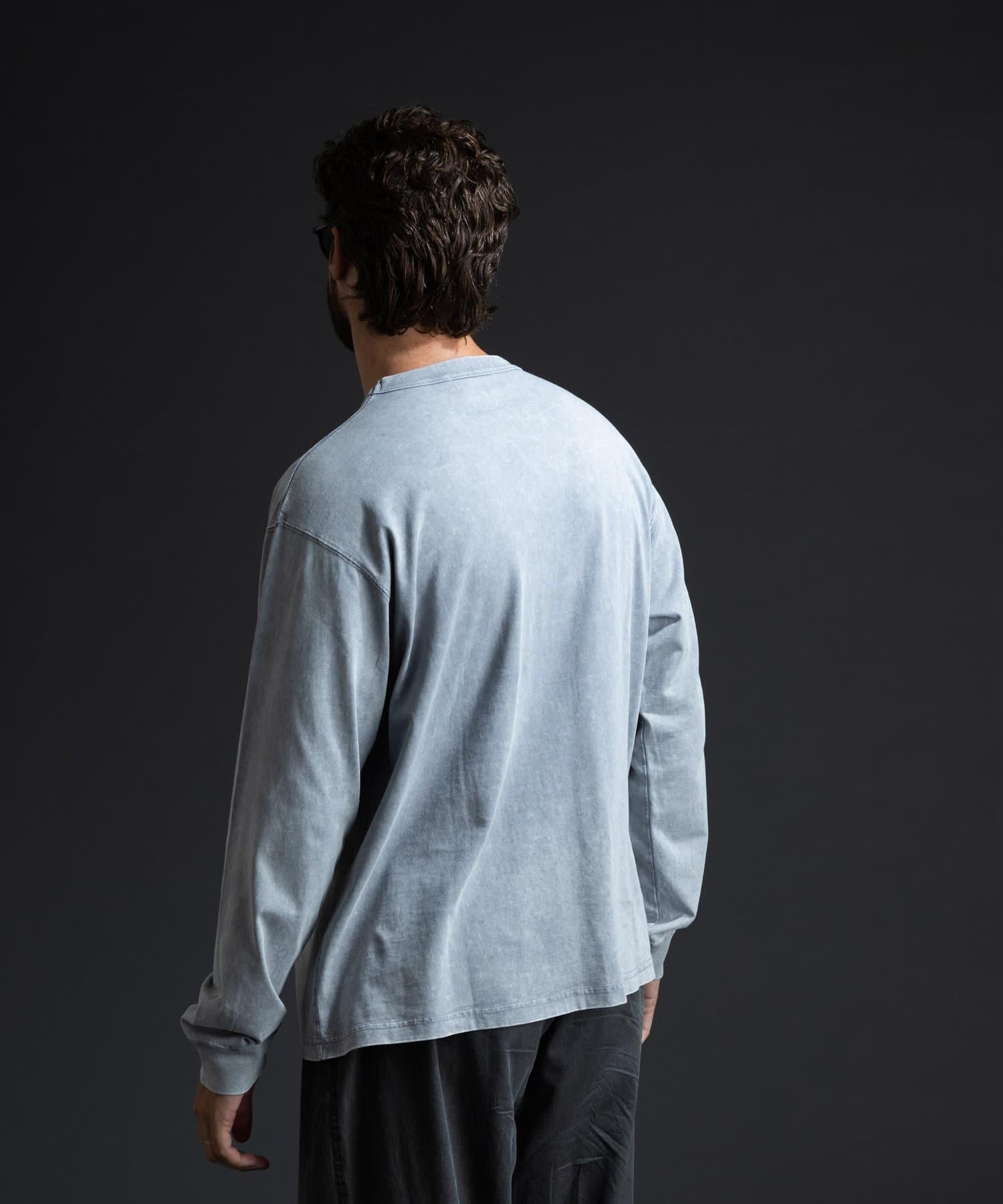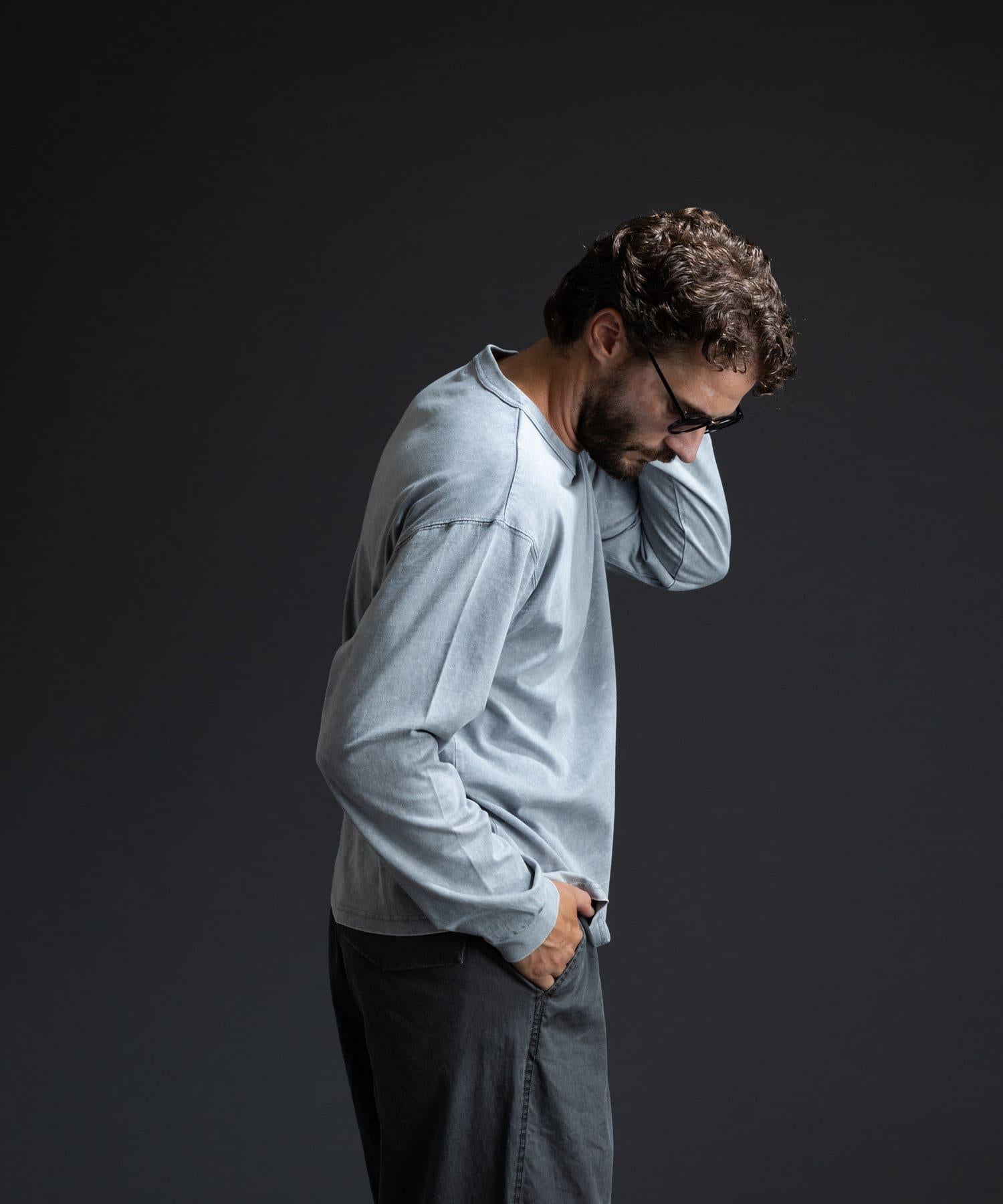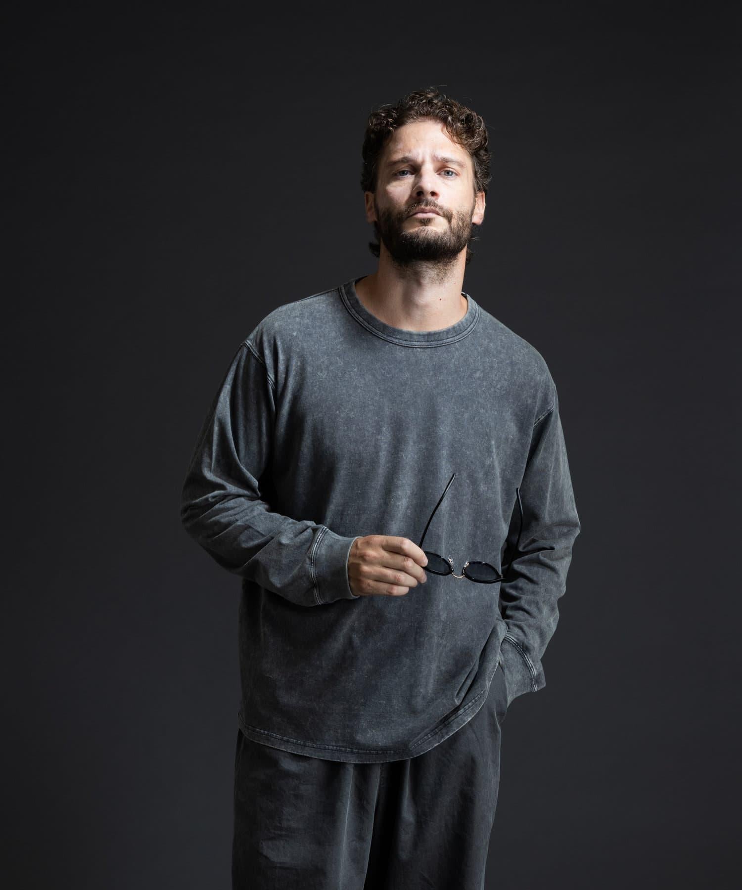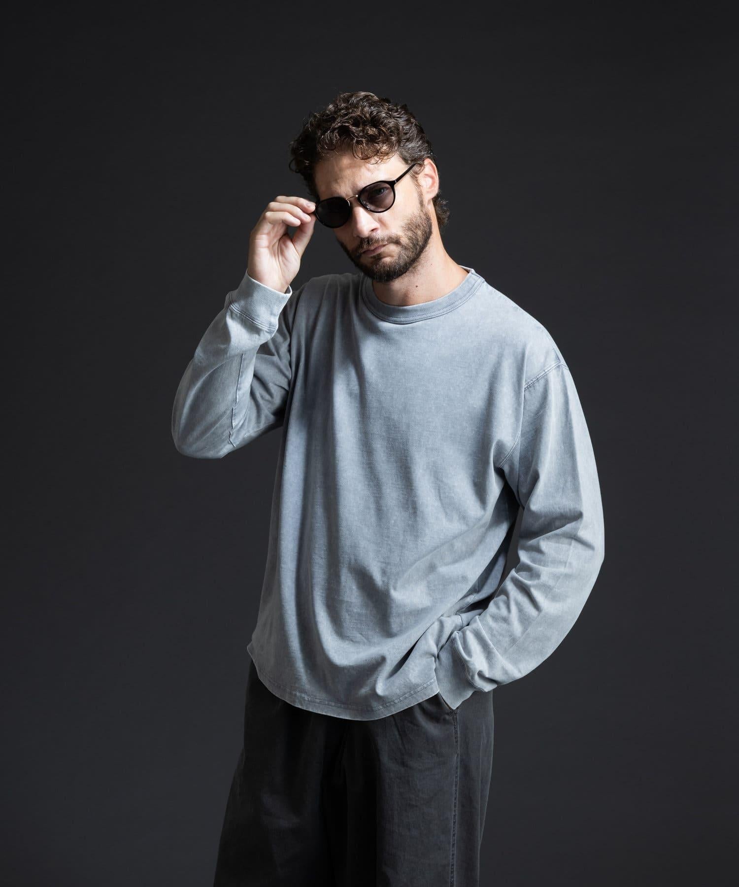 經過硫化染色和粉末處理後,T恤呈現出精緻的褪色和鄉村風格。