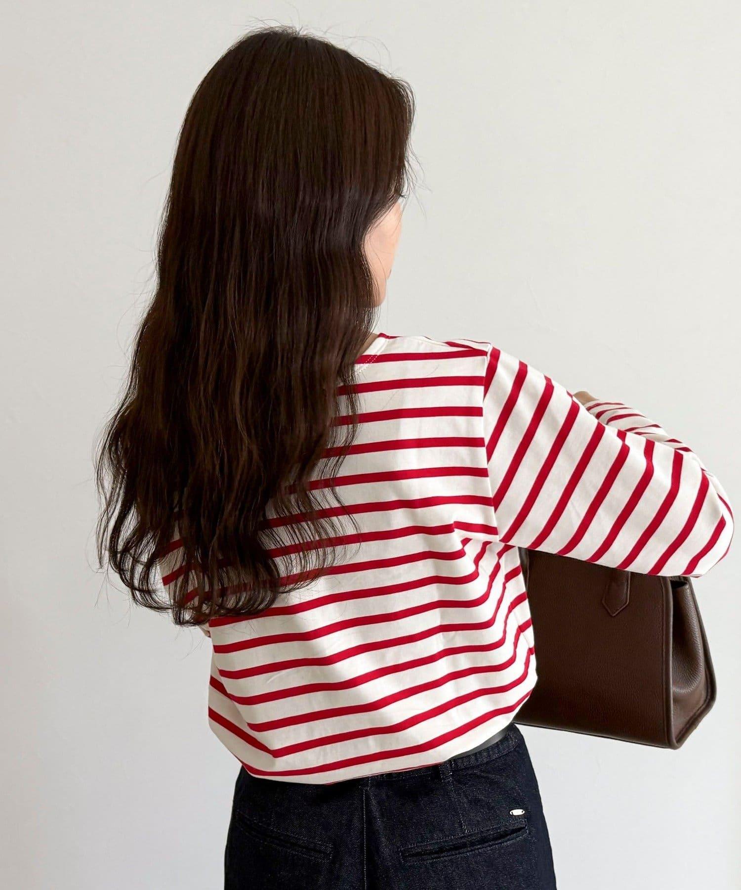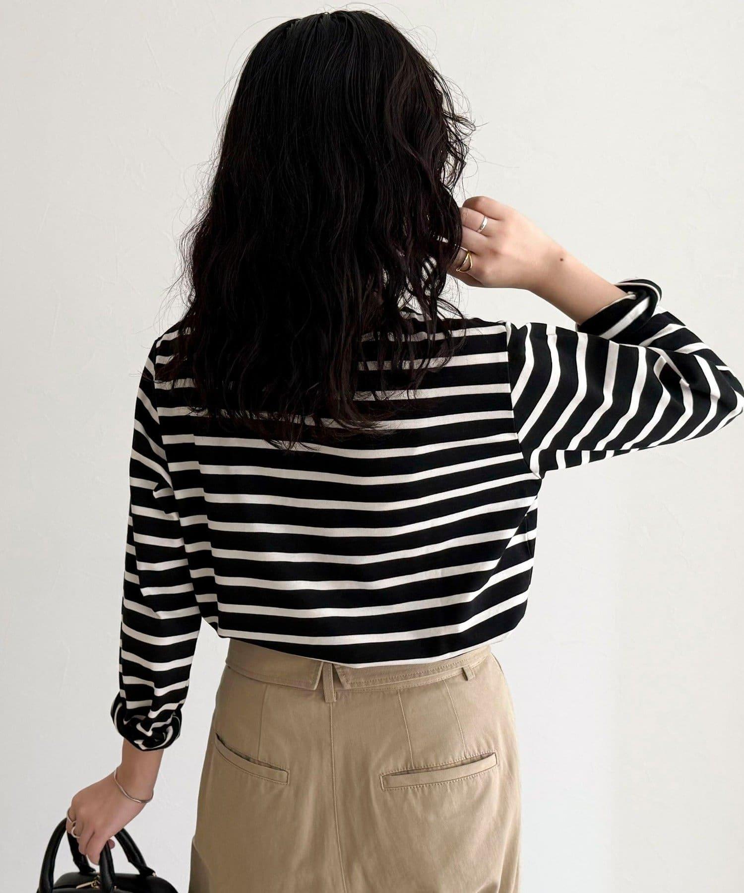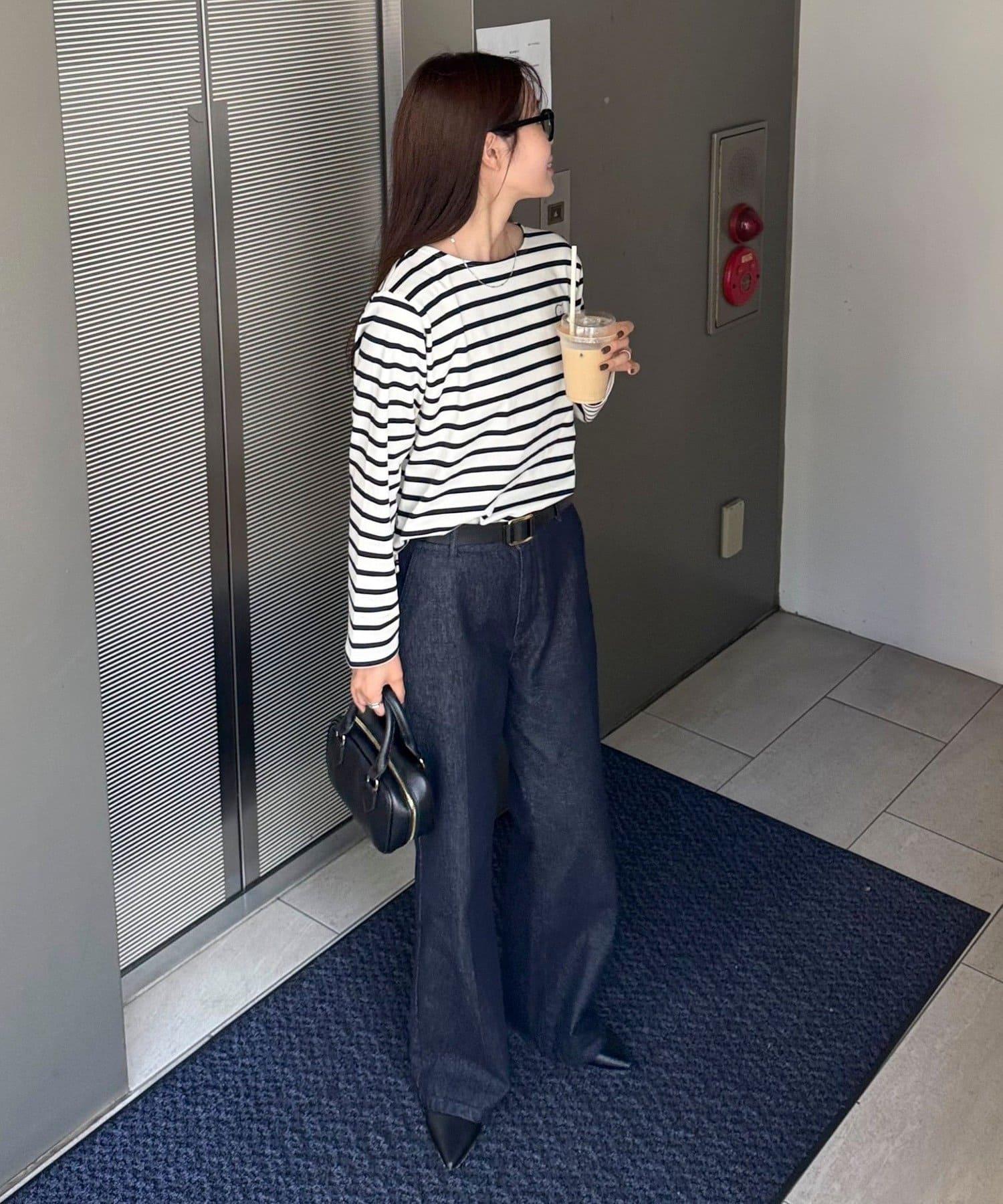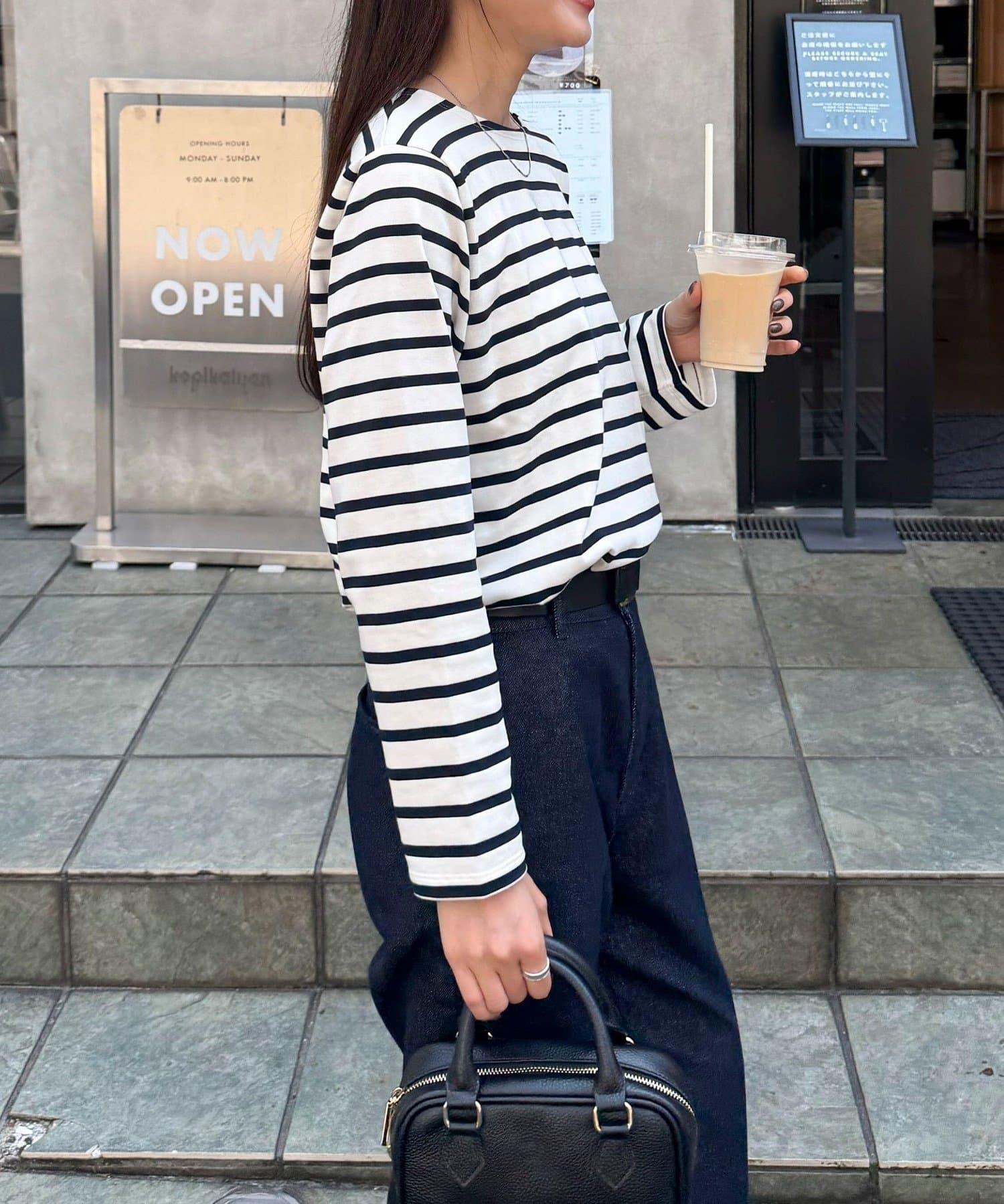 這是一款條紋 T 恤,不會過於隨意,搭配出美麗的風格。
