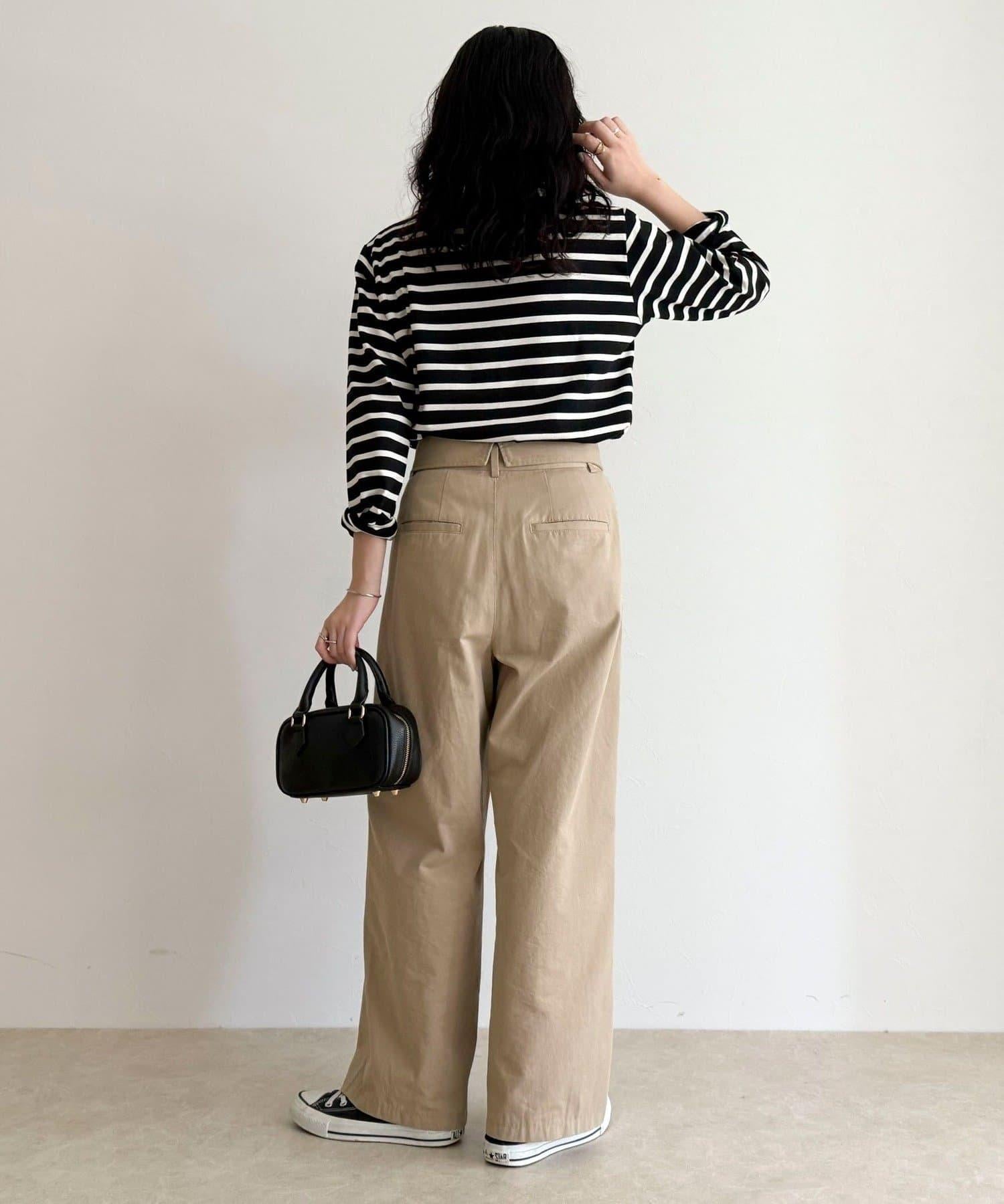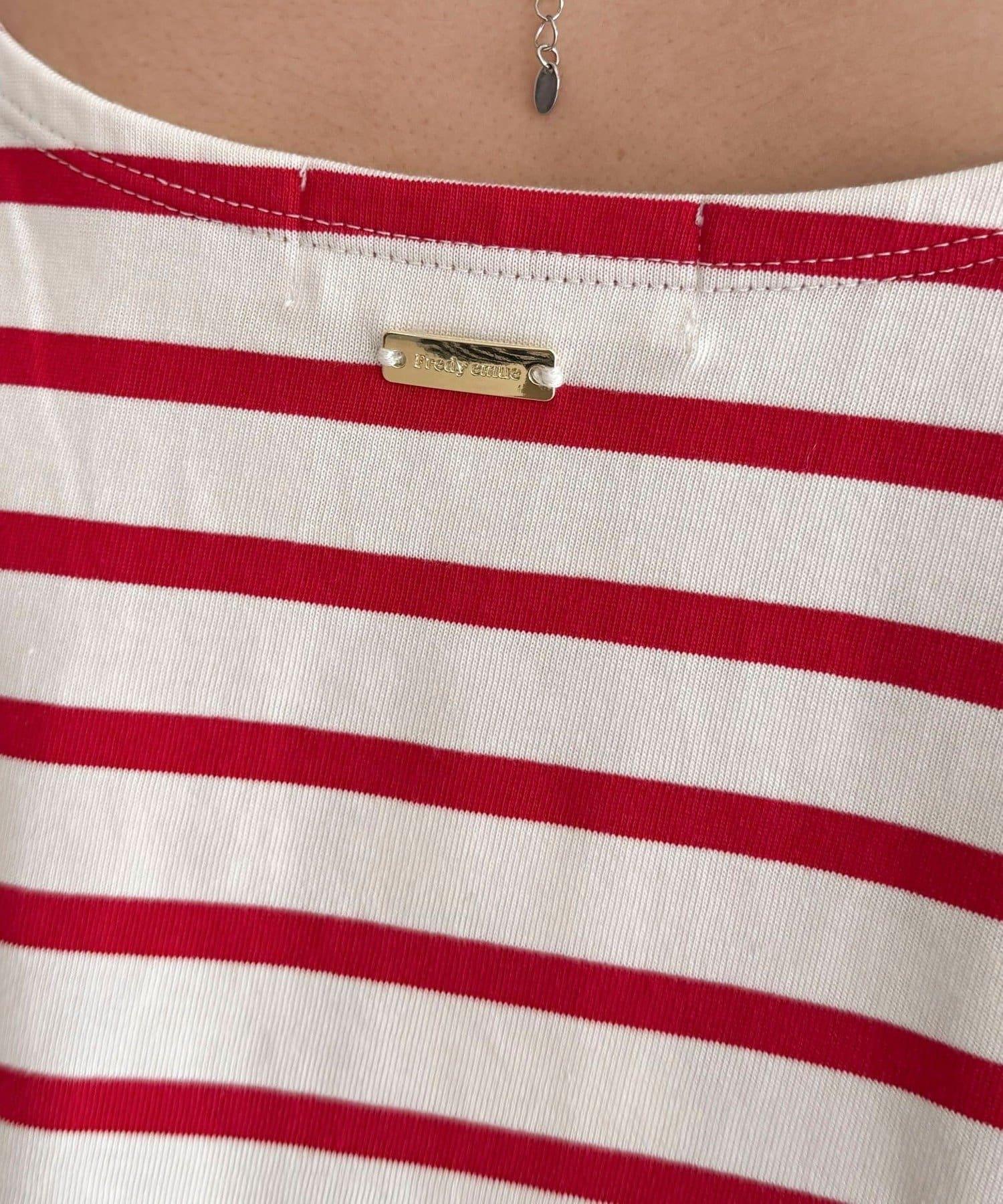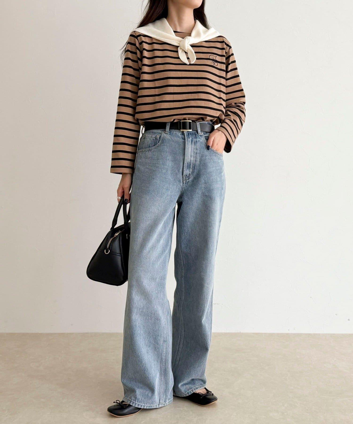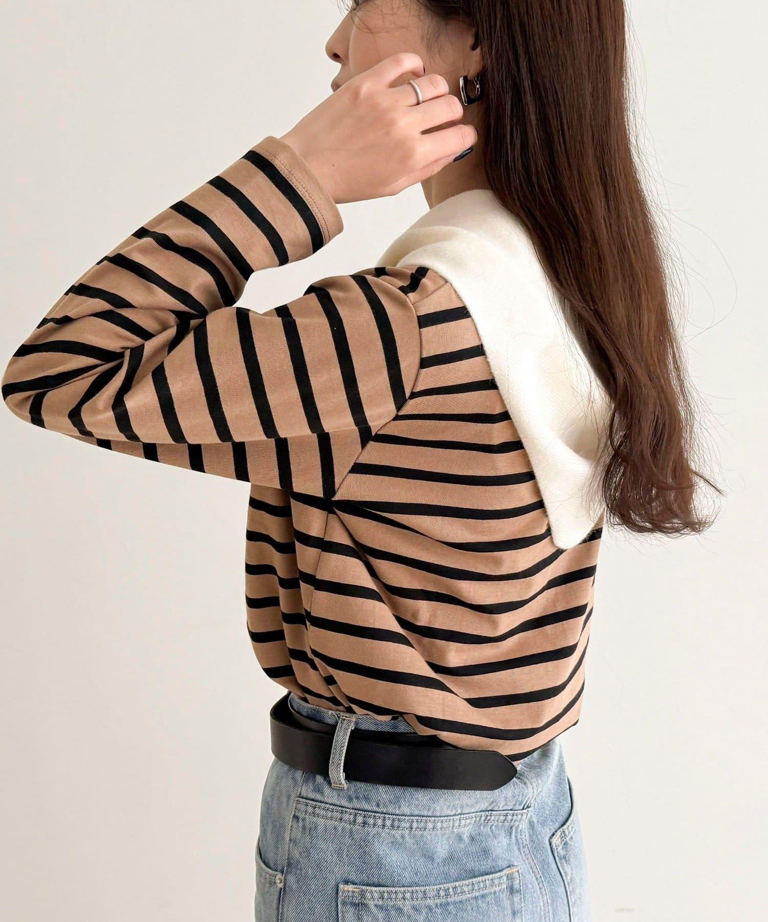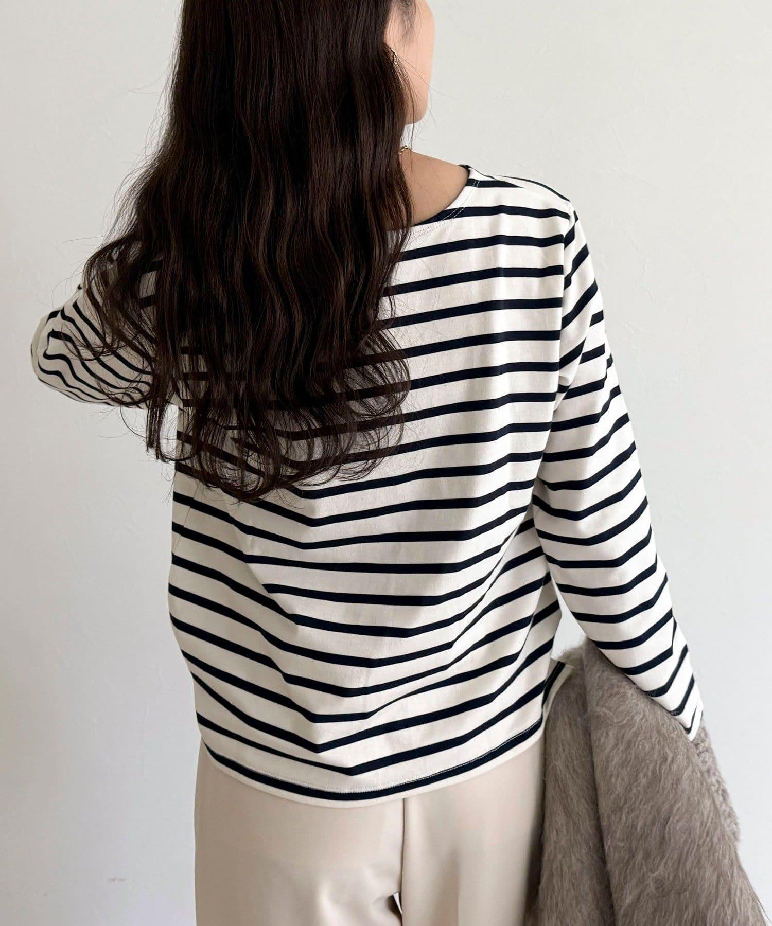 這是一款條紋 T 恤,不會過於隨意,搭配出美麗的風格。