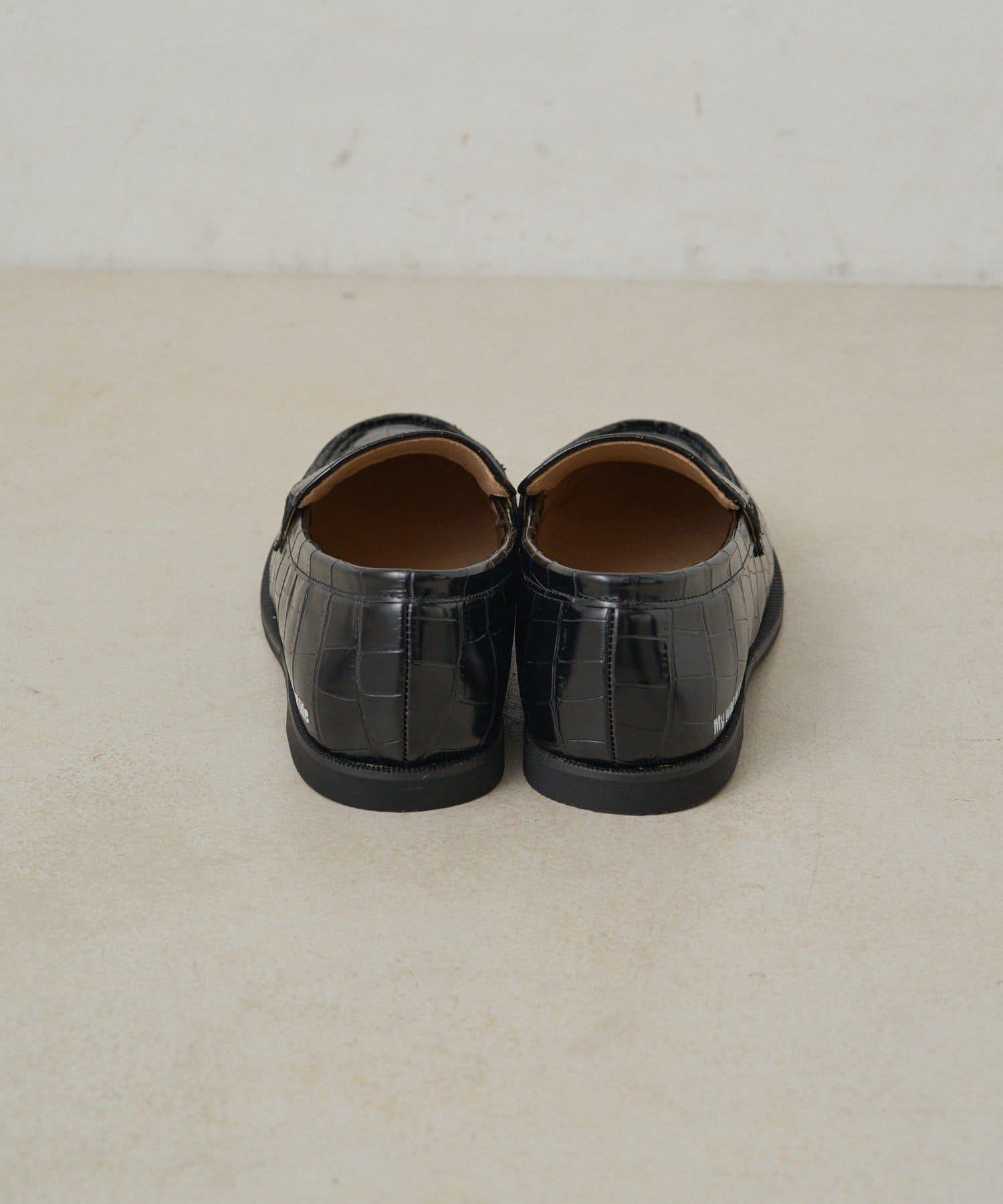 基本款式的硬幣休閒鞋,鞋跟一側印有徽標圖案。