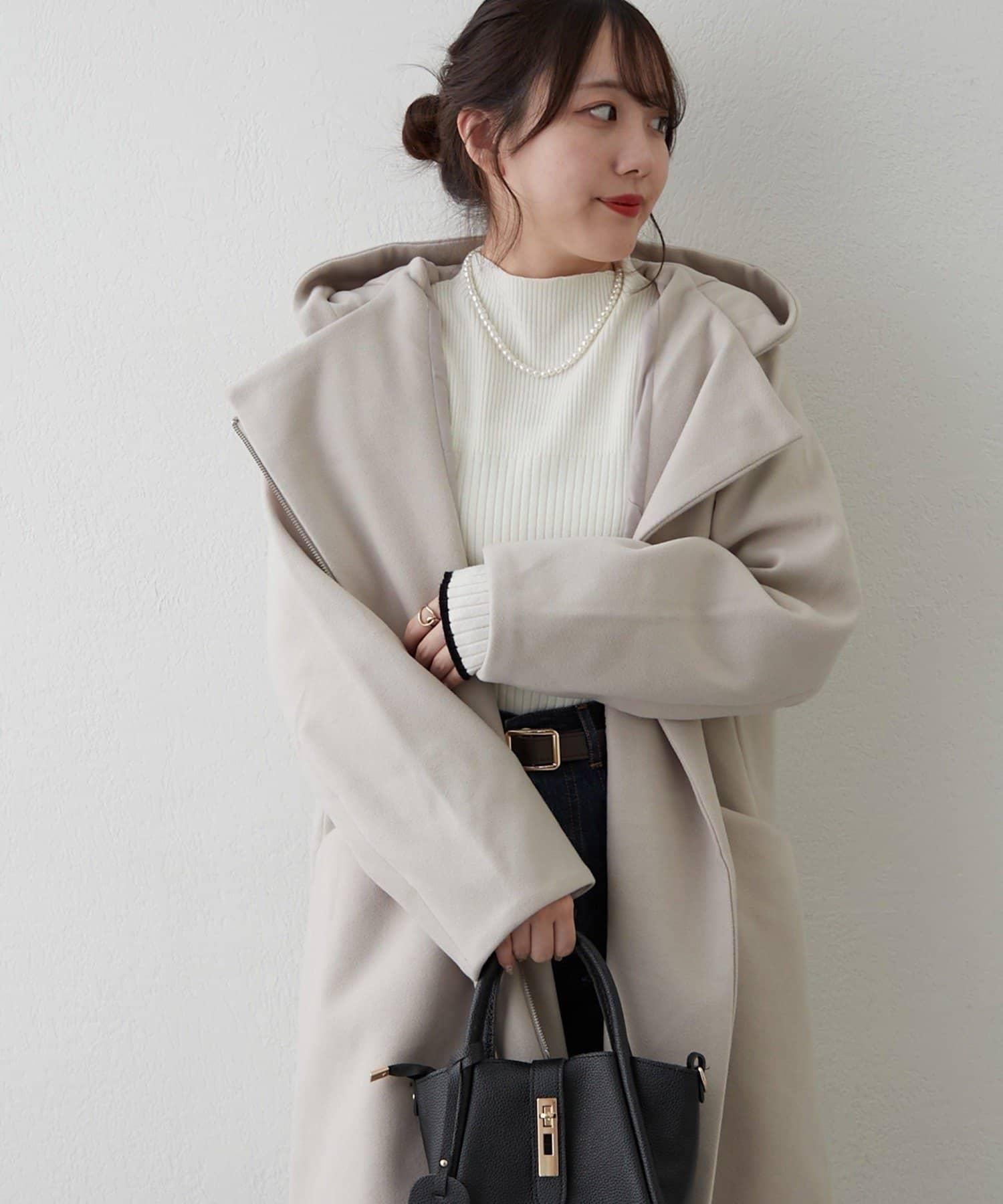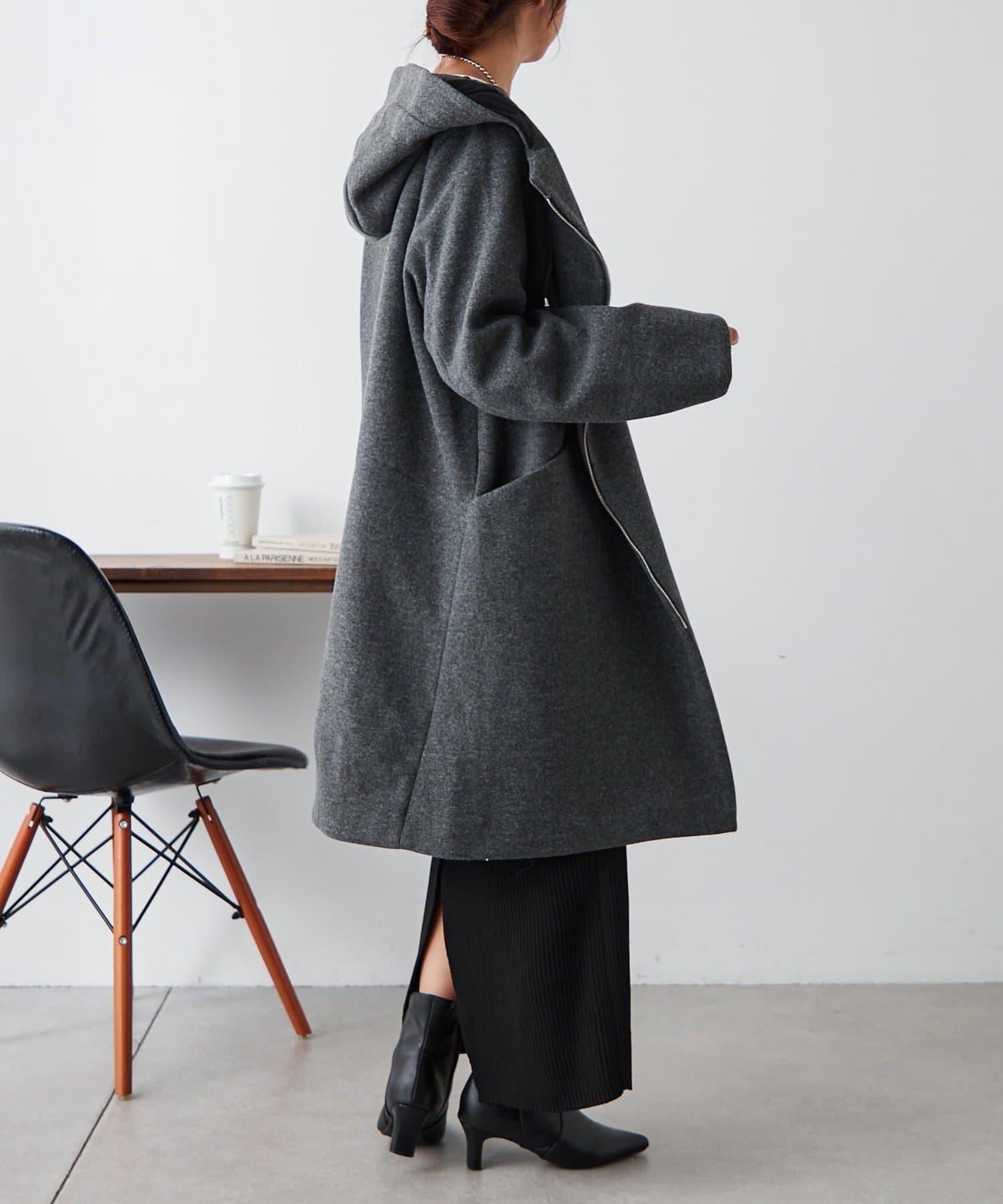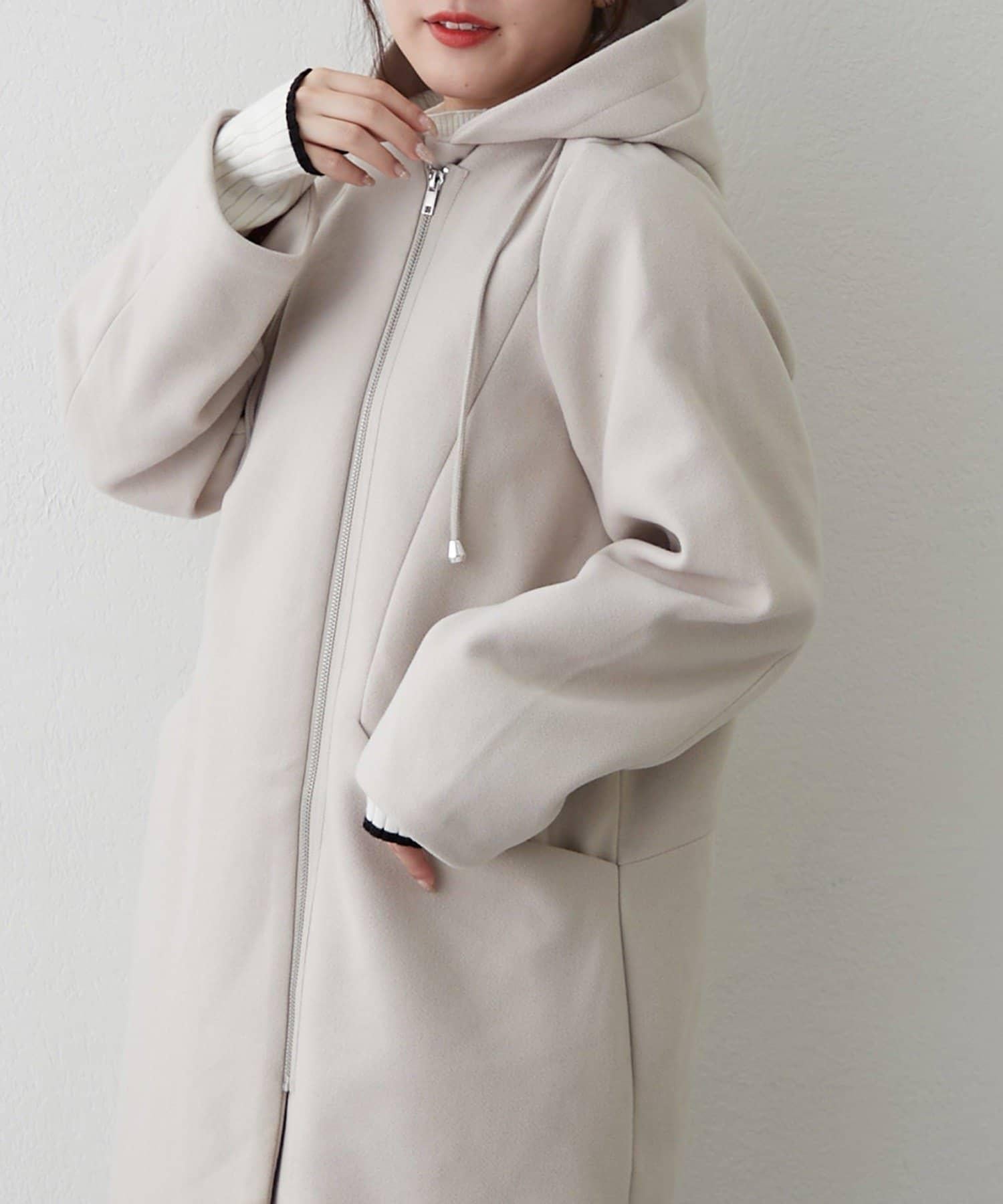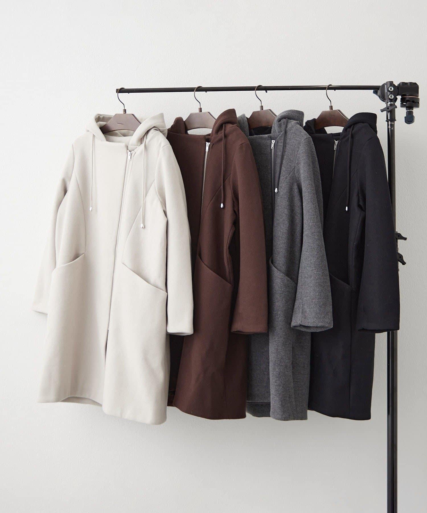 簡約設計連帽拉鍊大衣