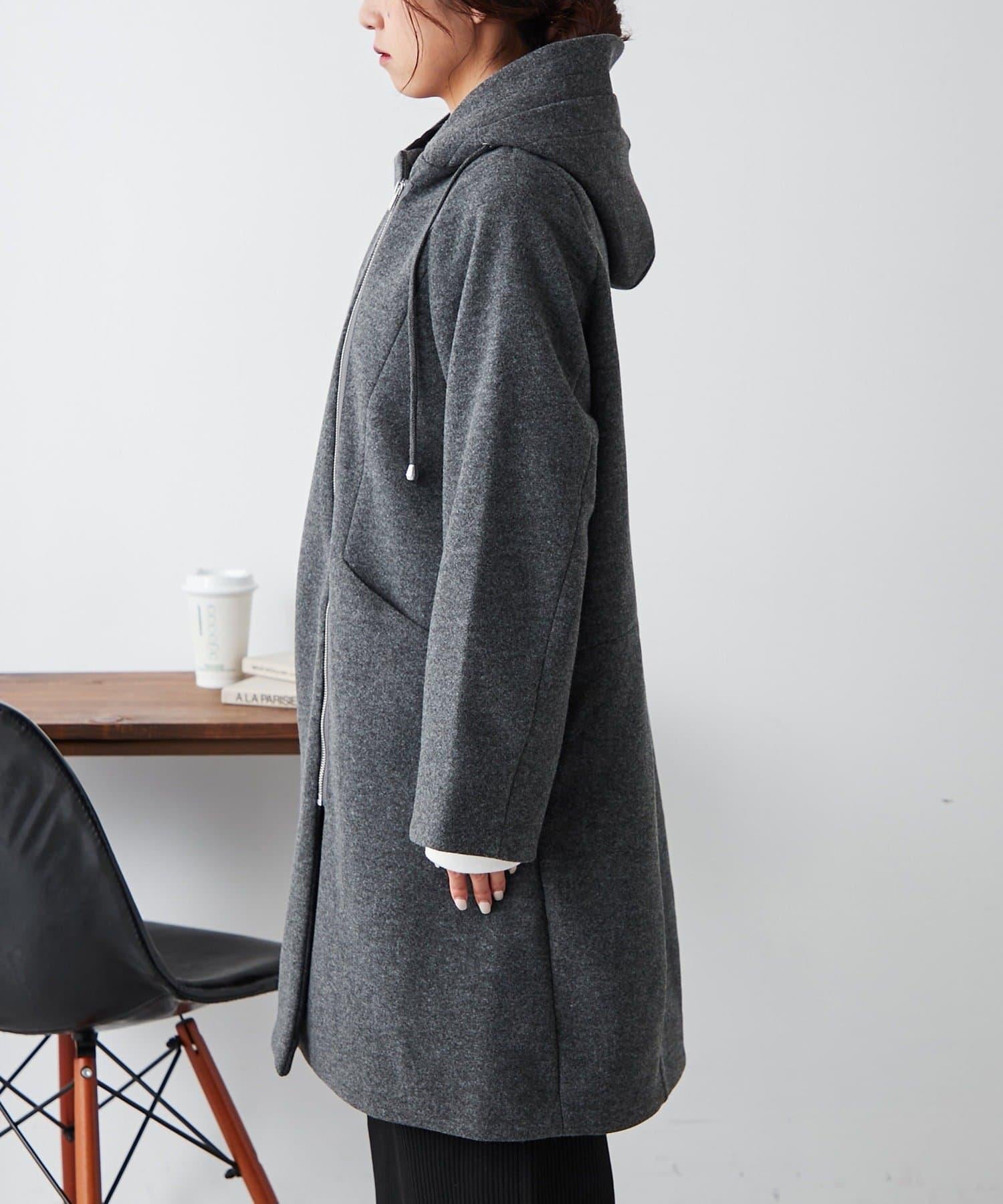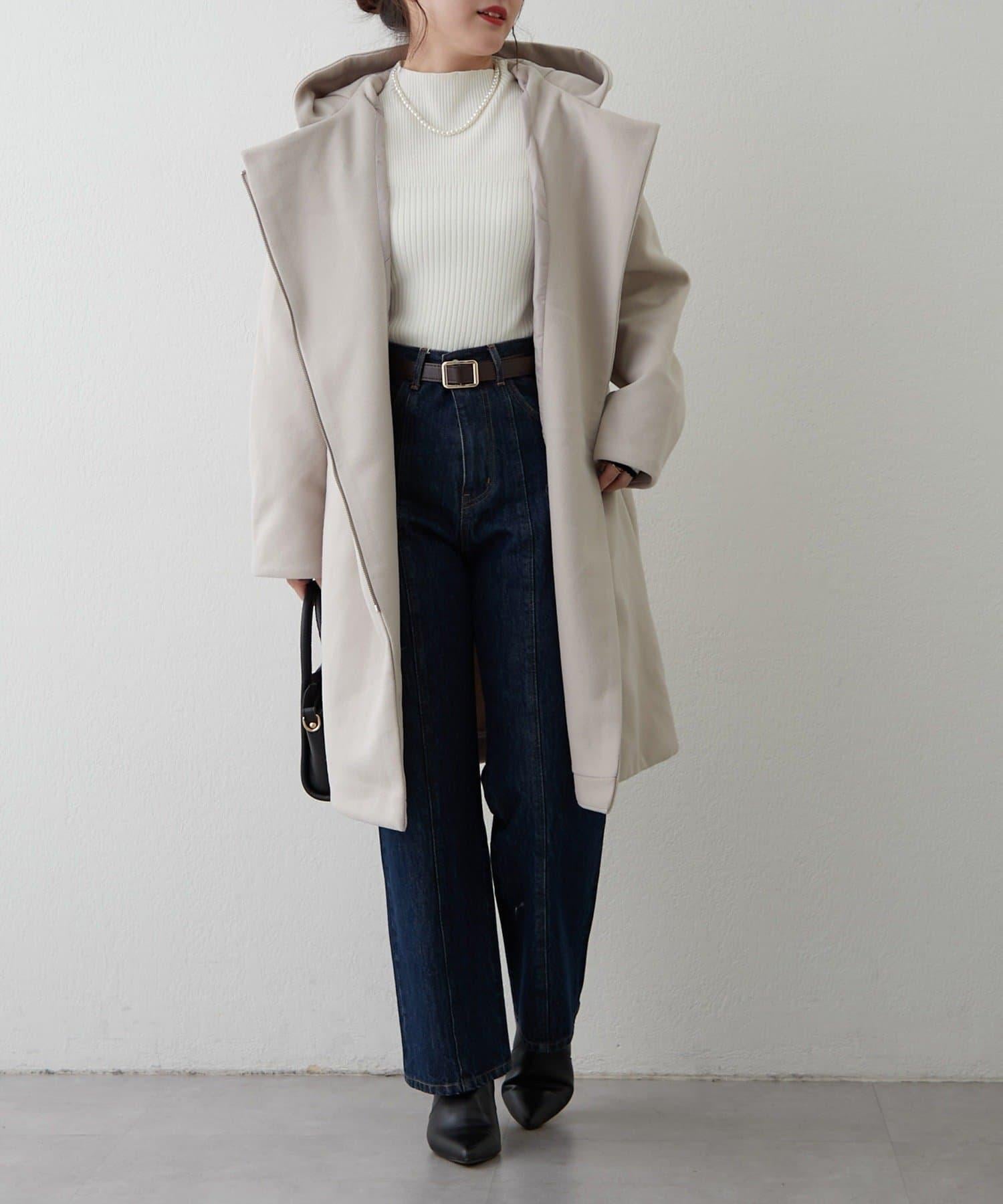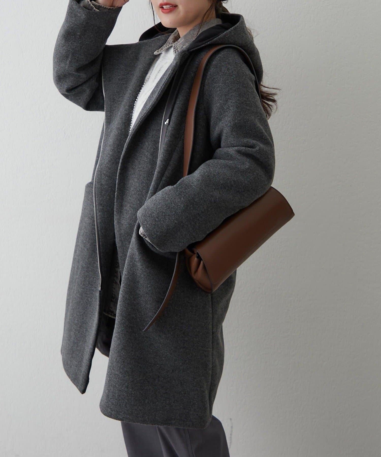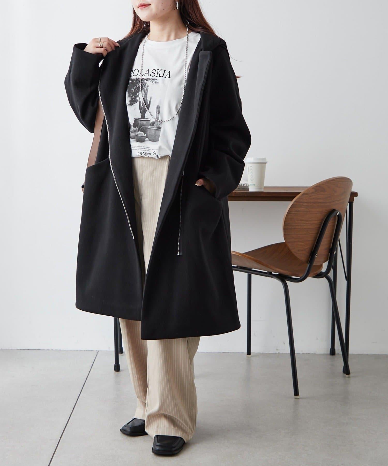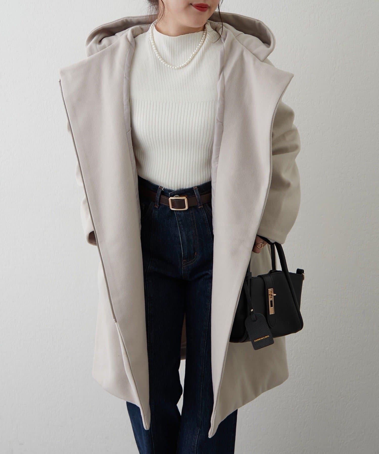 簡約設計連帽拉鍊大衣