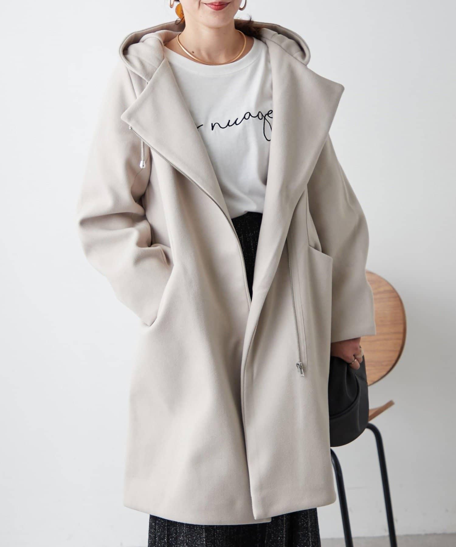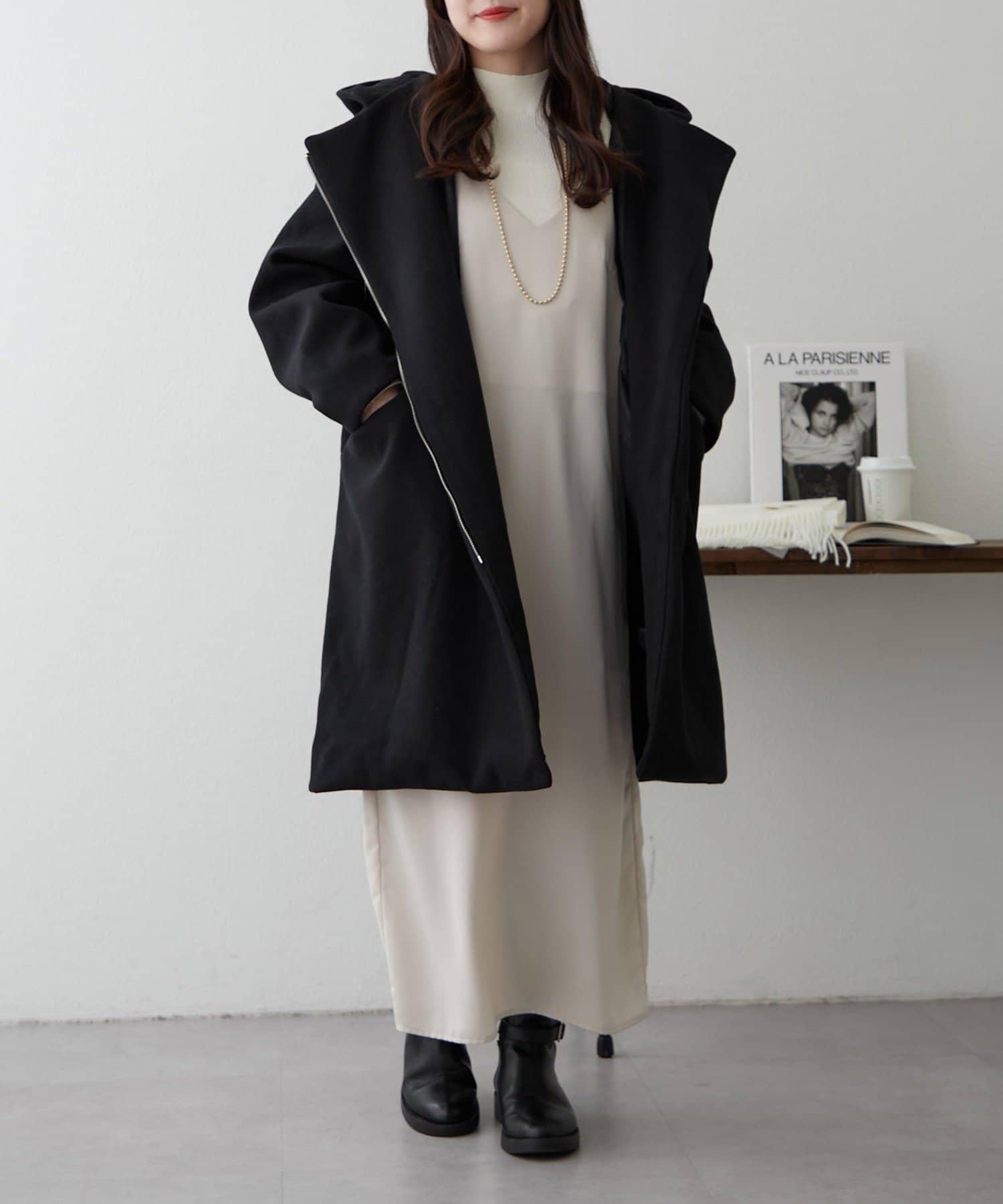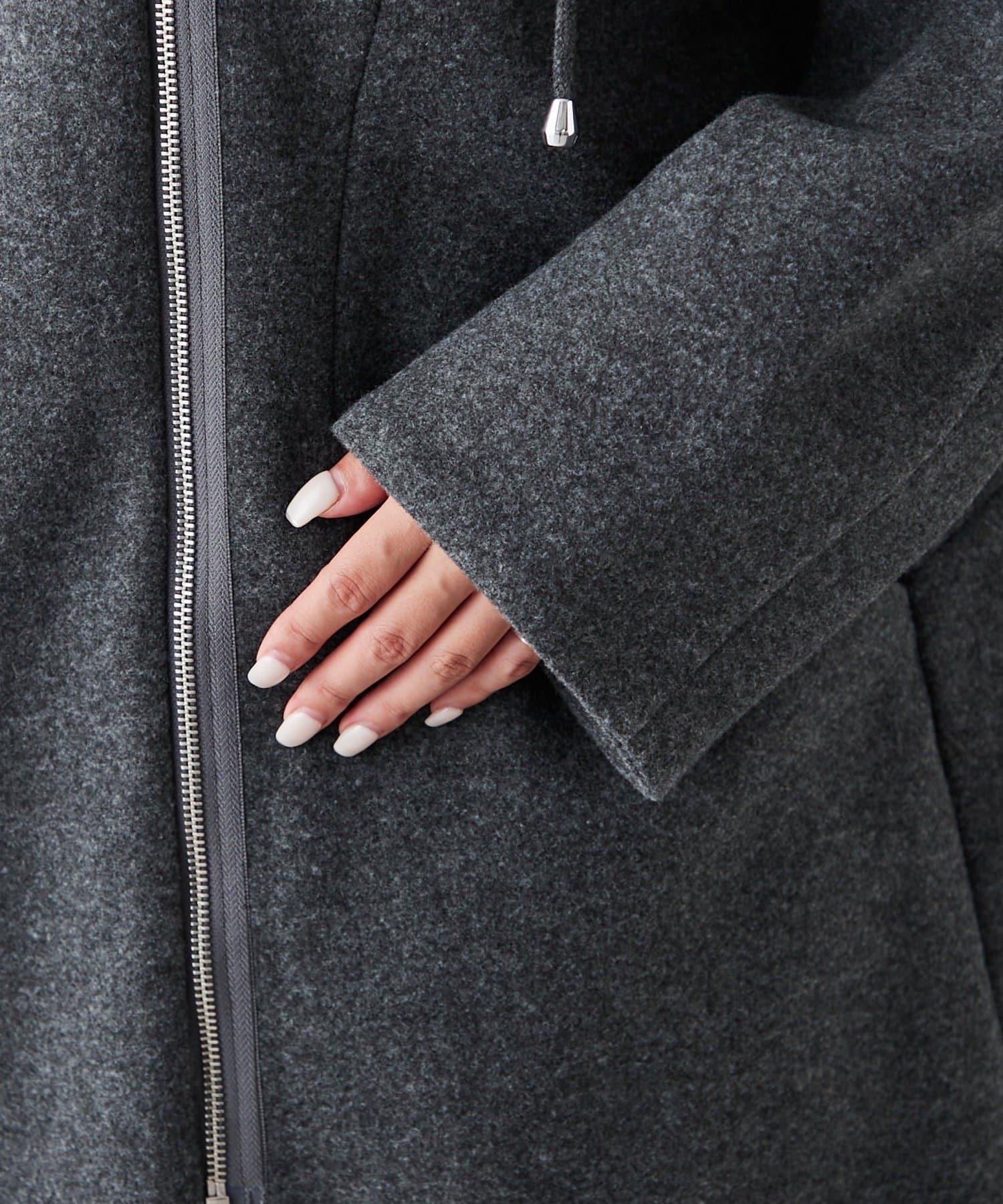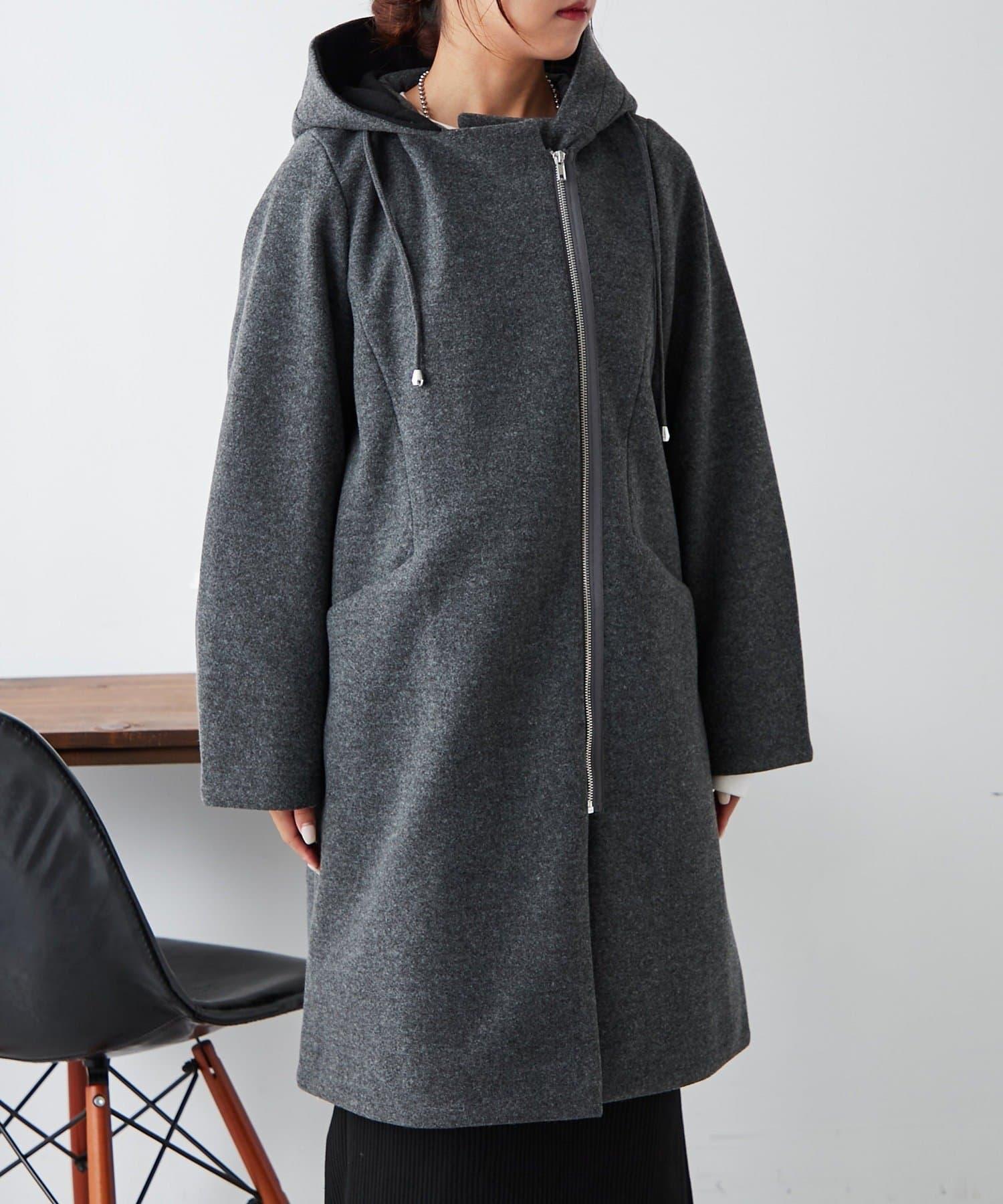 簡約設計連帽拉鍊大衣