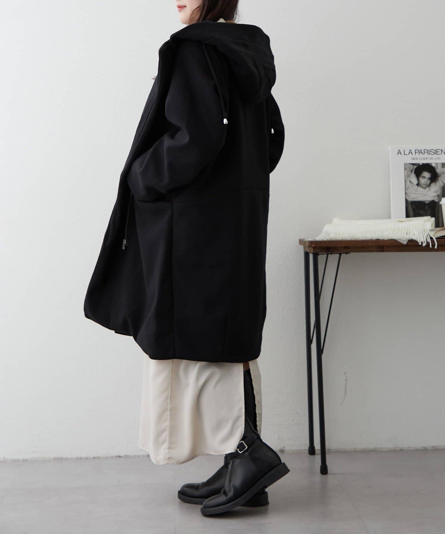 這款大衣帶有連帽。