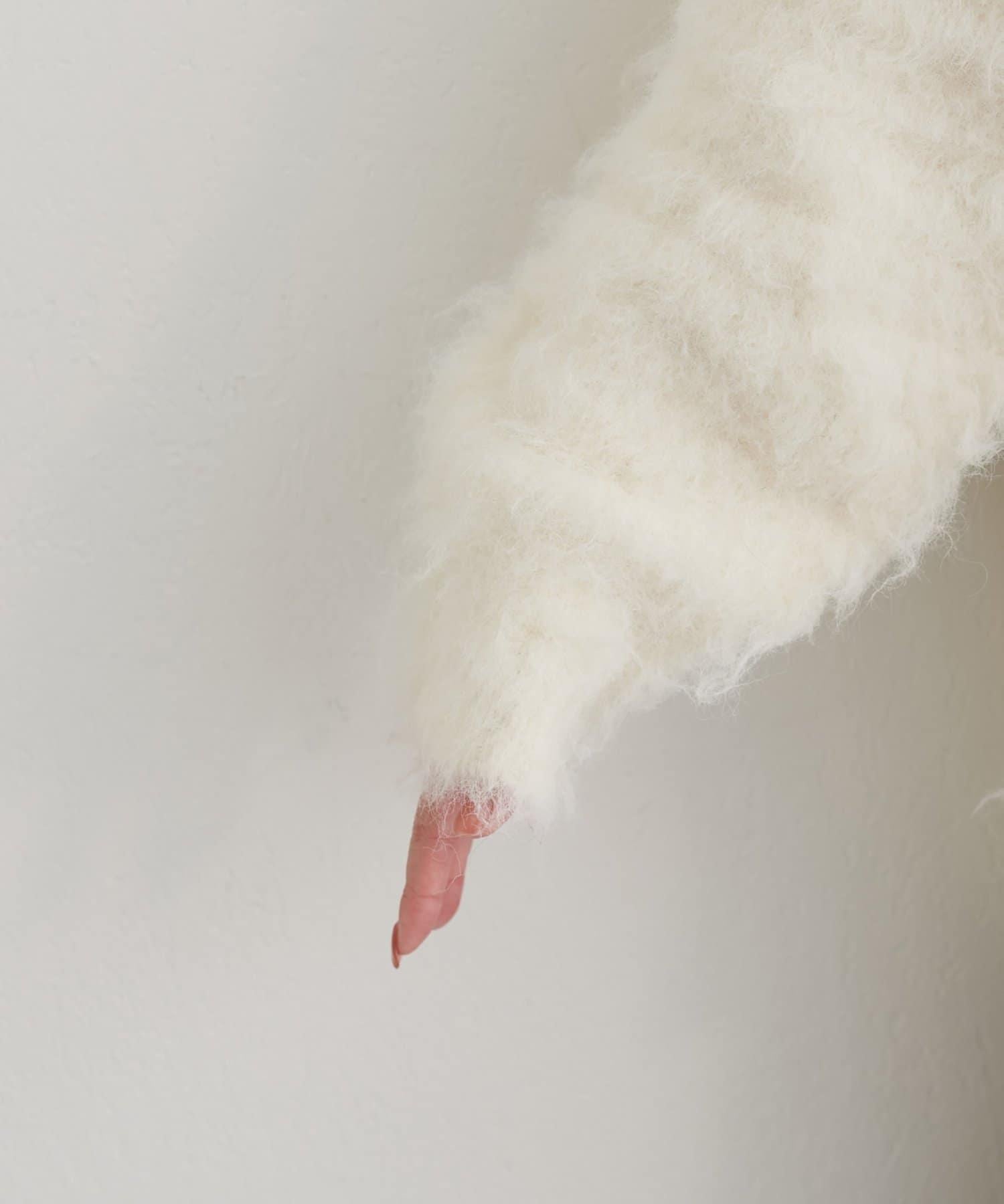 輕盈蓬鬆的質地和精緻的米菲鈕釦,是秋冬季的完美單品。