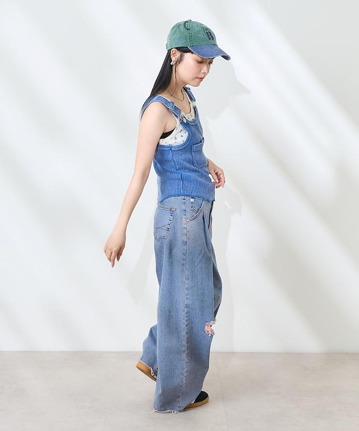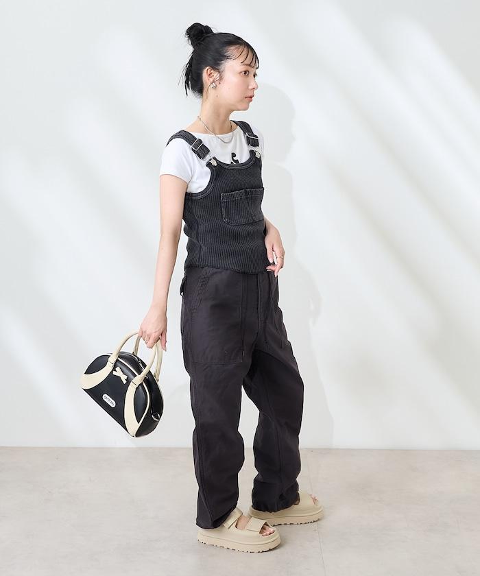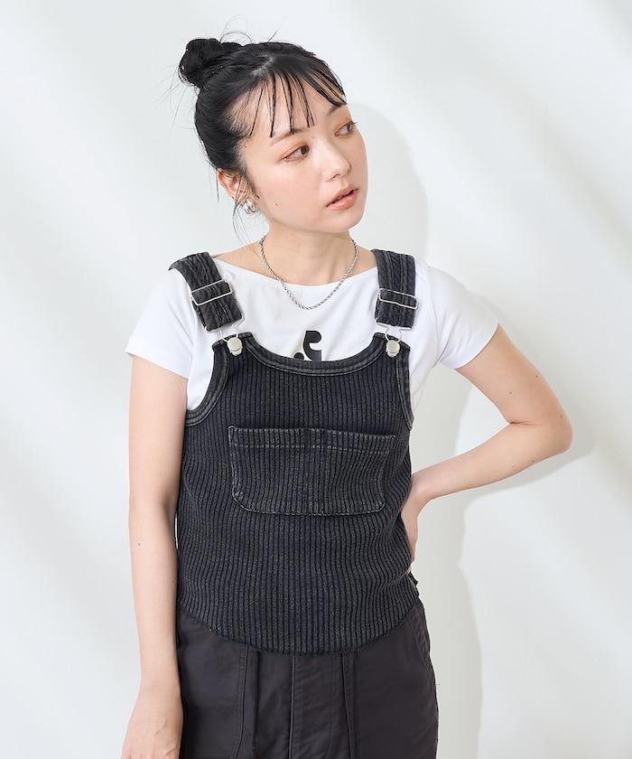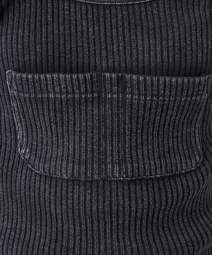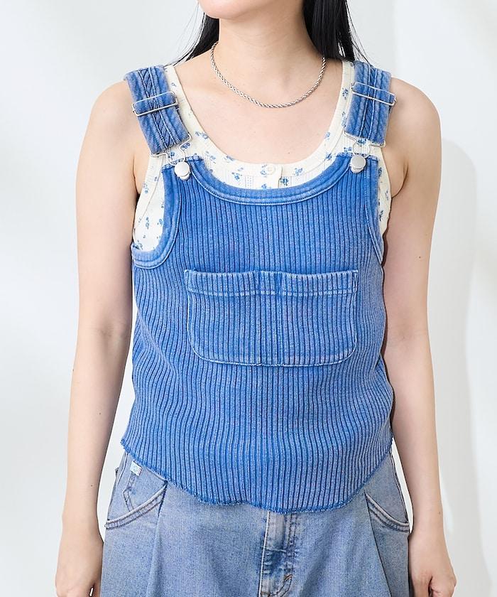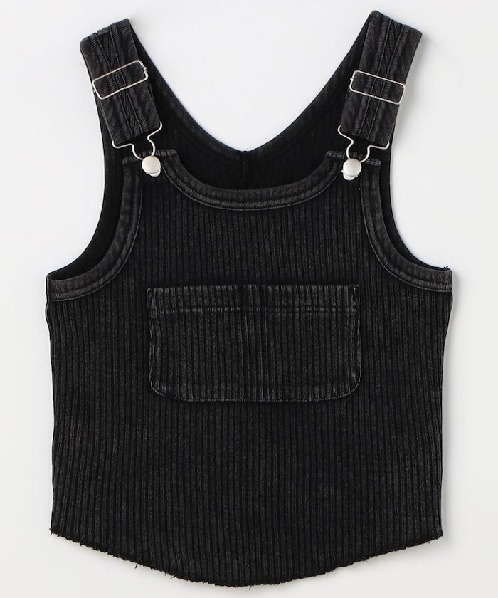 羅紋背心被重新排列成一件帶有 Salopette 設計的馬甲。