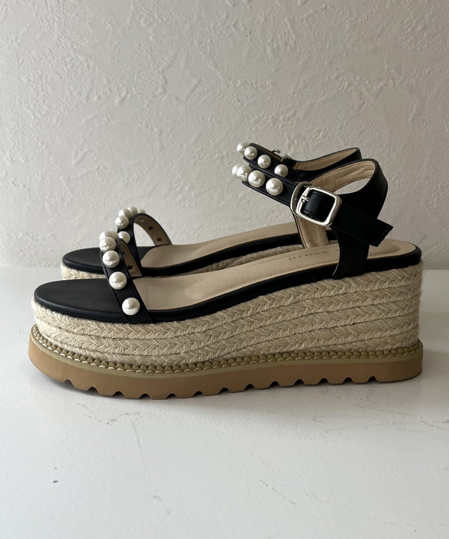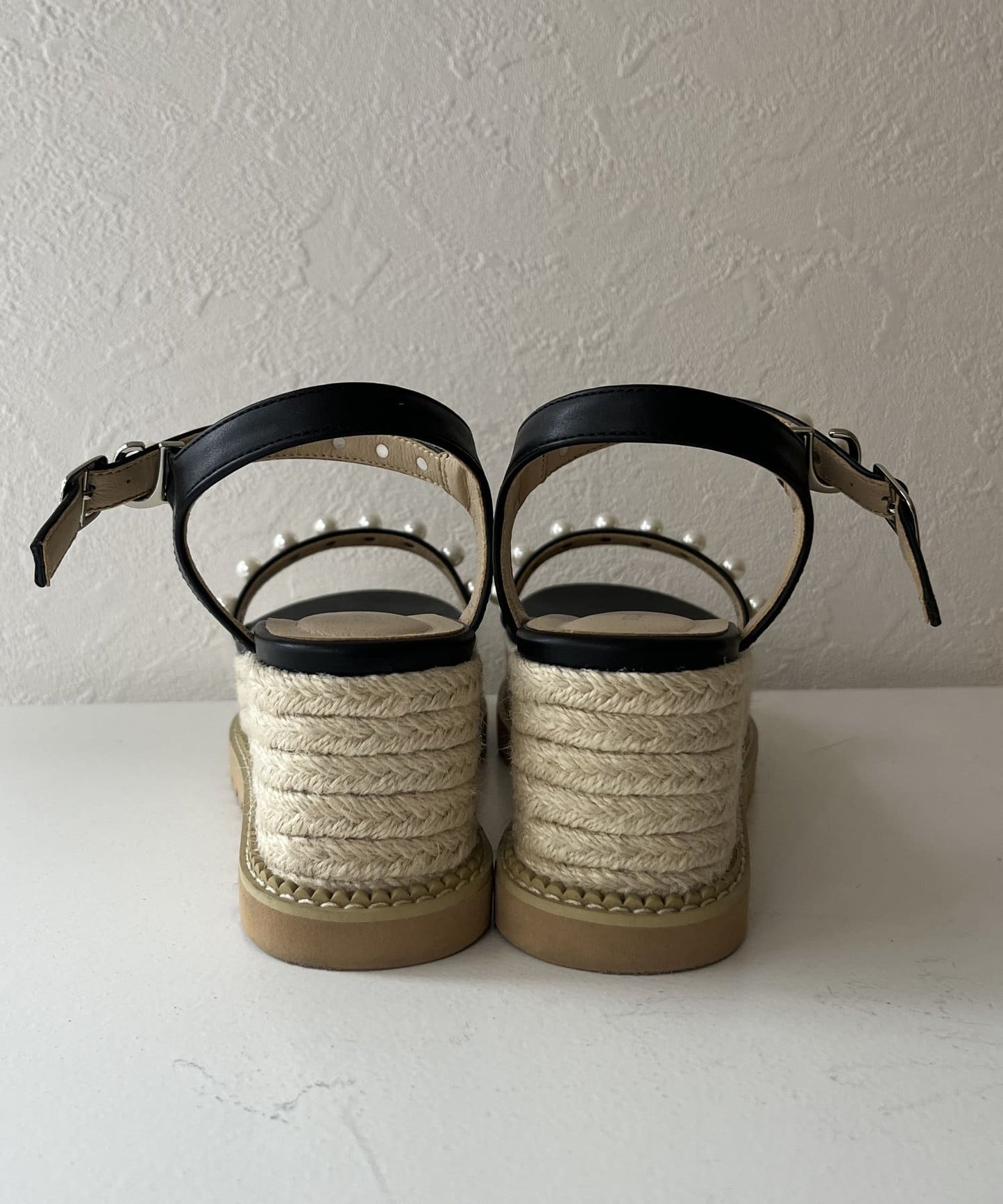 厚底涼鞋 / 夏季涼鞋 / 黃麻材質 / 珍珠 / 成人休閒鞋