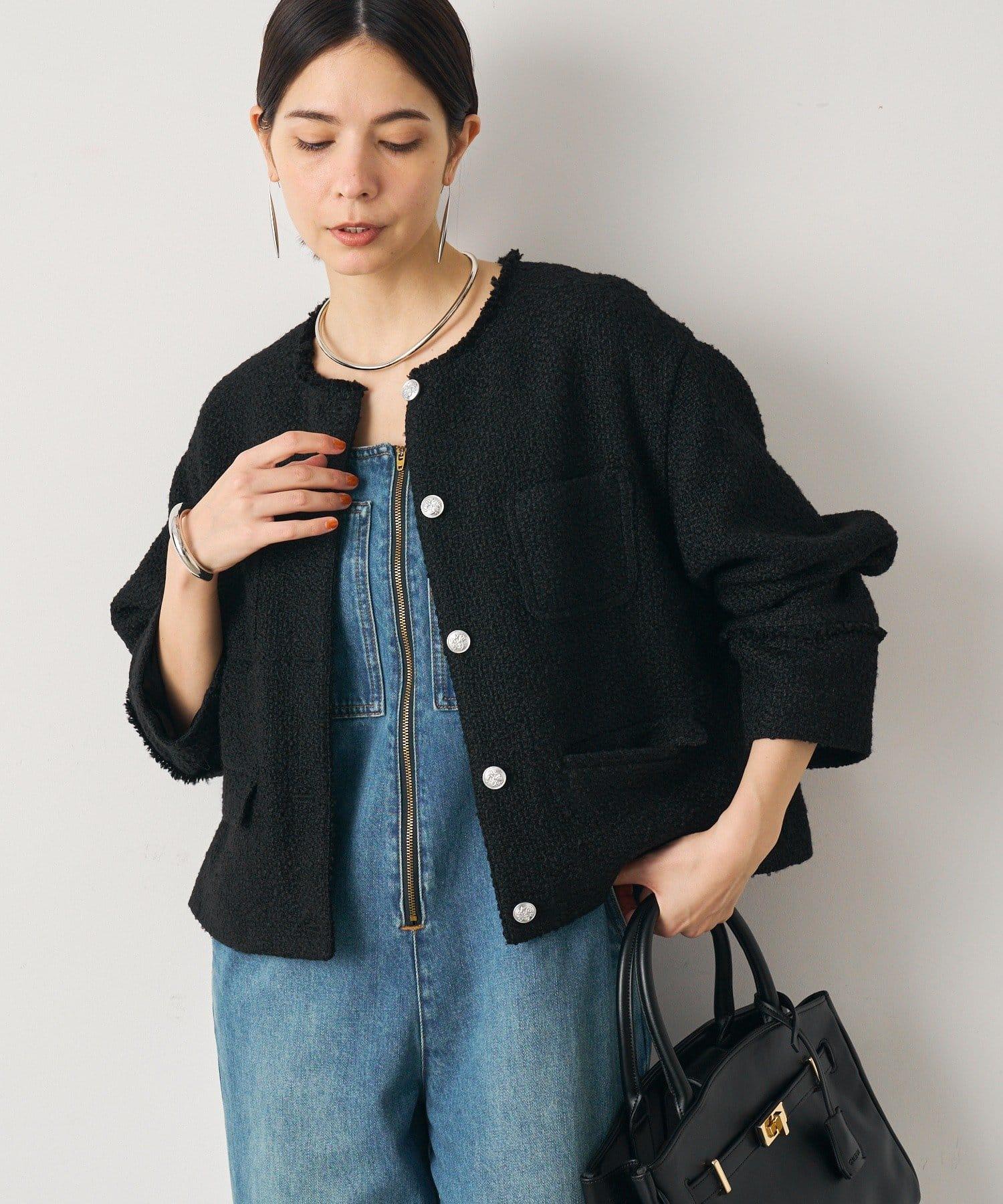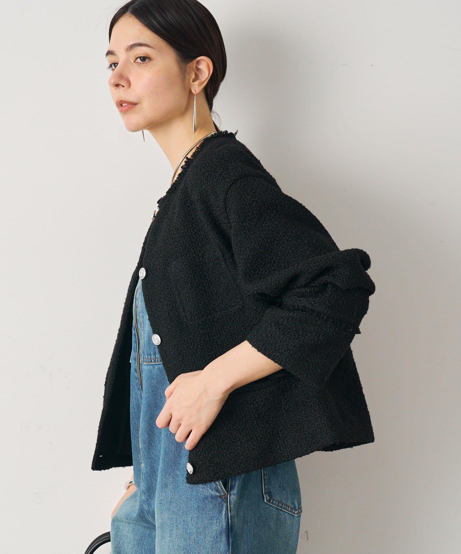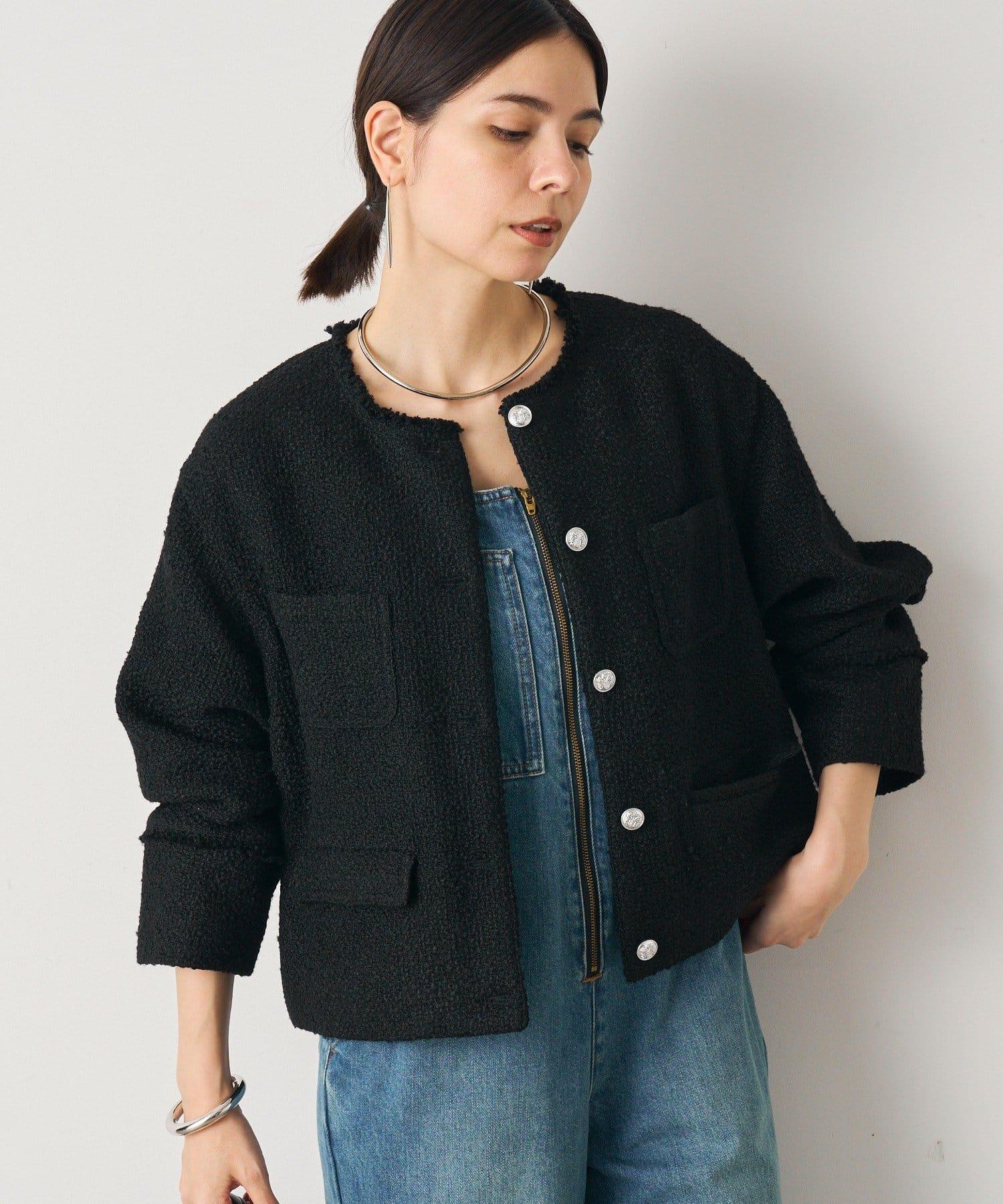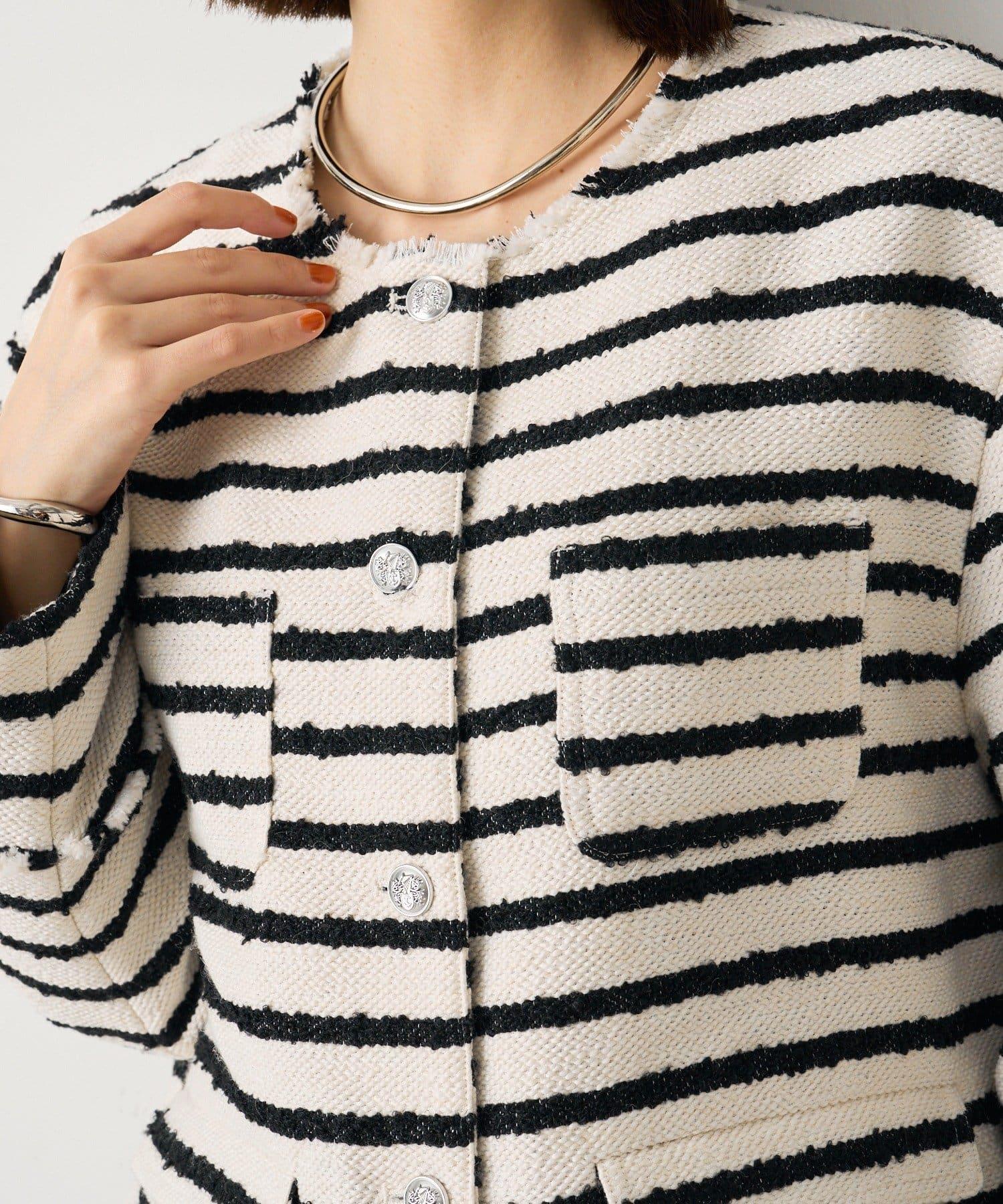 簡潔的無領設計和簡約的金色紐扣是優雅的點睛之筆。