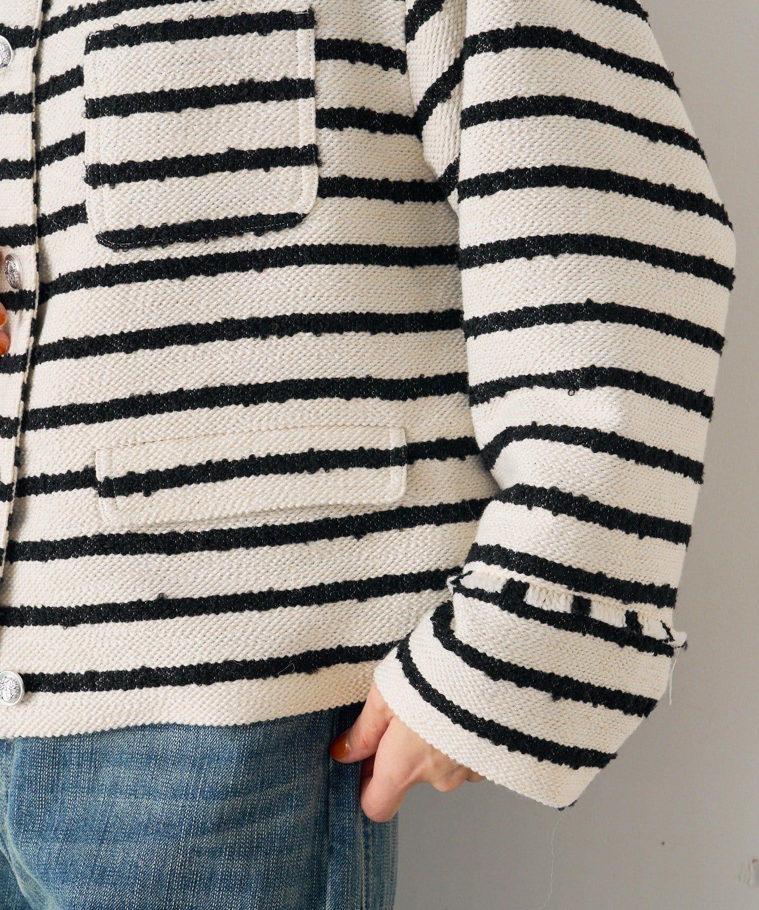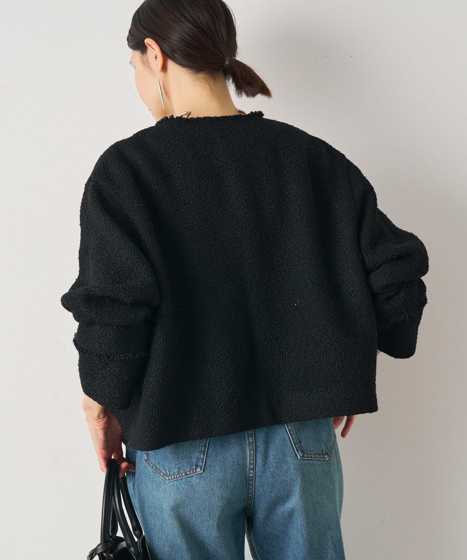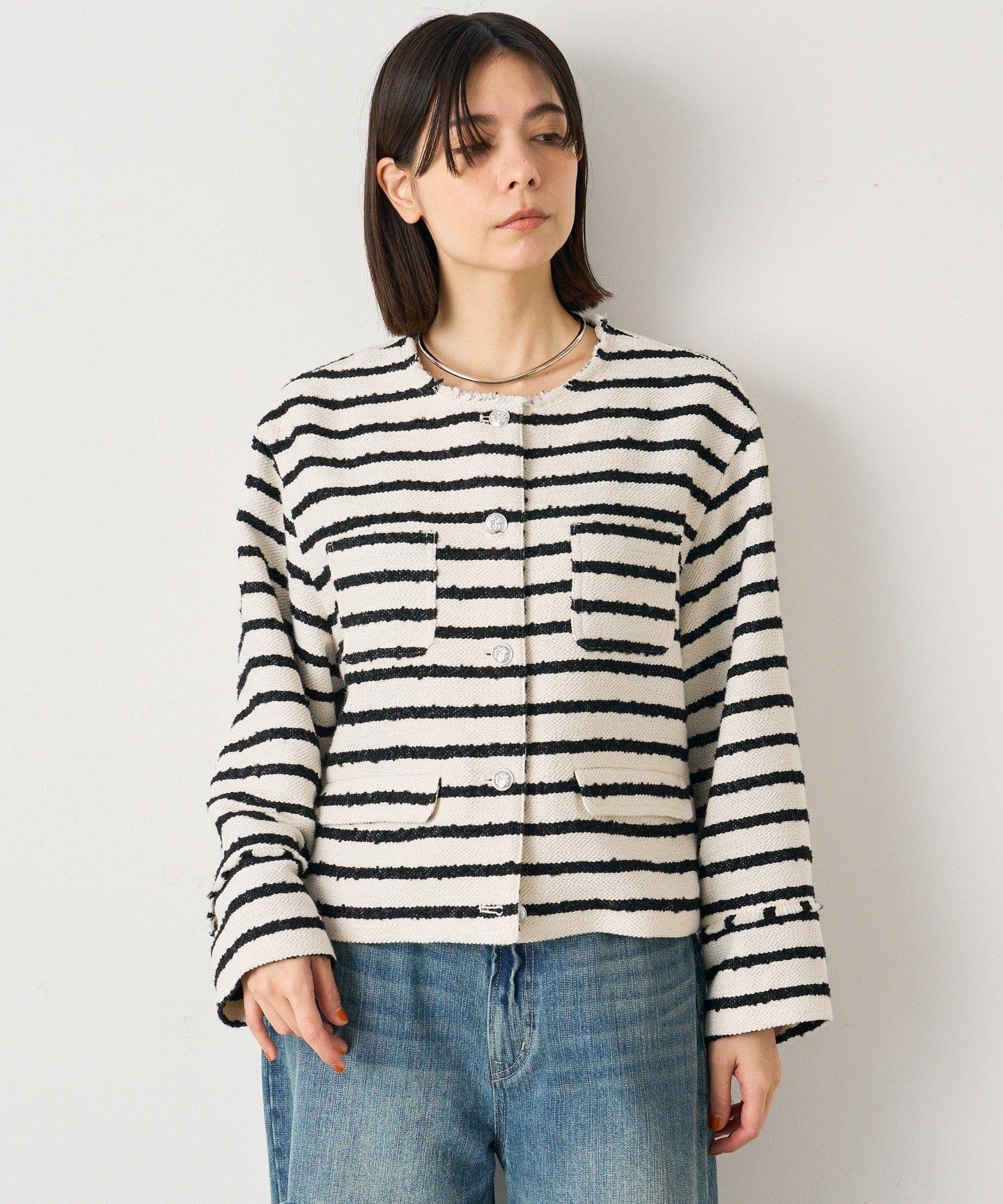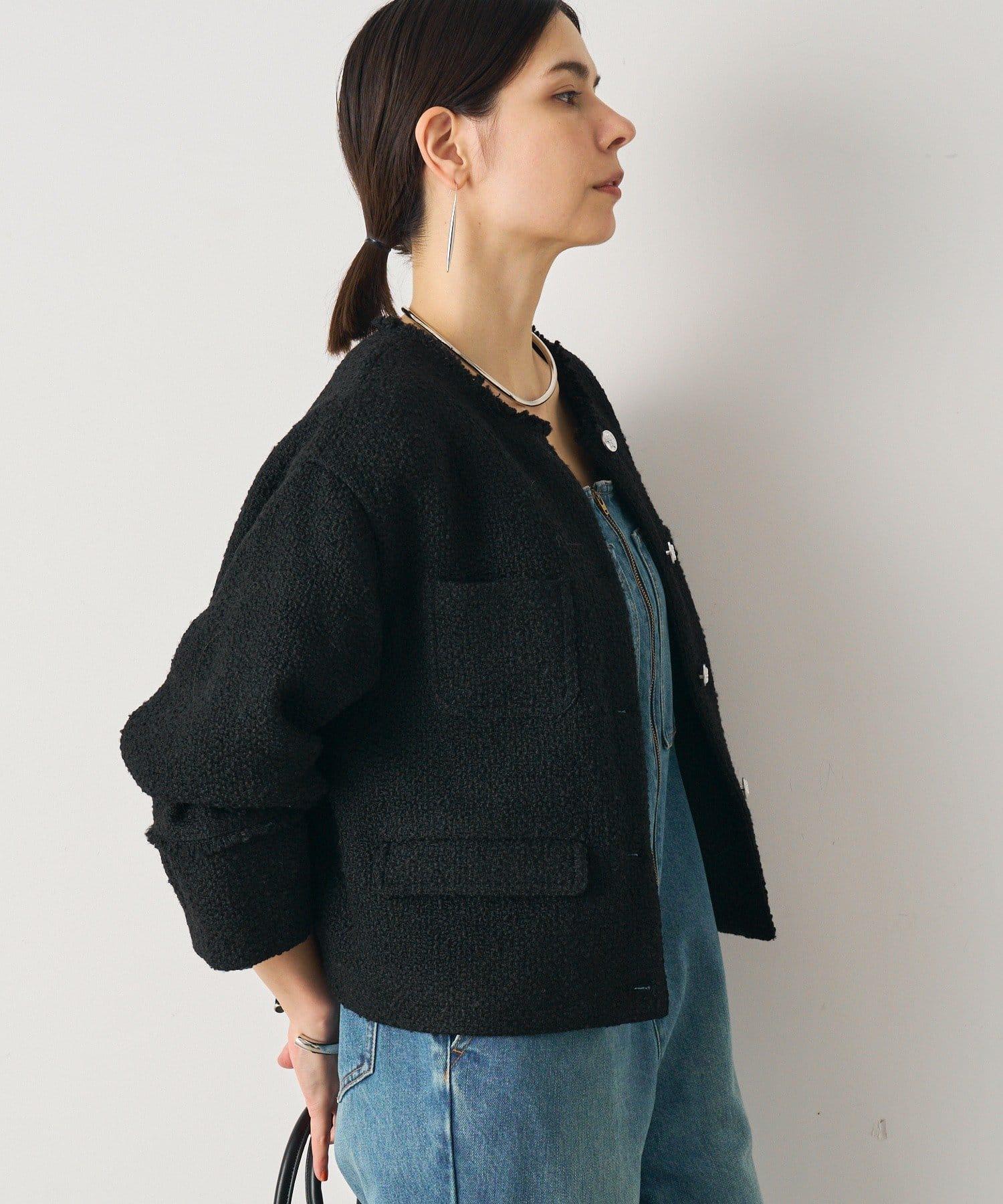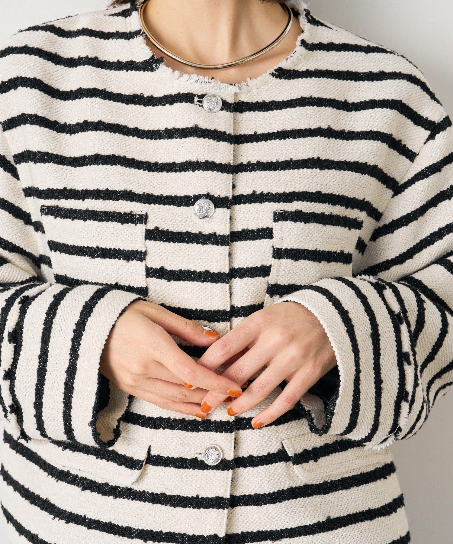 簡潔的無領設計和簡約的金色紐扣是優雅的點睛之筆。