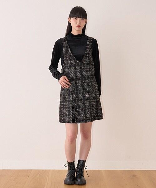 格紋斜紋軟呢上點綴著金線,給人以華麗的印象。