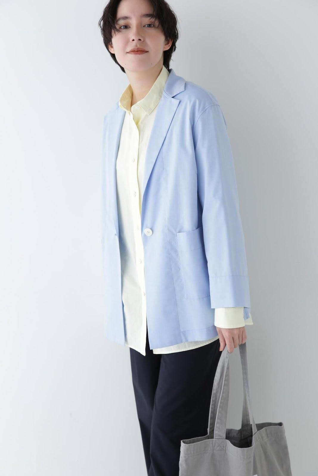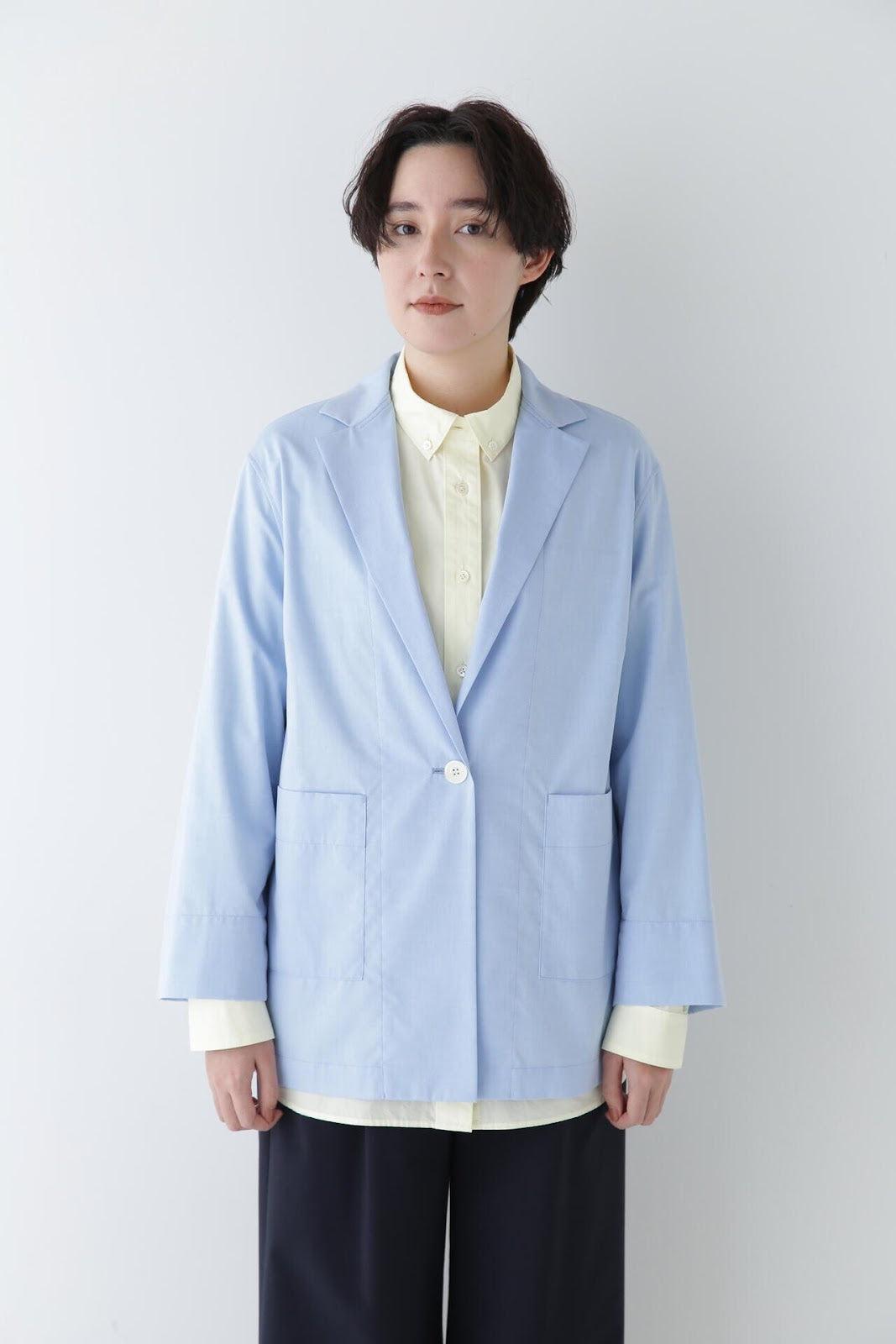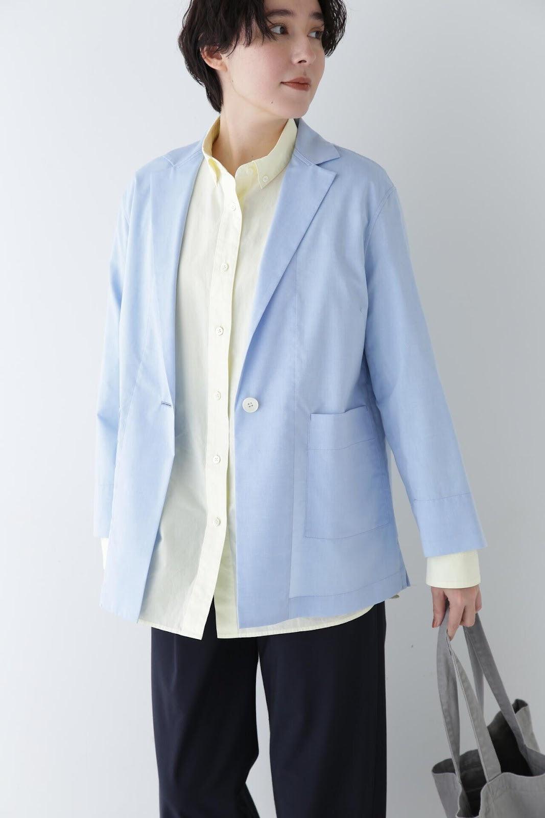 可像襯衫一樣穿著的剪裁夾克 [設計要點] 領子剪裁合身的梭織夾克,採用寬鬆的襯衫剪裁。夾克採用柔和的廓形和輕盈的細節處理。夾克採用棉質針點牛津布面料,表面由優質棉線織就,質感細膩。推薦座標] 這款夾克既便於休閒穿著,又有夾克的整潔感。在開襟羊毛衫或襯衫大衣等剪裁縫製的服裝中,它也是一款值得搭配的單品。