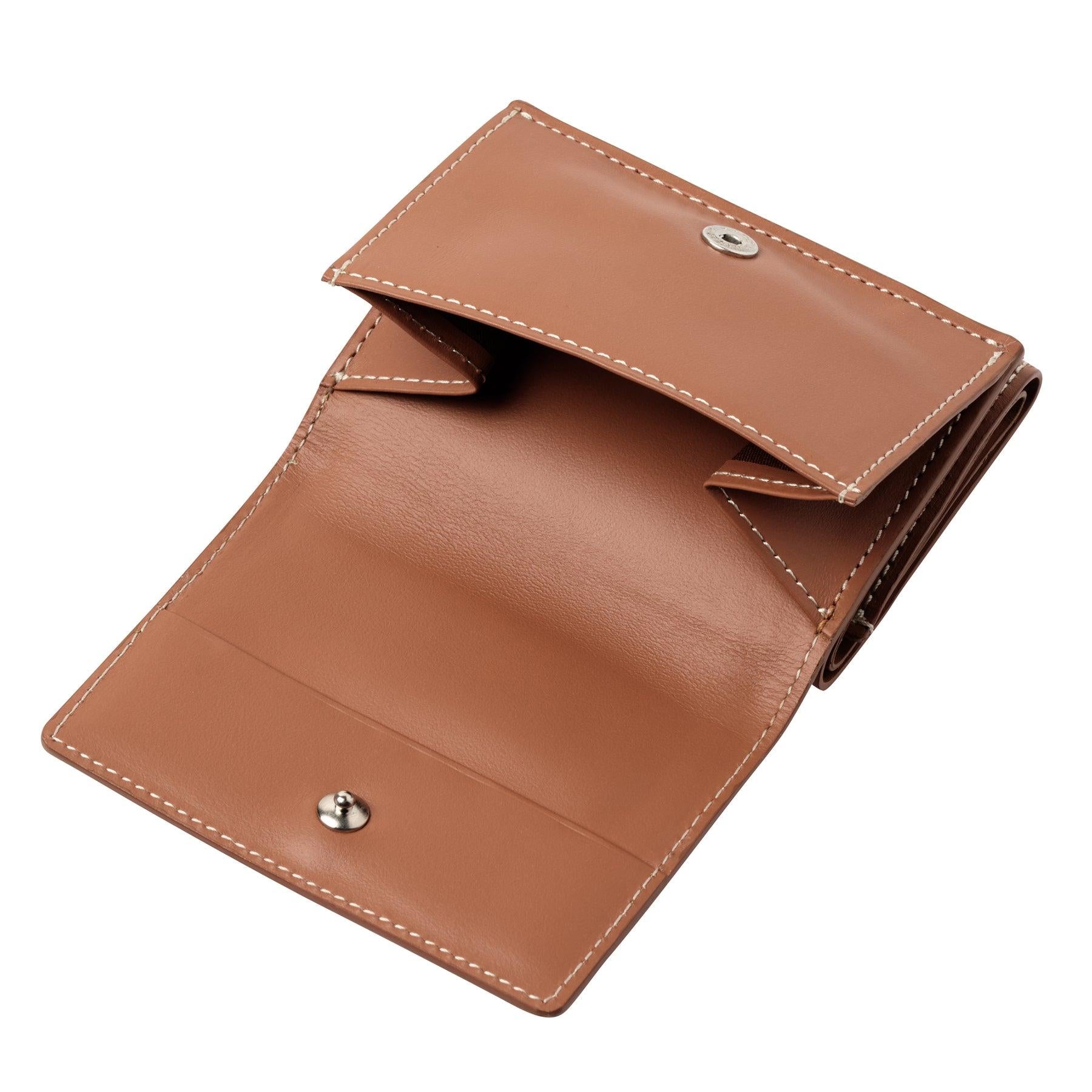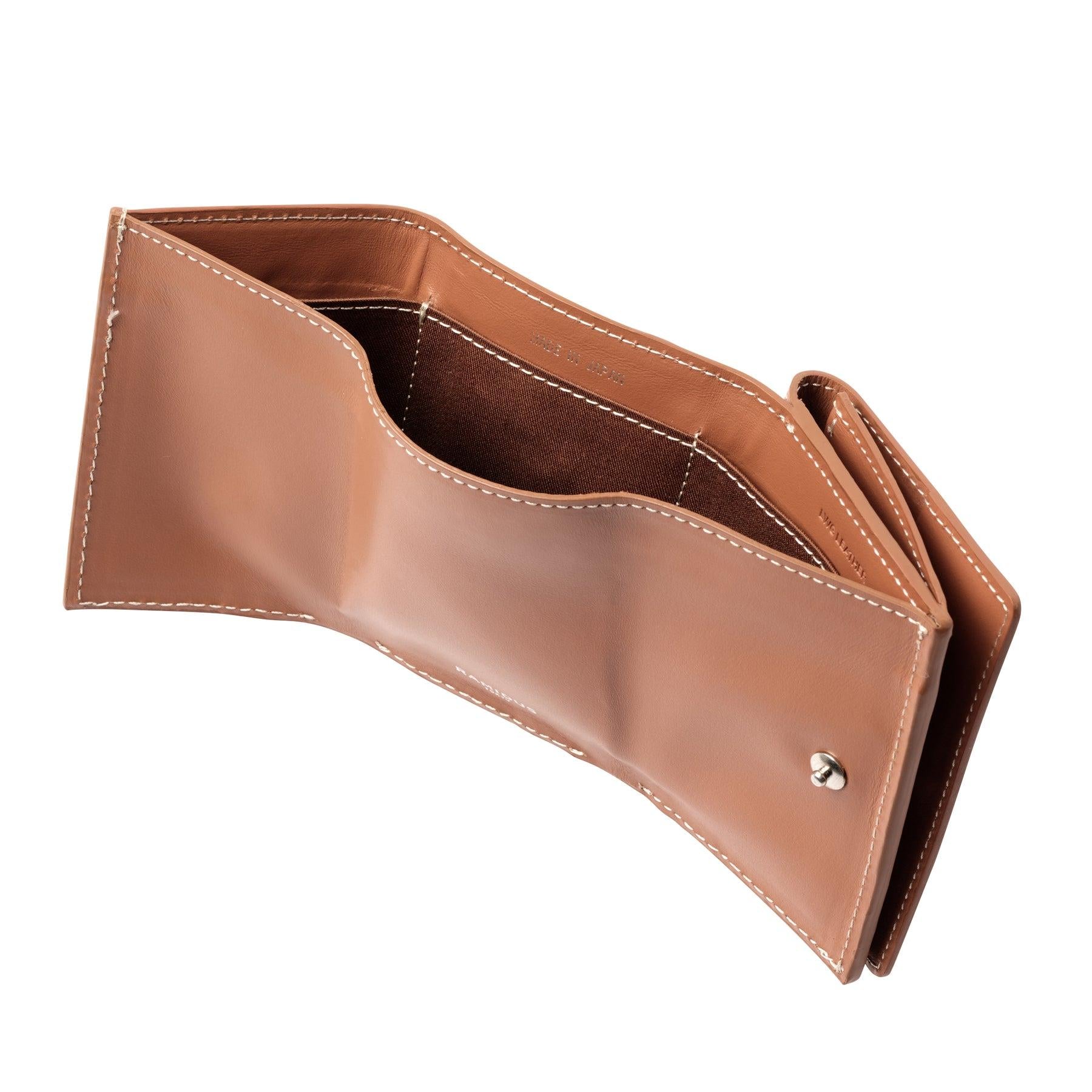 小巧的三折迷你錢包,設有兩個紙幣袋、一個夾層零錢袋和卡片插槽。品牌徽標僅印於內側,追求皮革質感和簡約風格。由 LWG 製革廠提供的無鉻無金屬鞣製牛皮製成,該廠獲得了銀質環保認證,只有符合嚴格國際標準的製革廠才能獲得該認證。光滑的意大利皮革手感溼潤、質地光滑,勻稱的縫線是高超工藝的結晶,與簡潔的設計相得益彰。