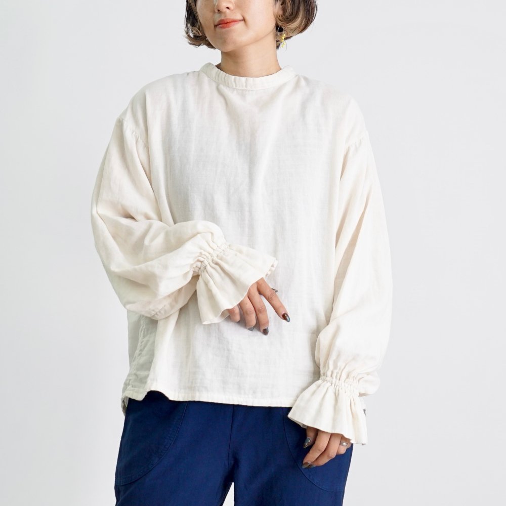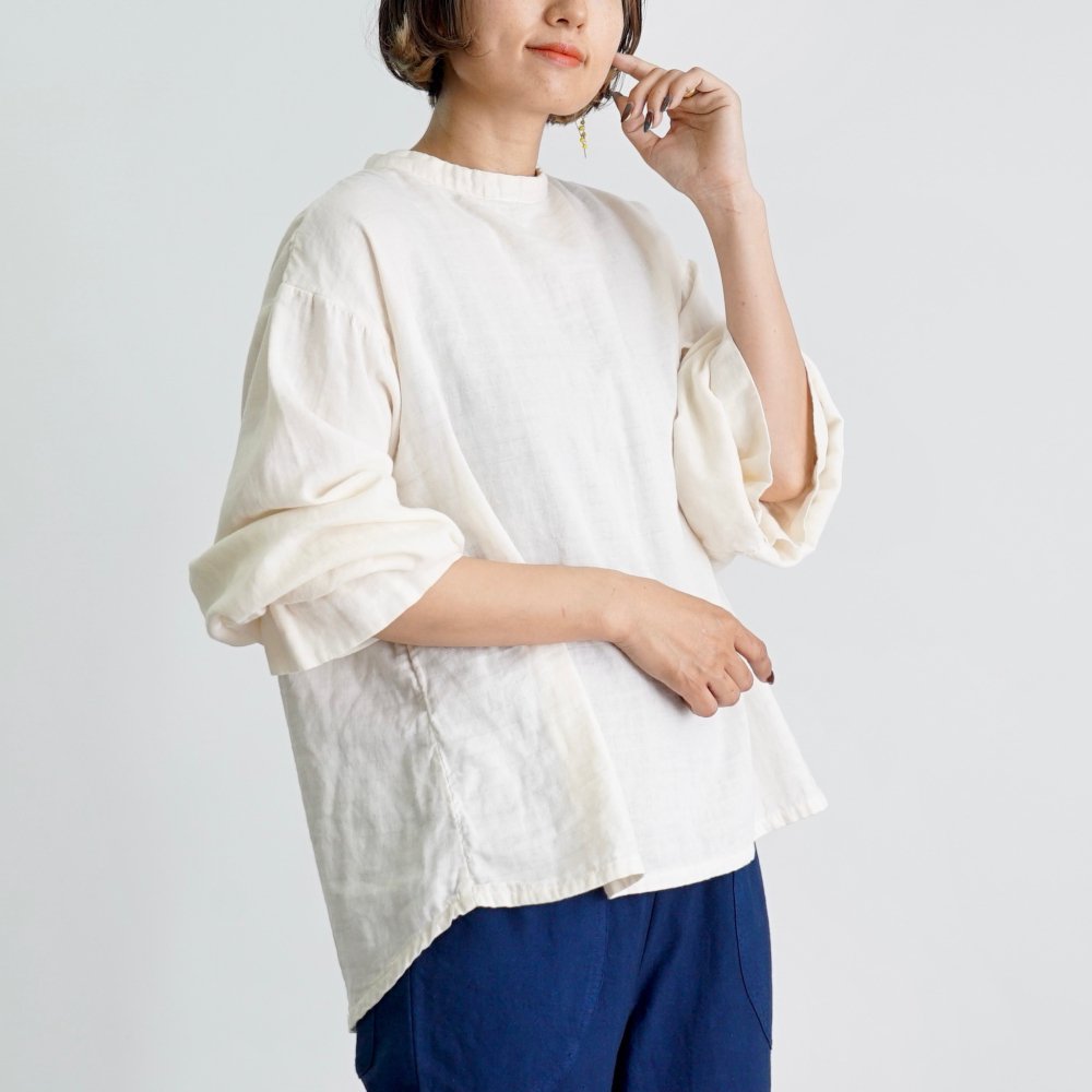 糖果紋紗襯衫/米白色/三河織物雙層紗布