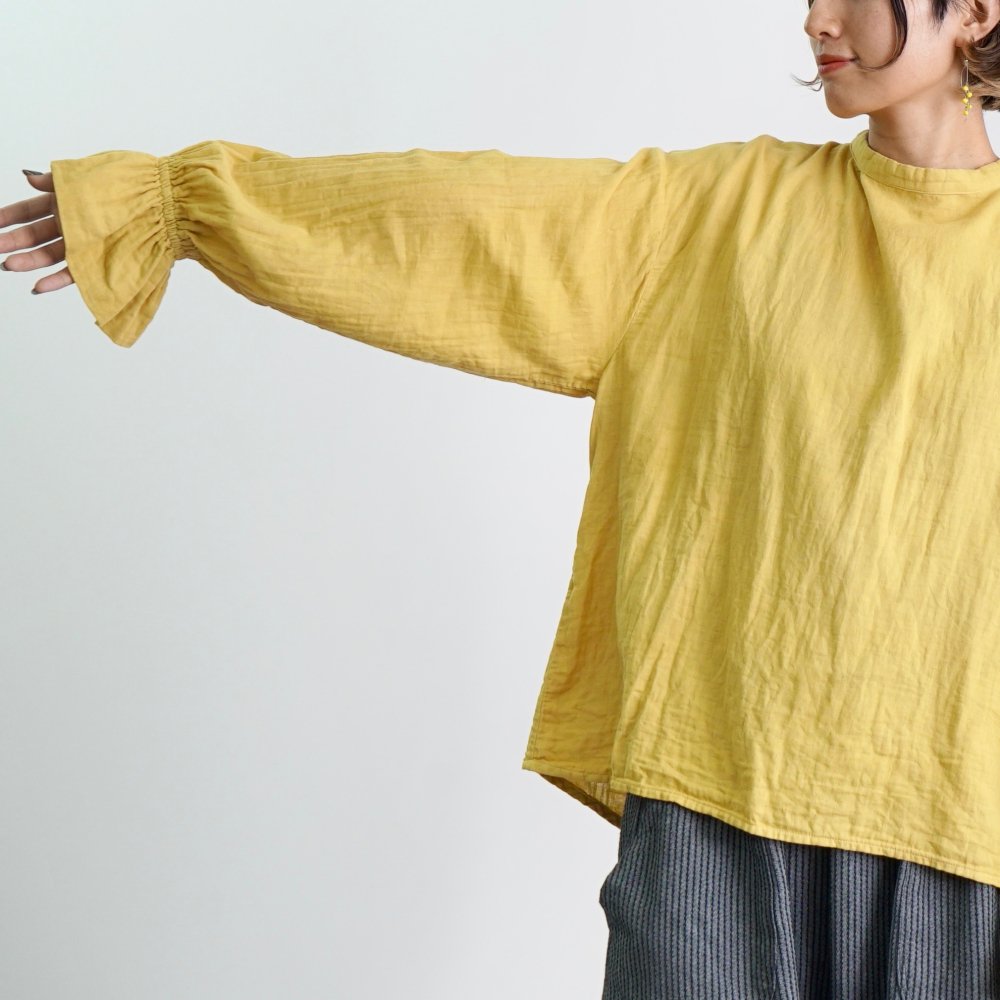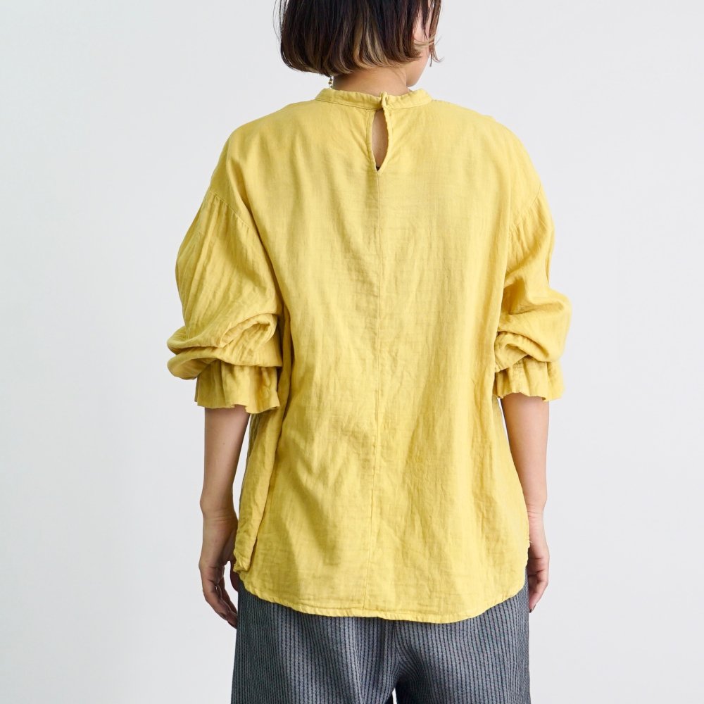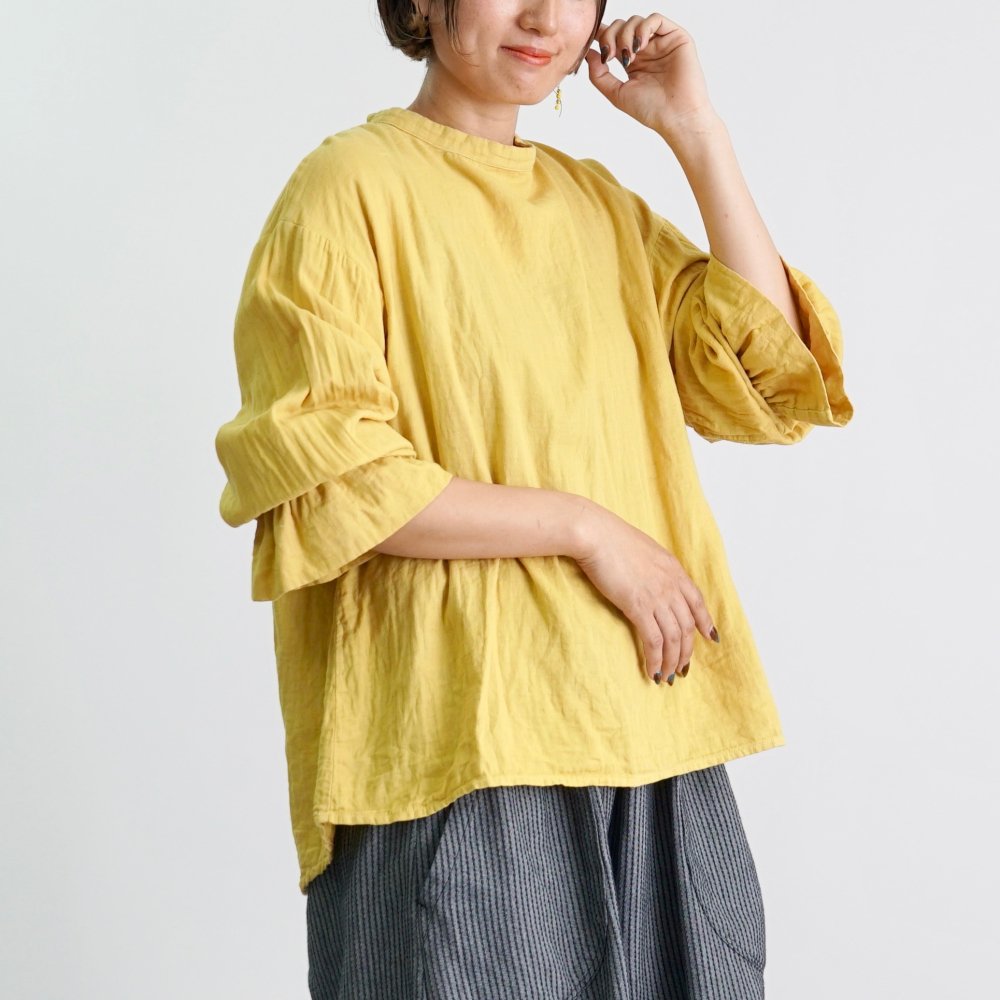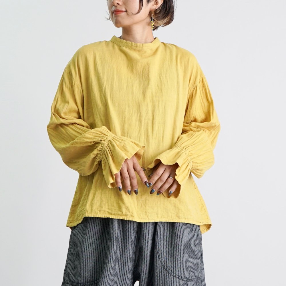糖果紋紗襯衫/黃色/三河織物雙層紗布