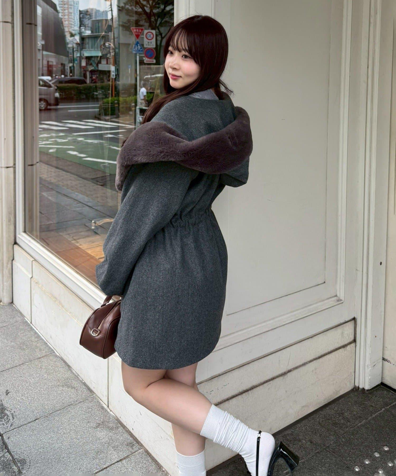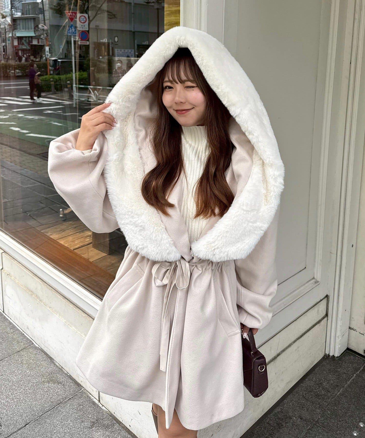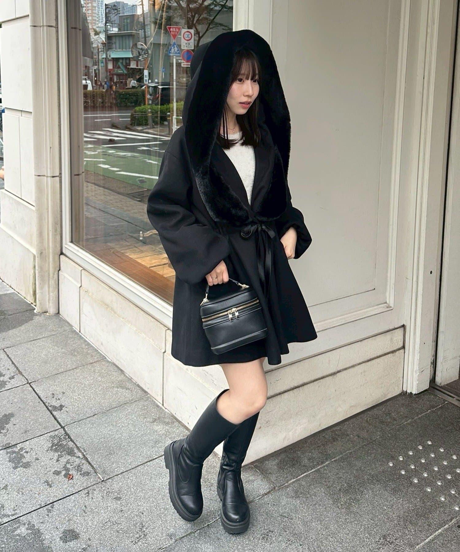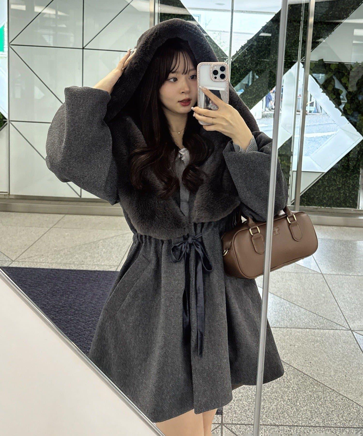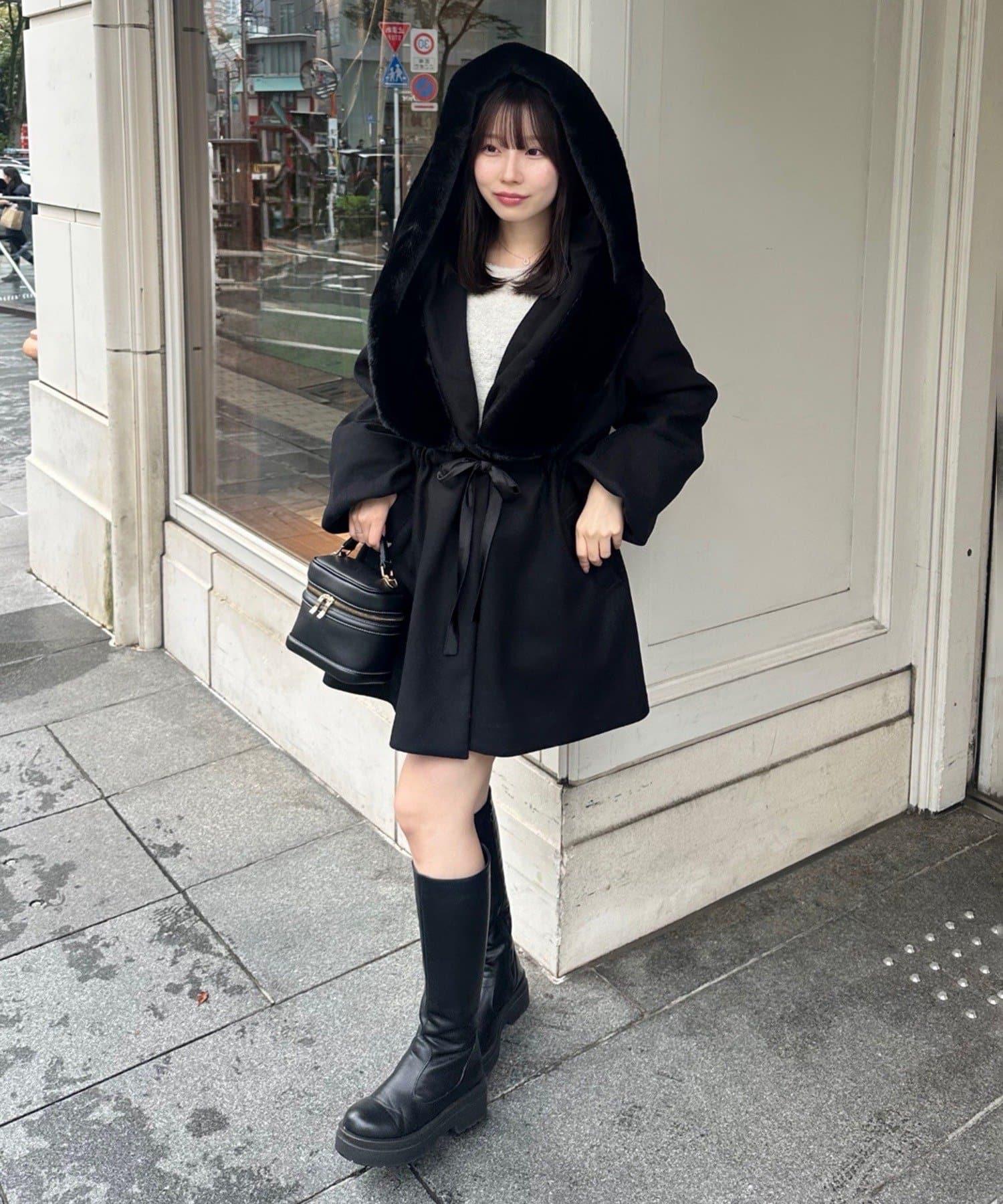 穿著感受:大面積的皮草連帽搭配出眾的小臉效果,讓人想一直穿著這件大衣。